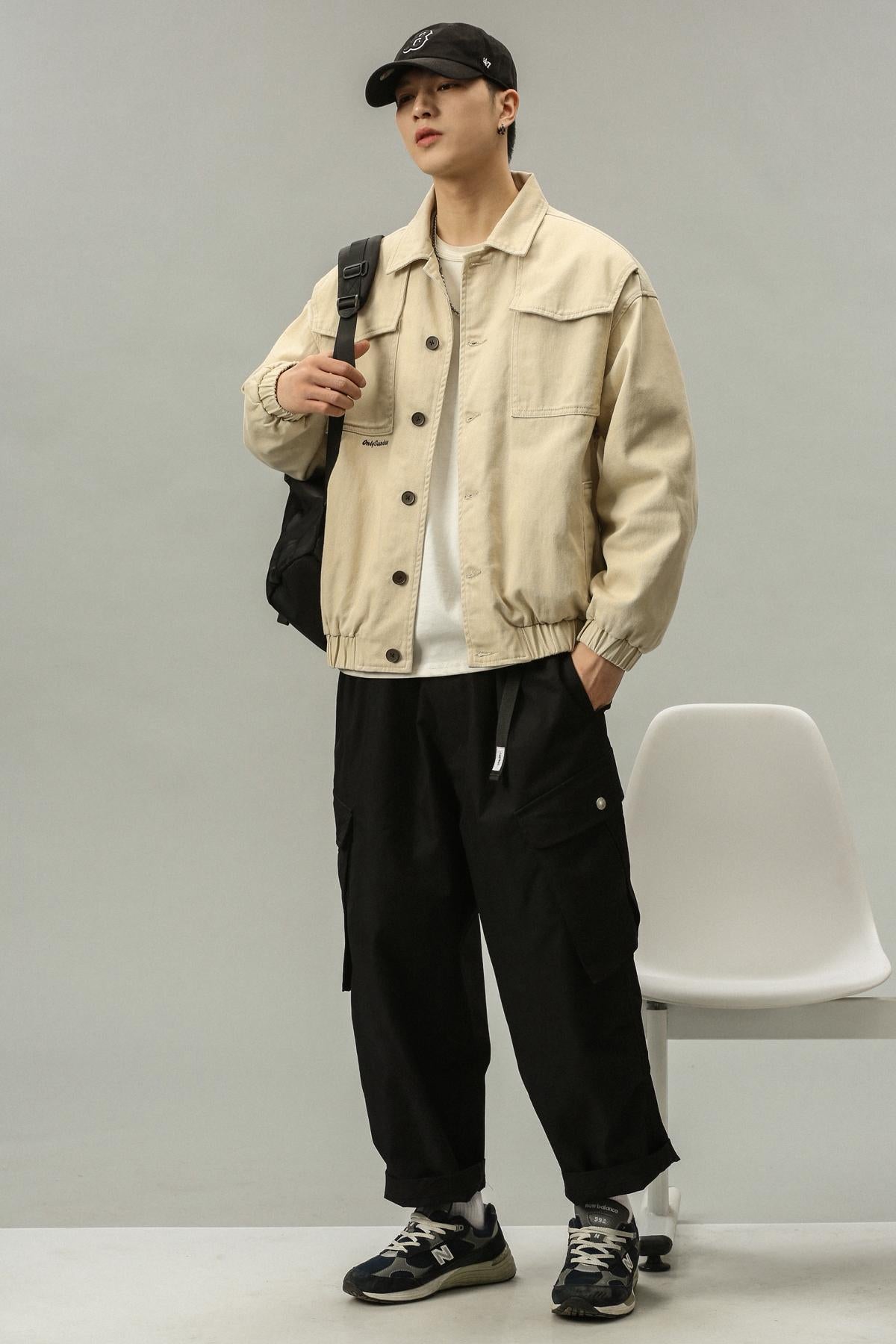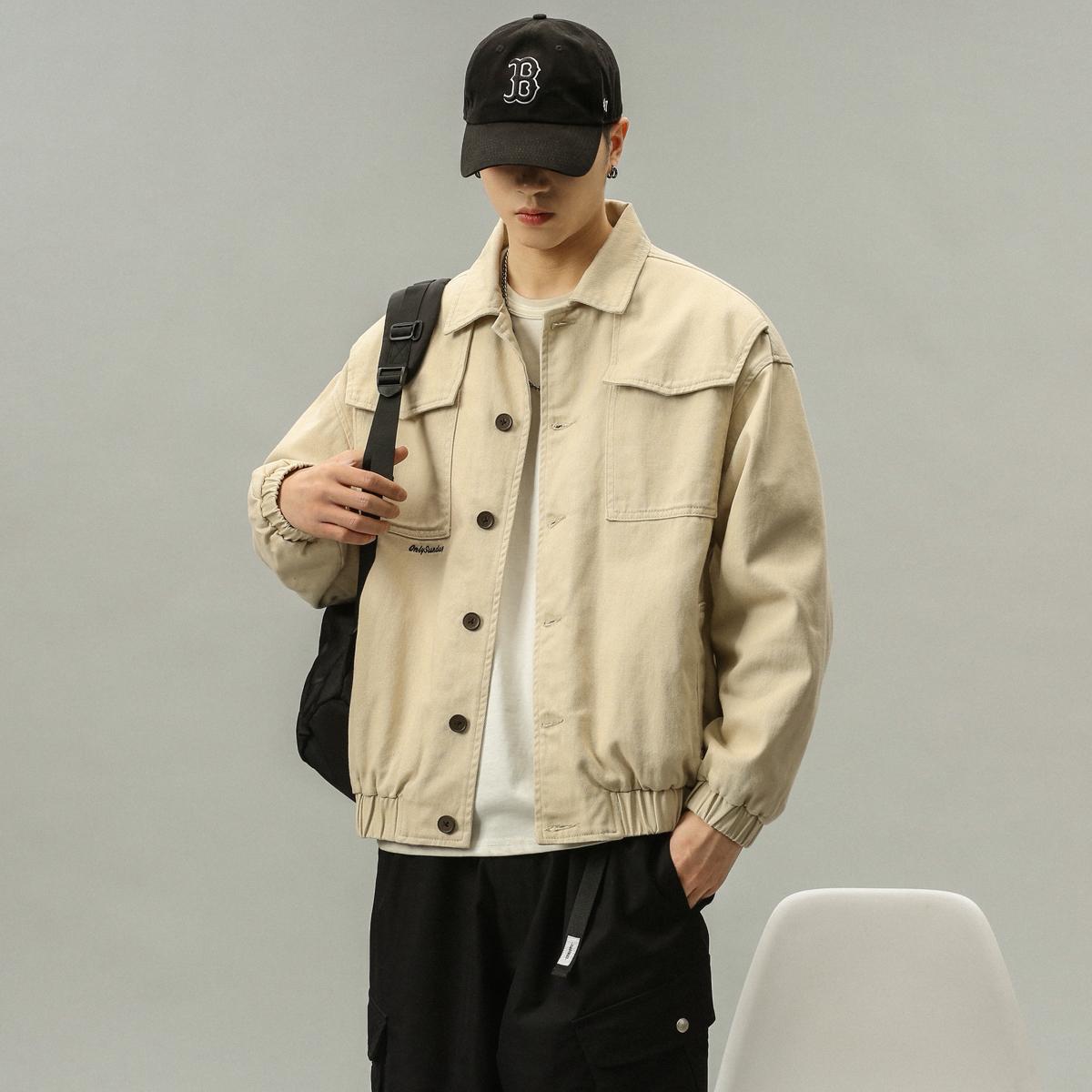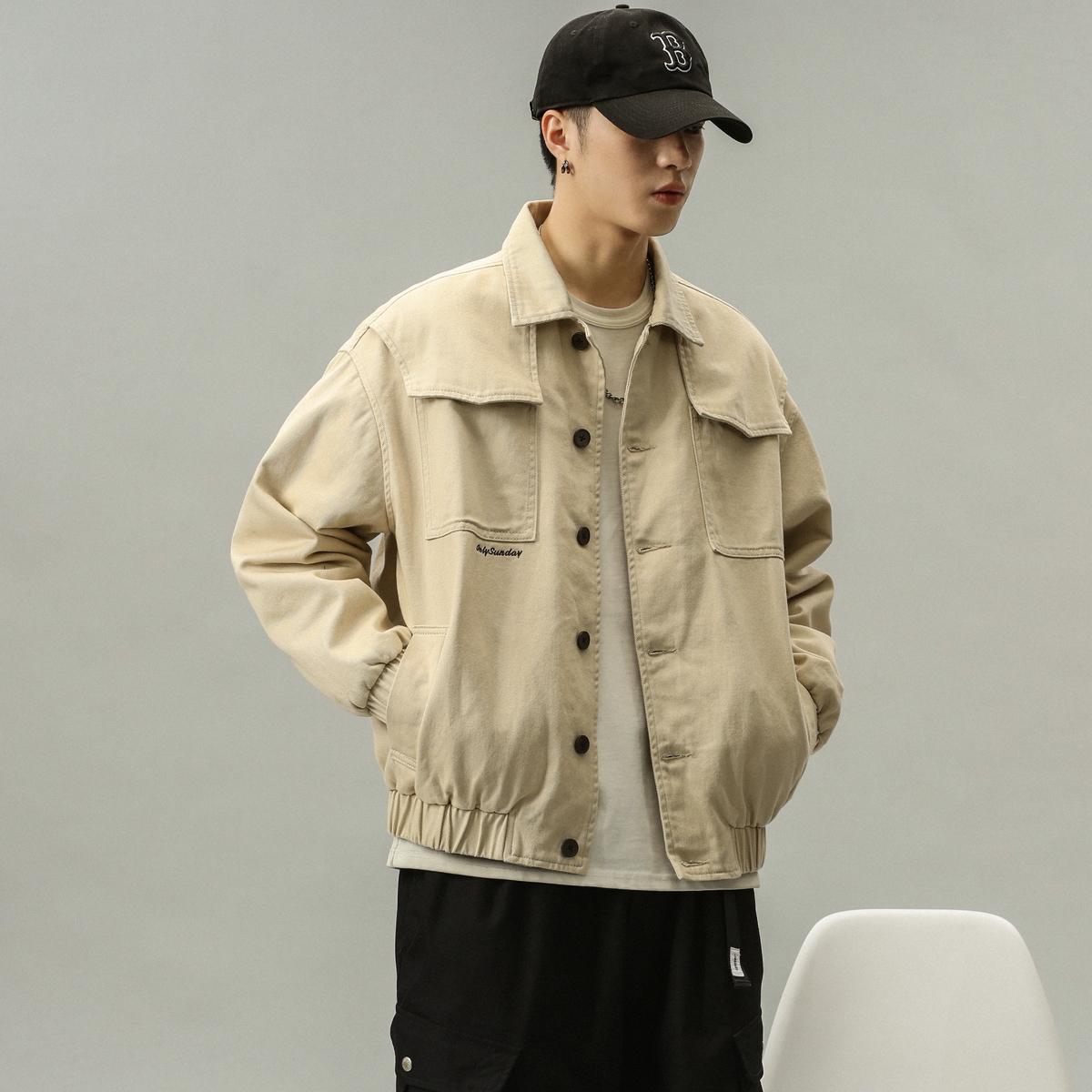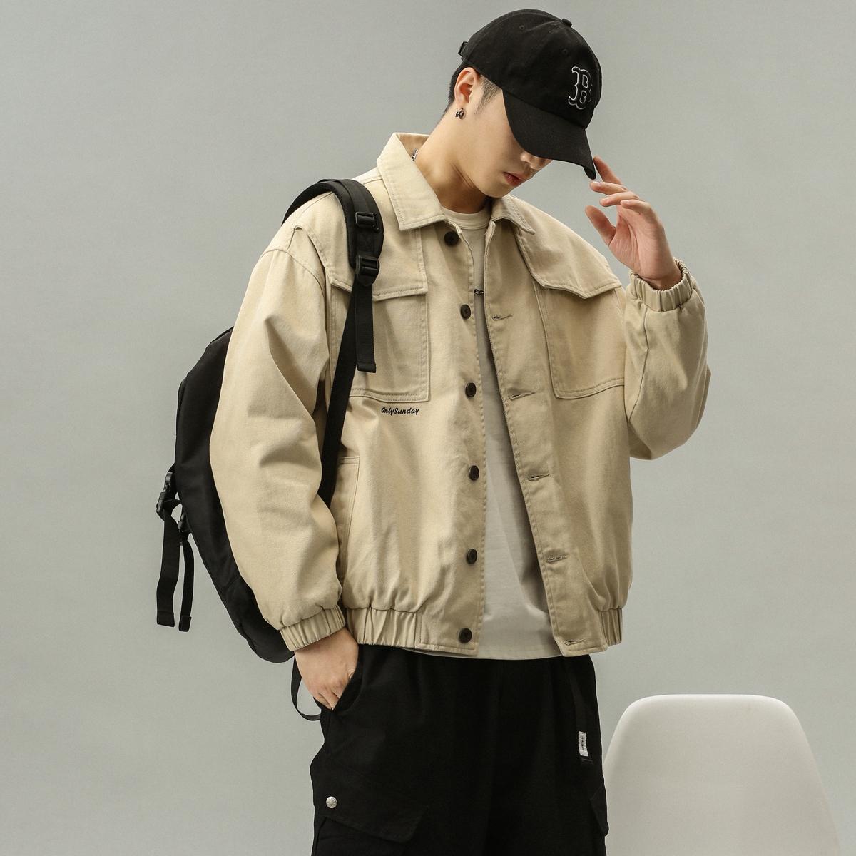 【YS2750】潮牌米白色純色簡約質感寬鬆保暖工裝夾克(斷碼福利賣完不補)