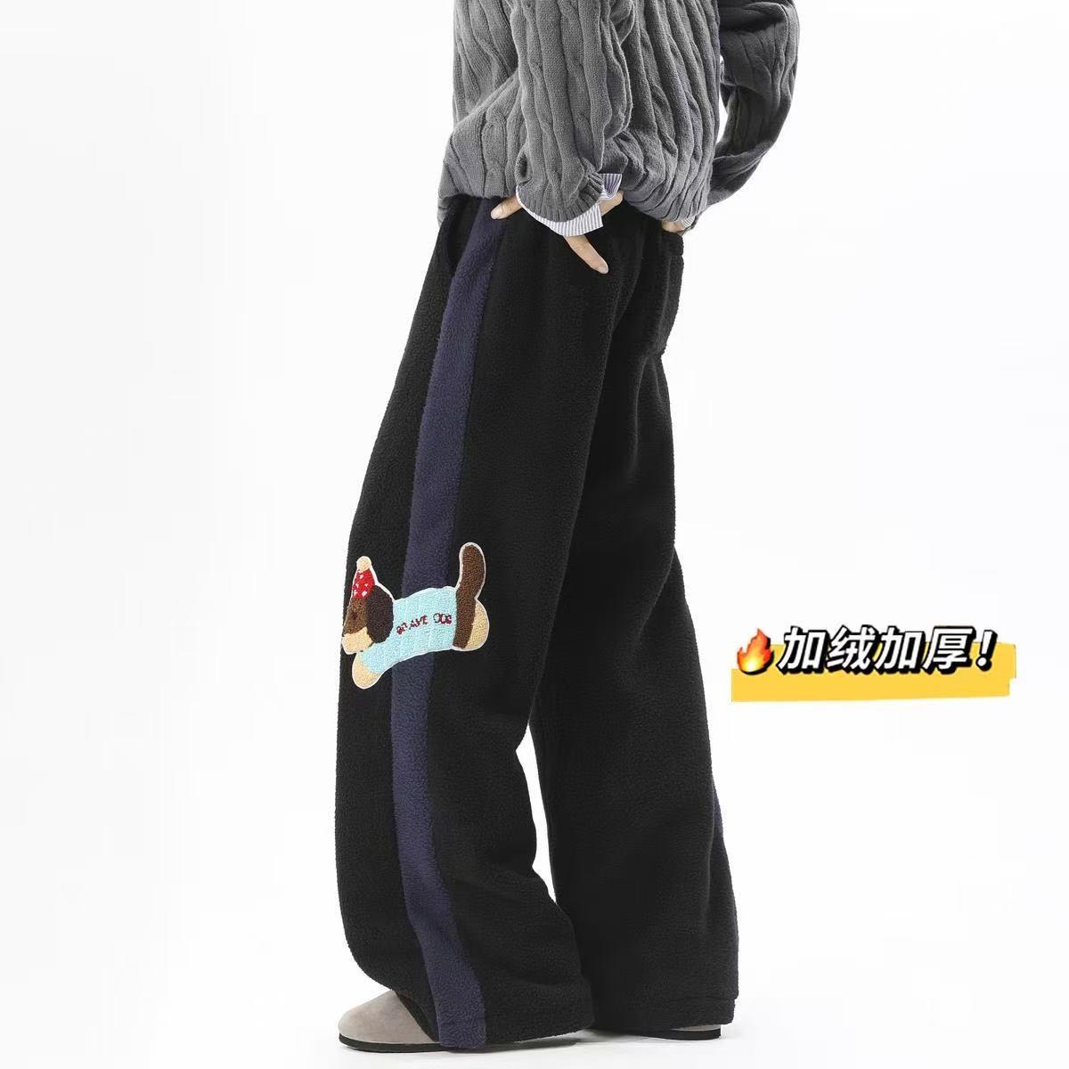 【YS2751】加絨加厚羊羔絨直筒休閒褲