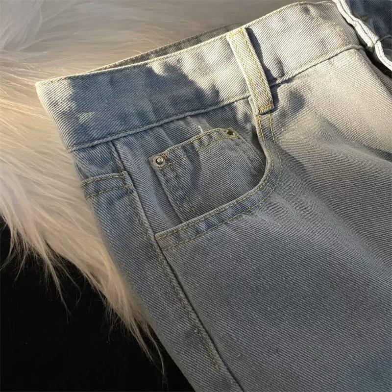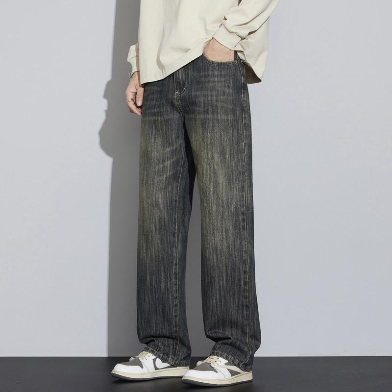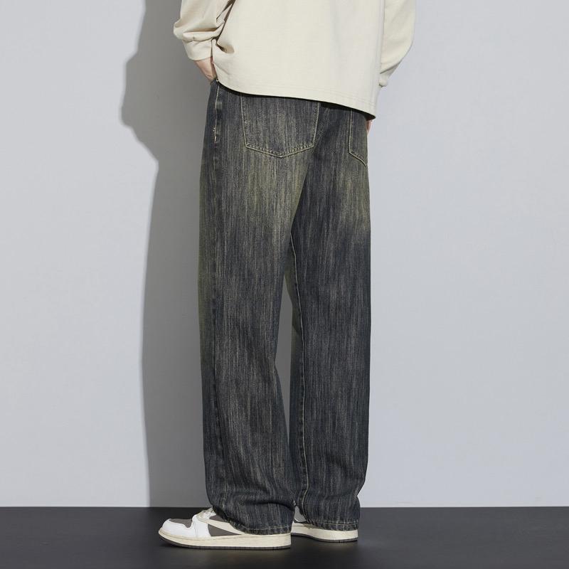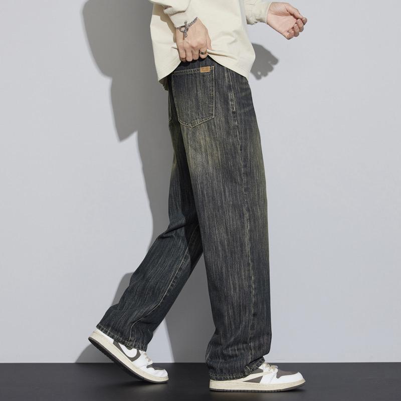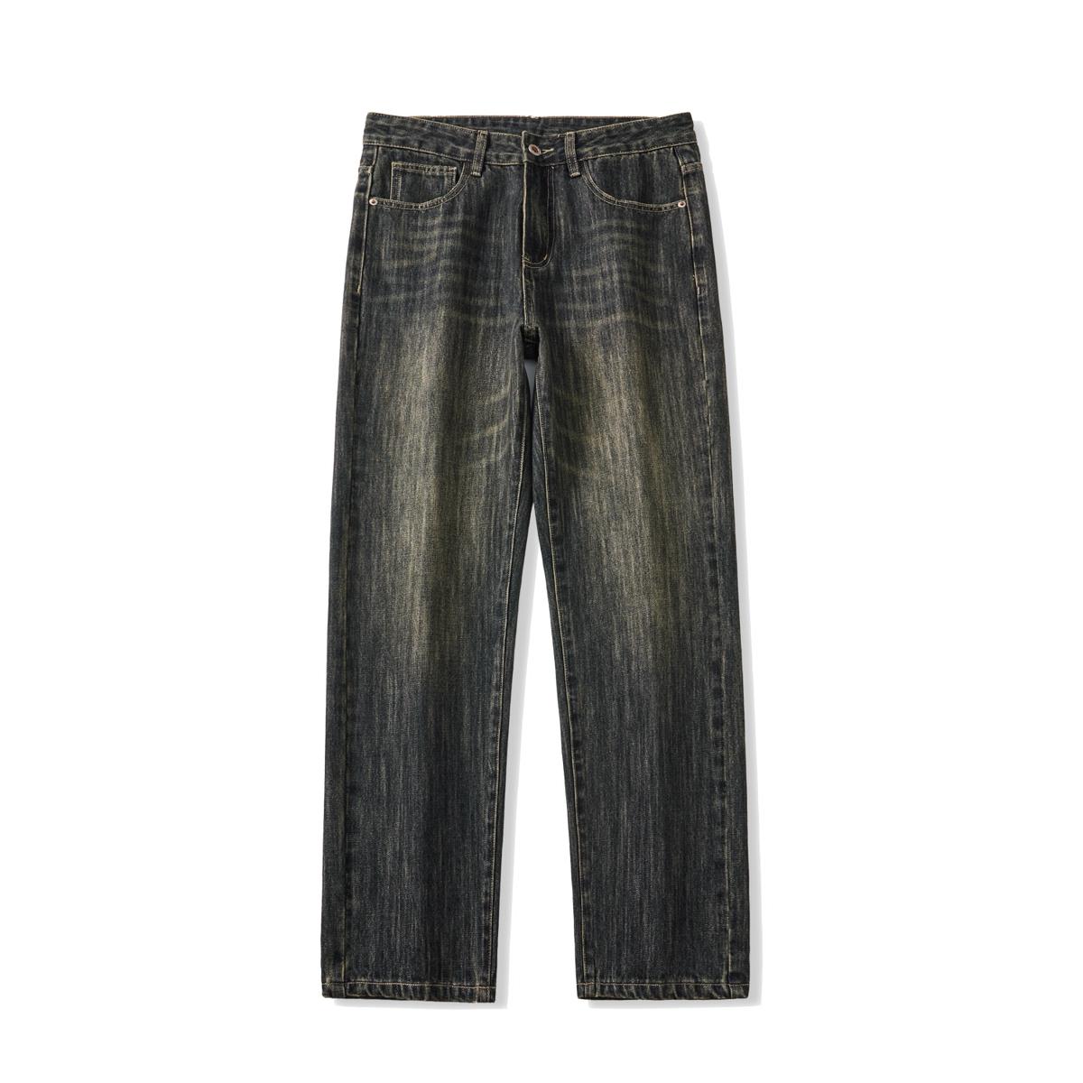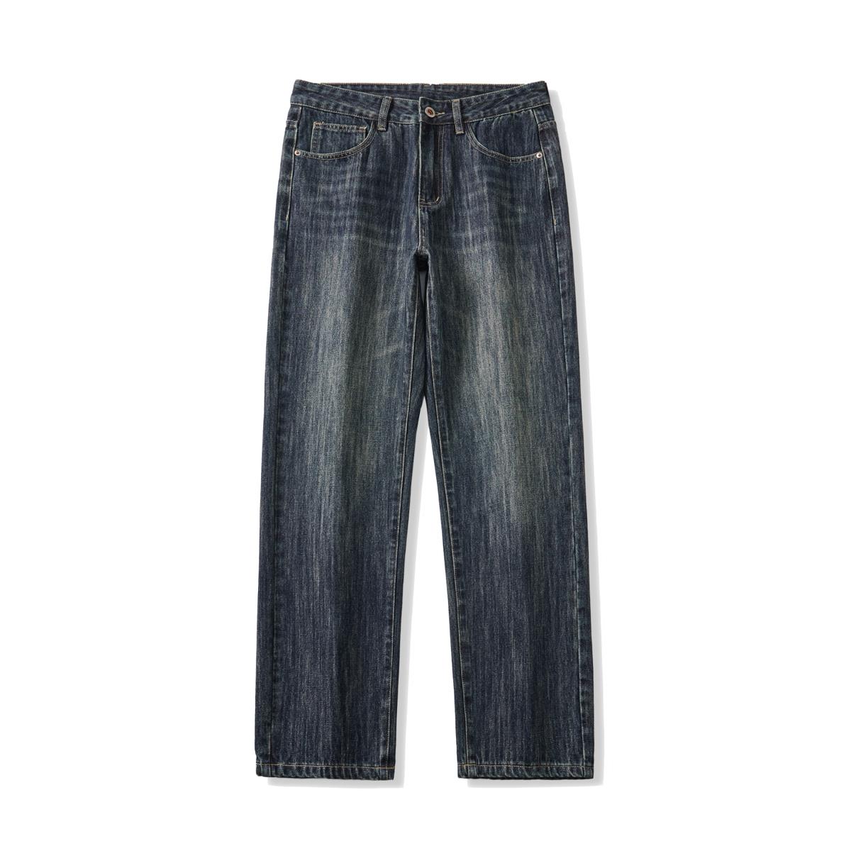 【YS2752】復古竹節紋直筒寬鬆基礎百搭水洗牛仔褲