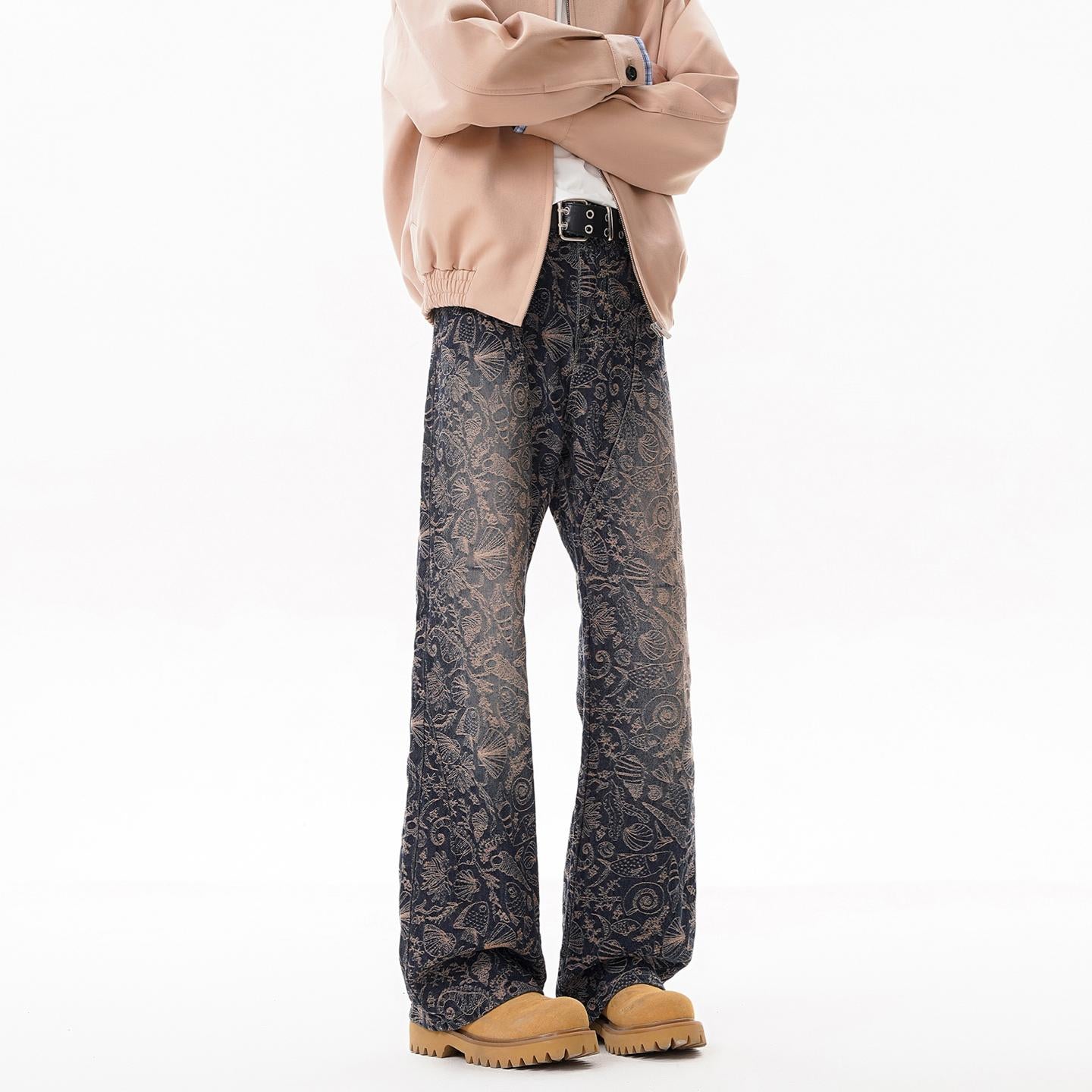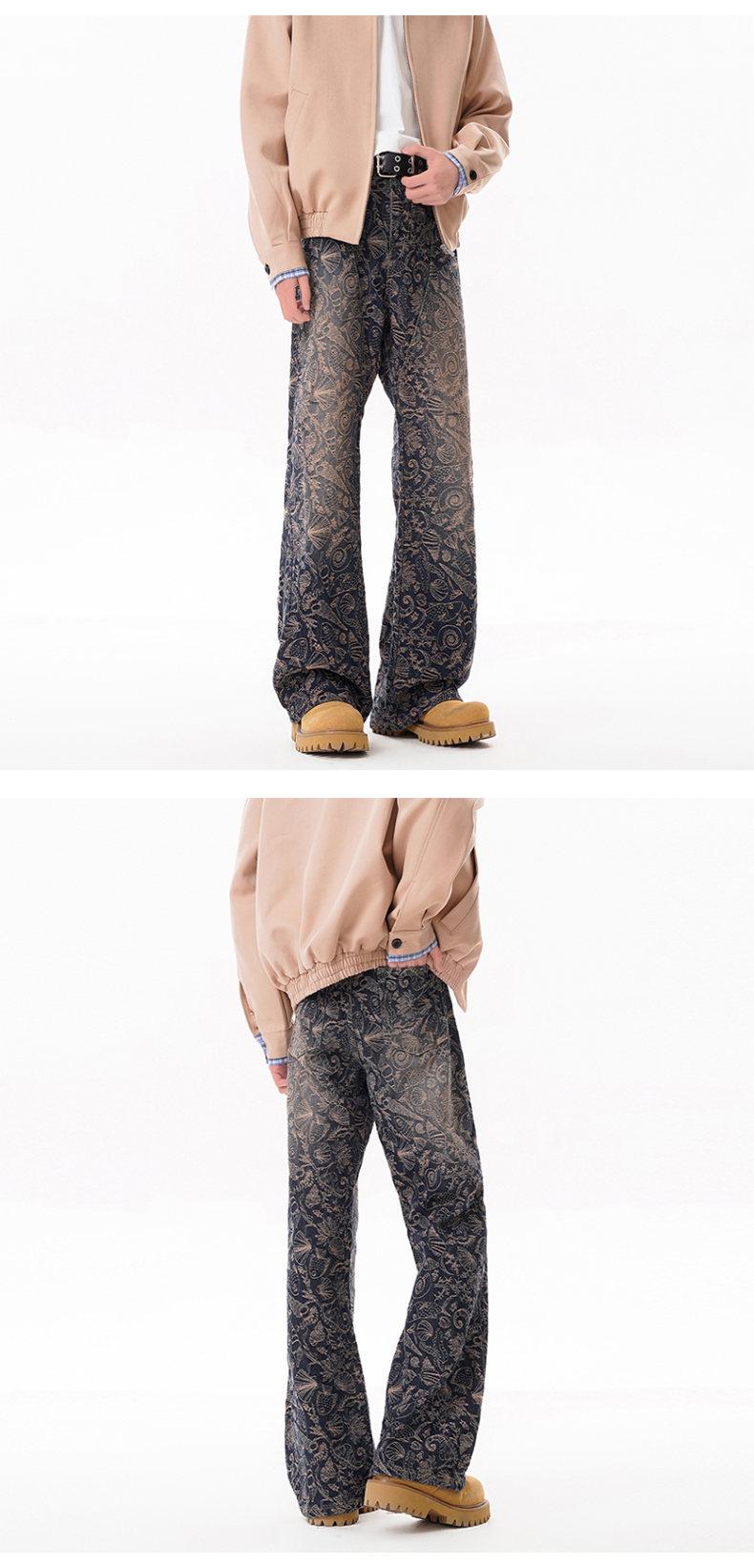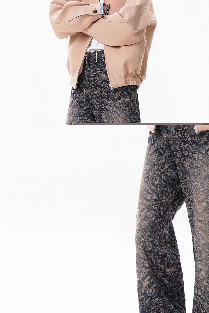 【YS2756】美式ins高街小衆休閒提花直筒牛仔褲