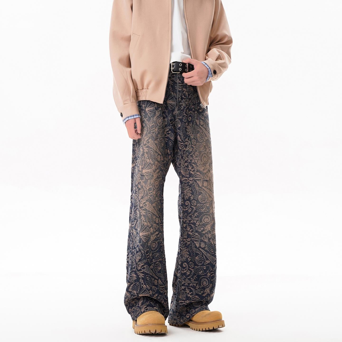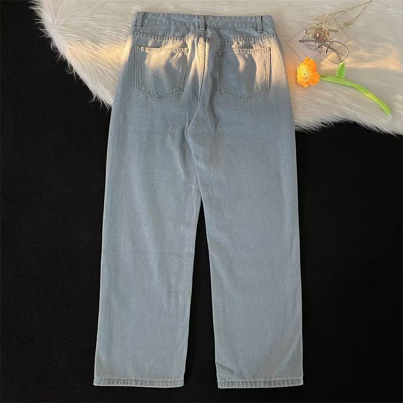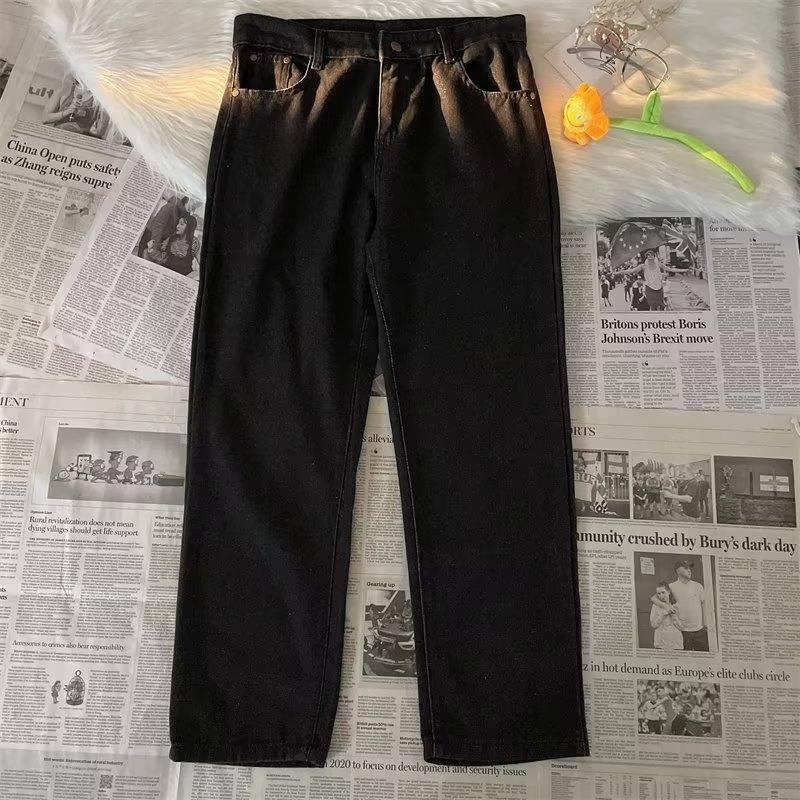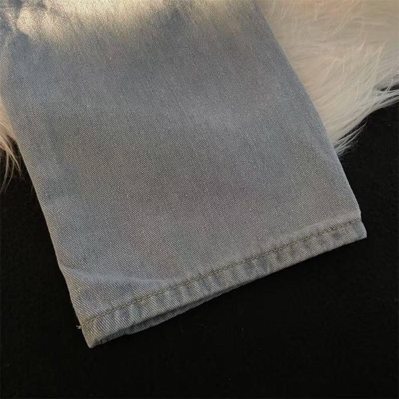 【YS2756】美式ins高街小衆休閒提花直筒牛仔褲