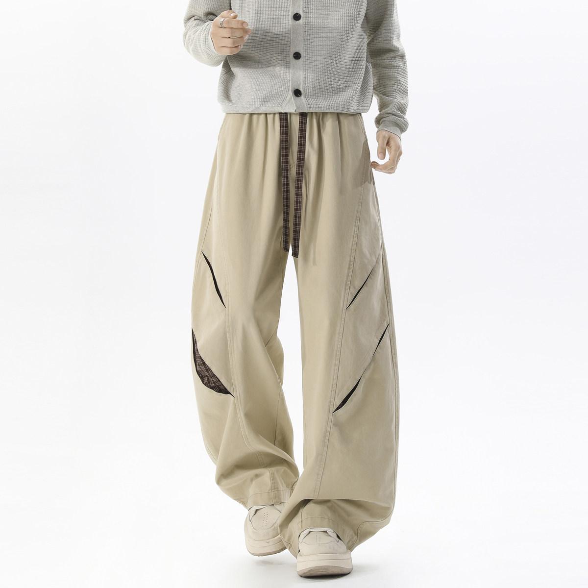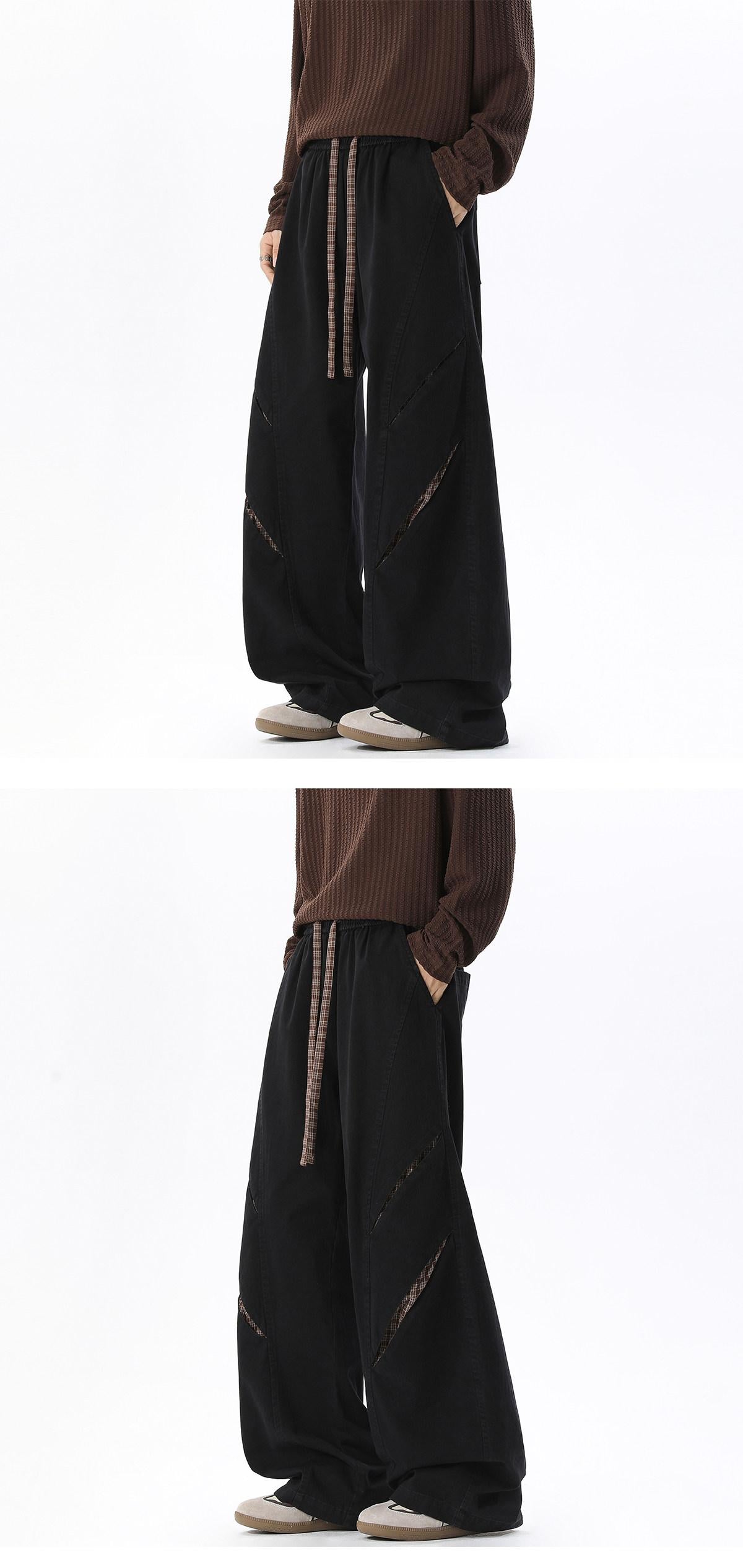 【YS2757】鬆緊腰繫帶時尚闊腿拼接百搭休閒褲