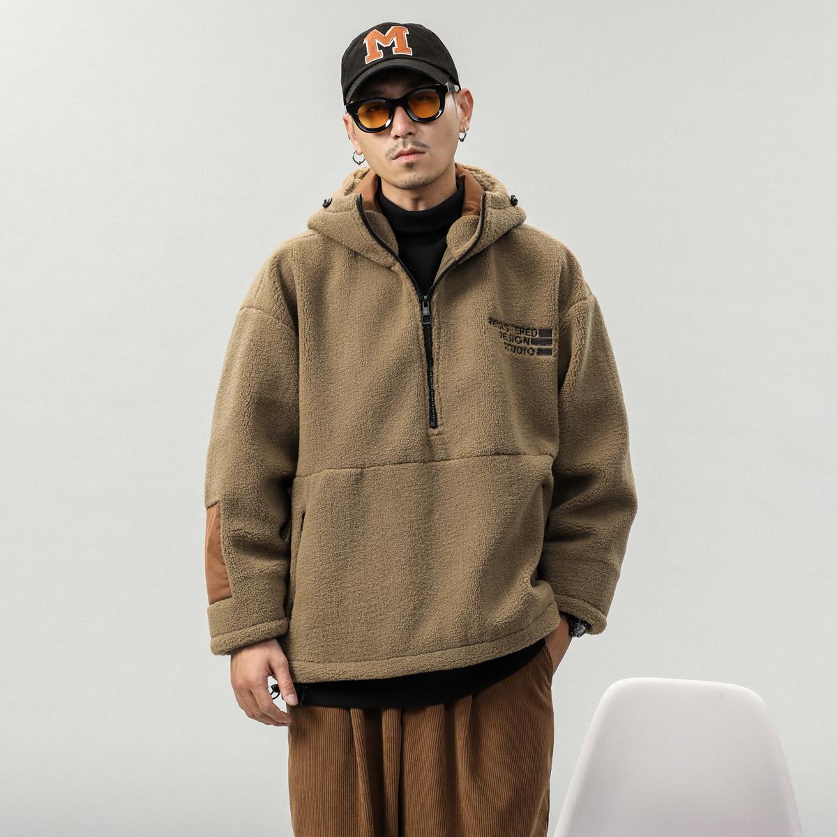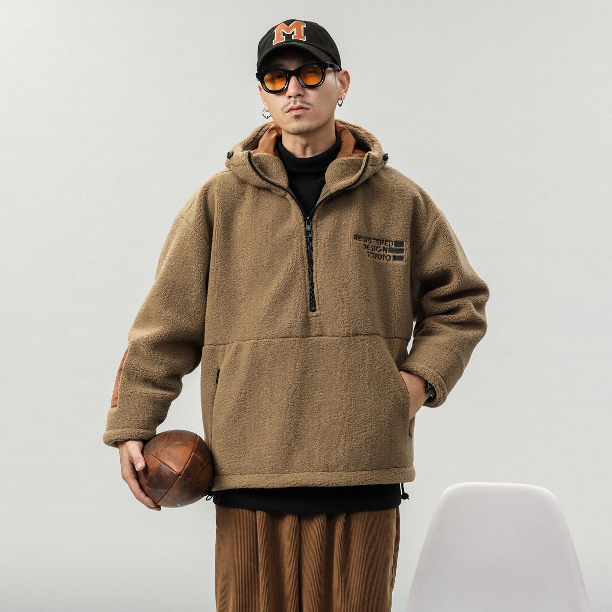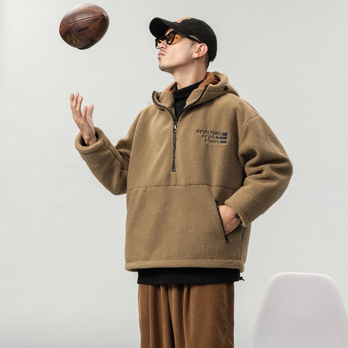 【YS2740】品質羊羔絨連帽保暖刺繡口袋衛衣