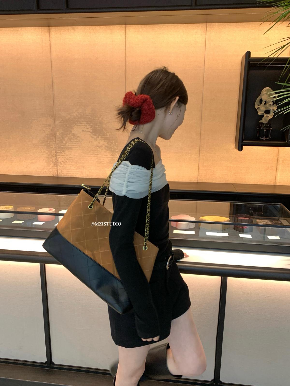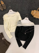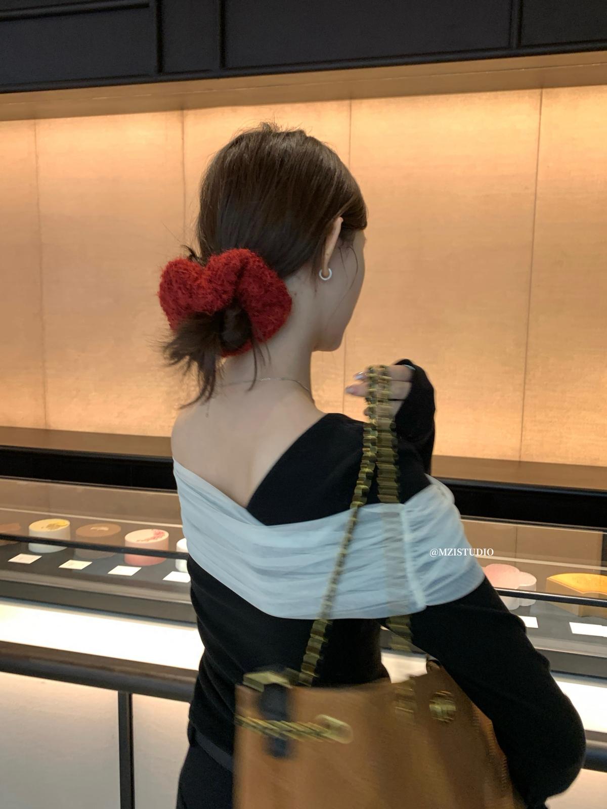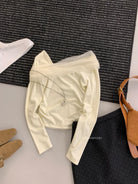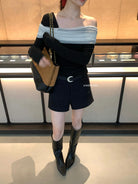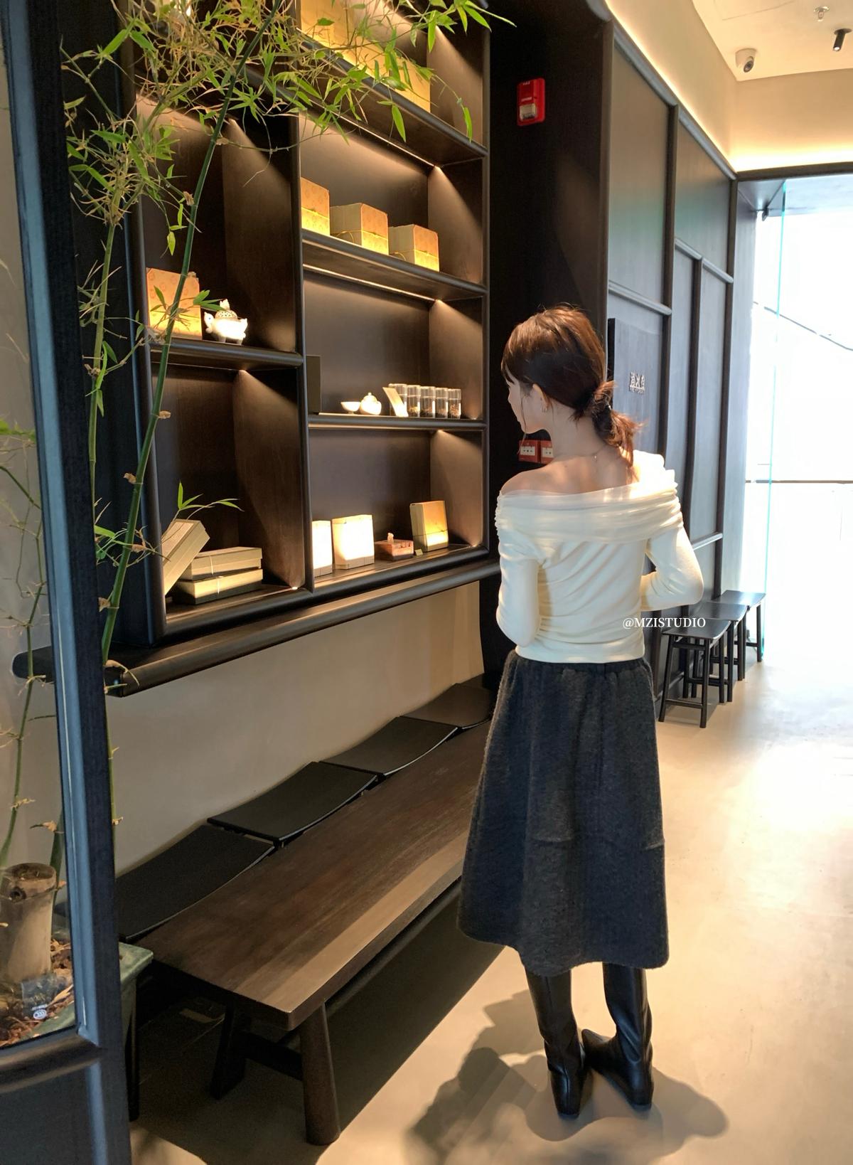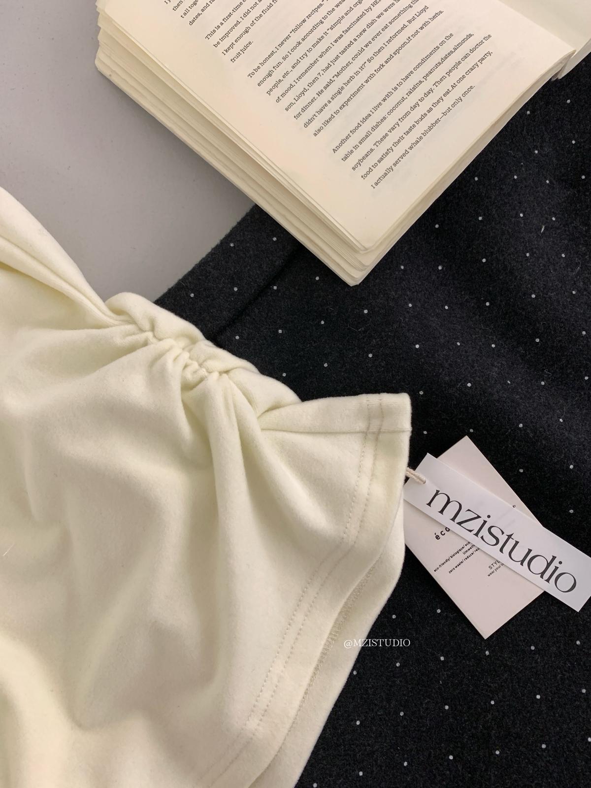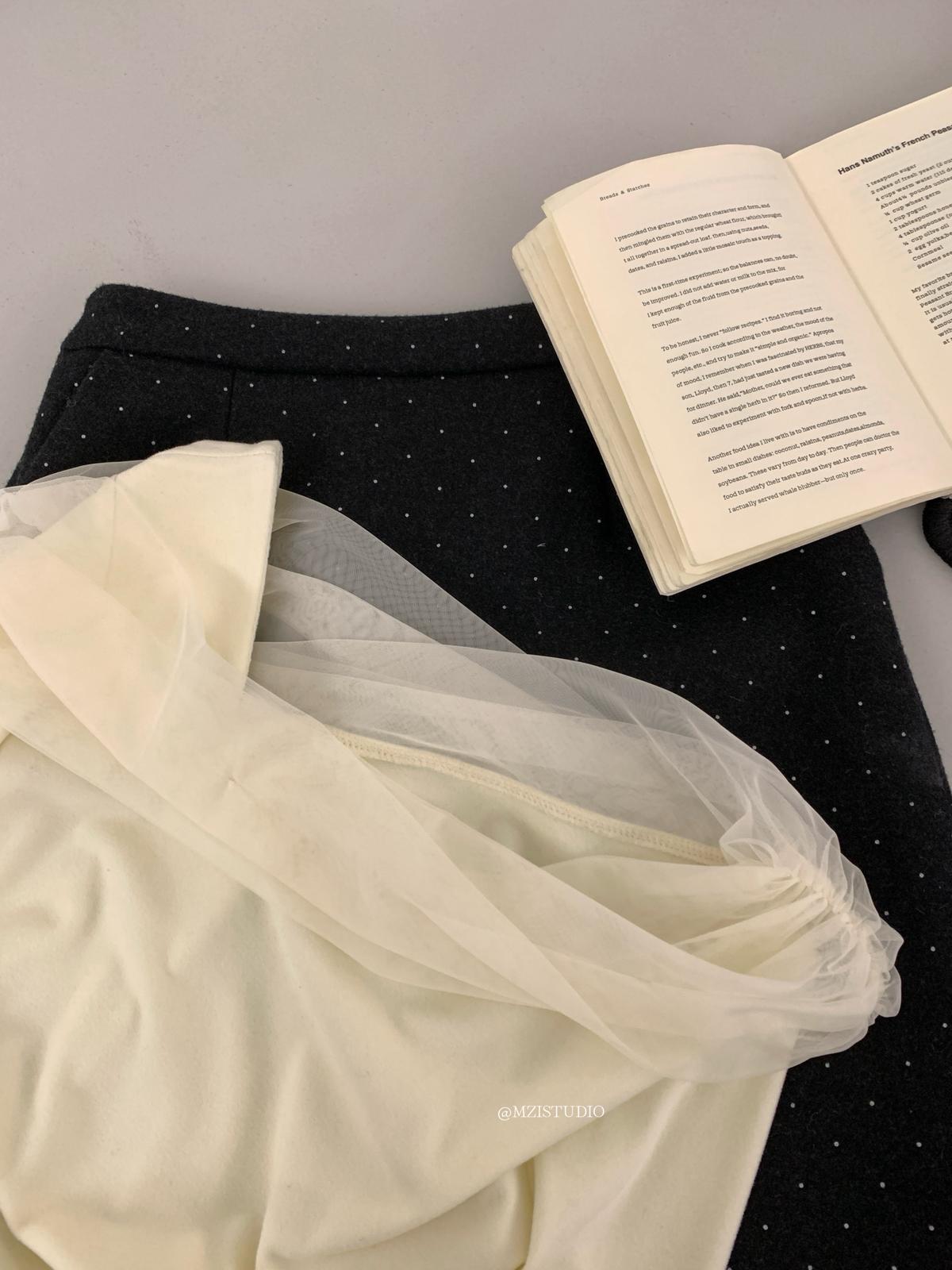 【C8496】超仙歐尼穿搭一字肩網紗拼接抽褶收腰顯瘦套頭小衫