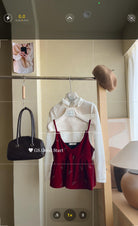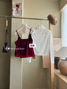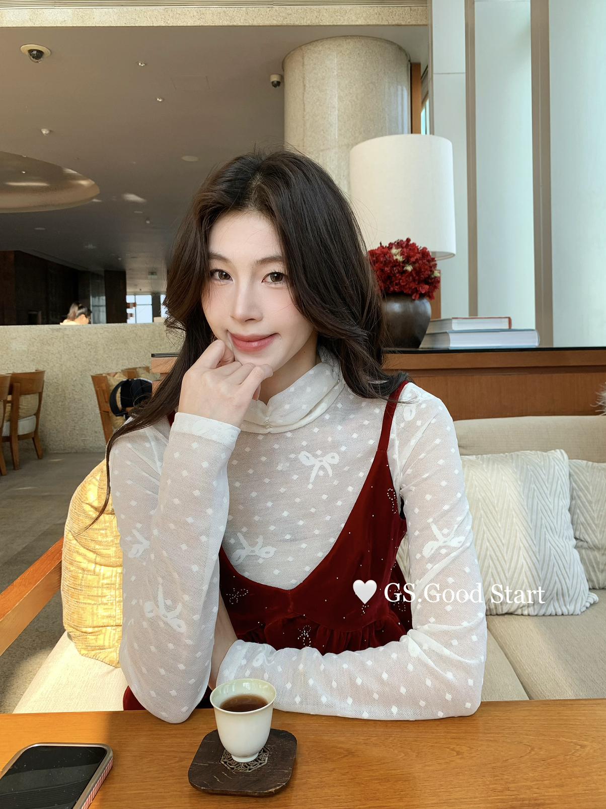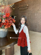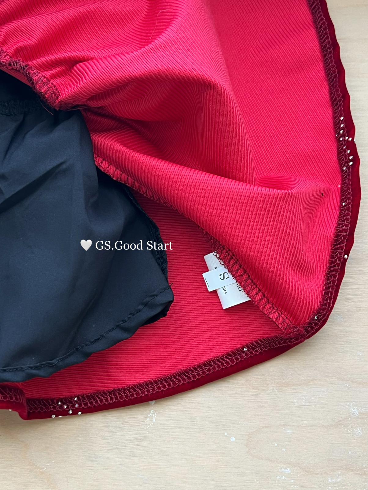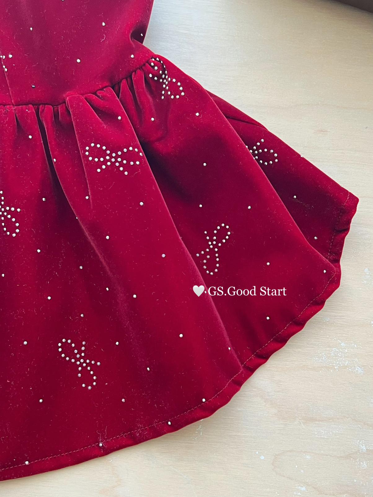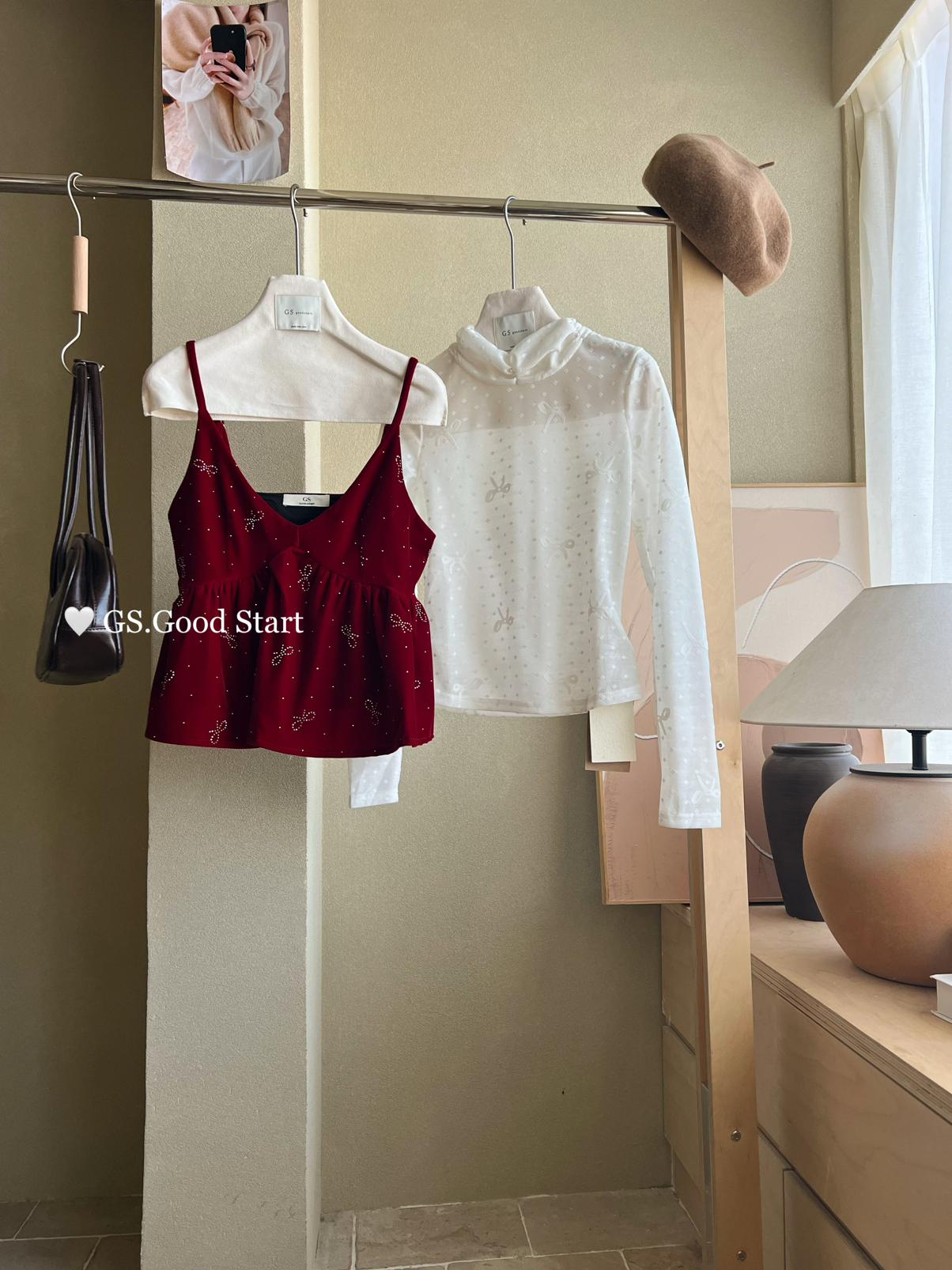 【C8497】發財新年紅!人人誇*開爆啦!法式復古絲絨燙鑽背心+波點小衫套裝
