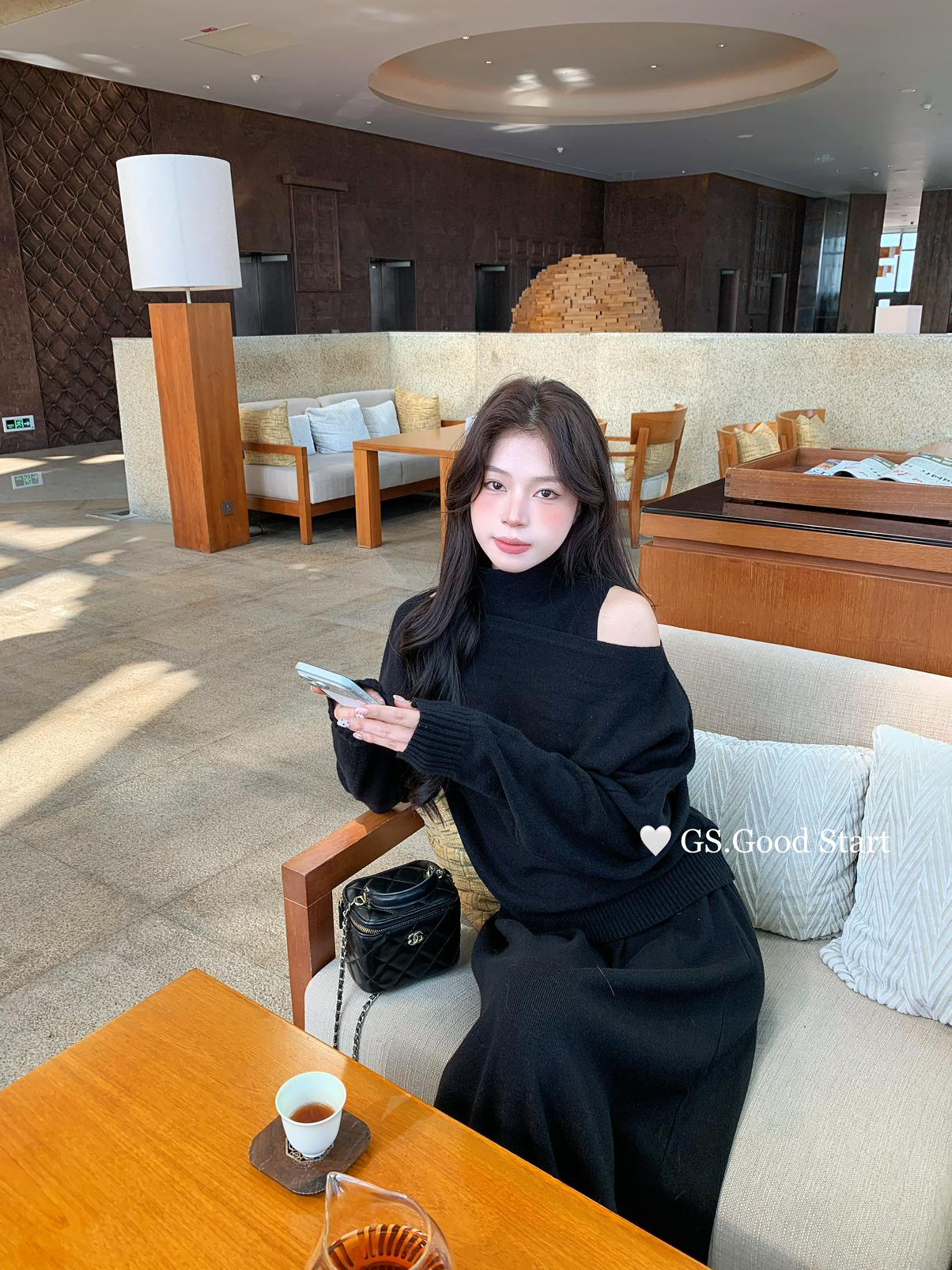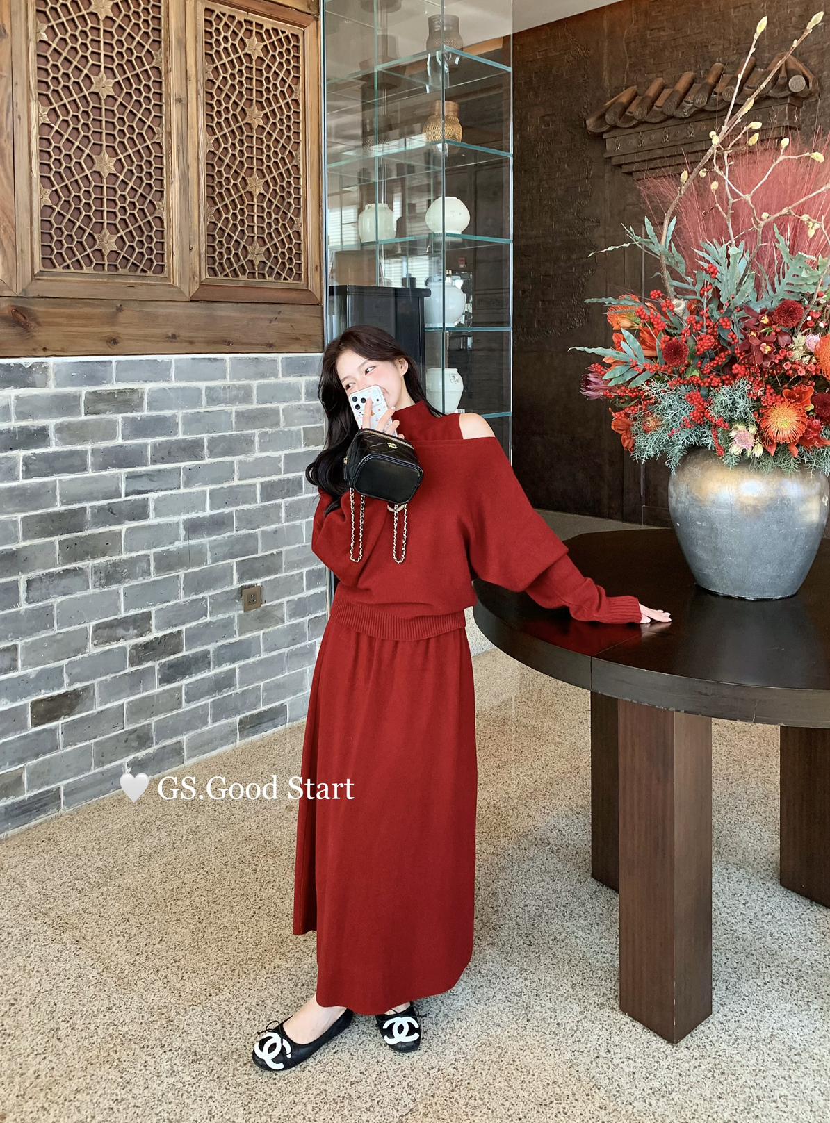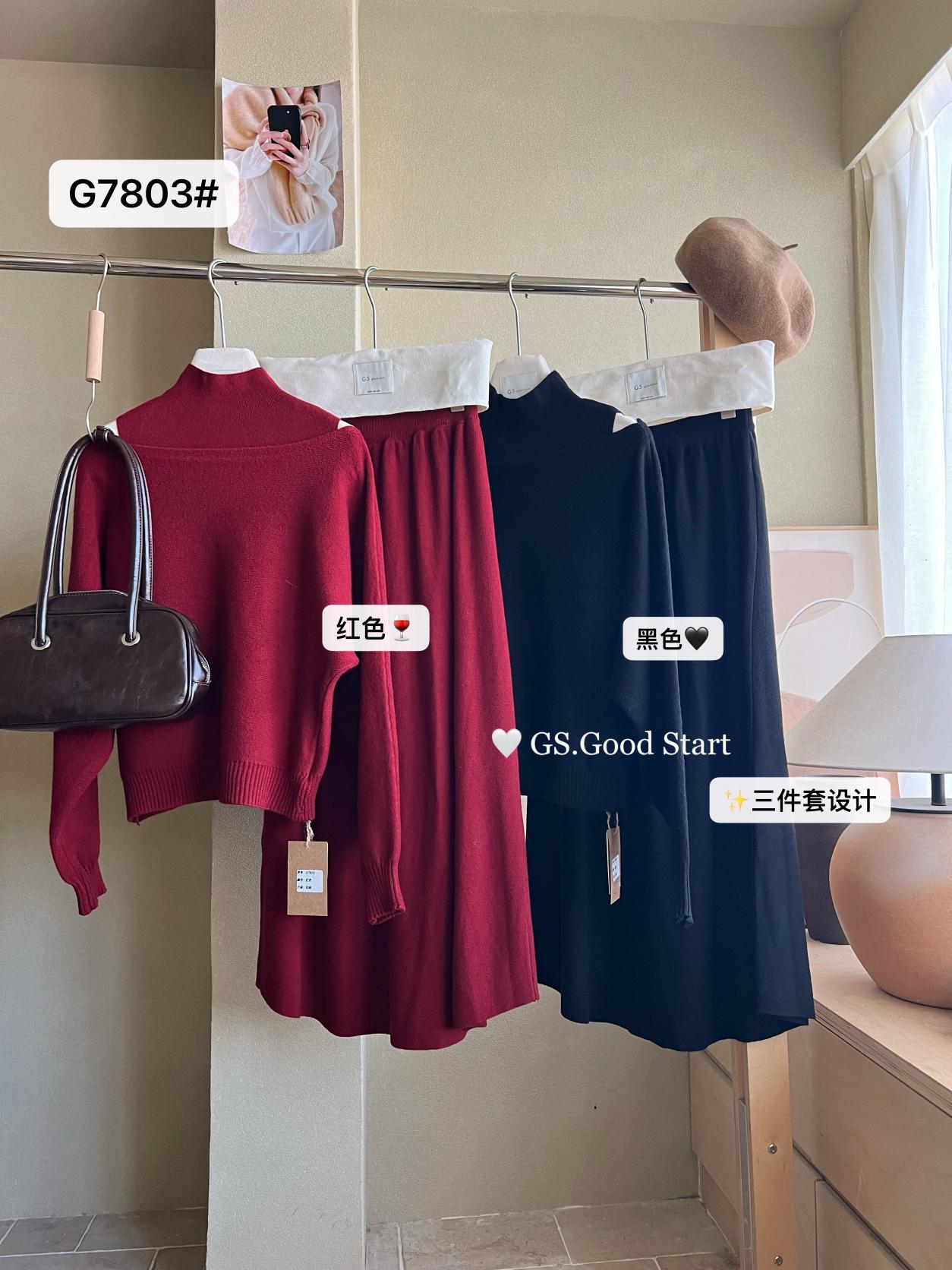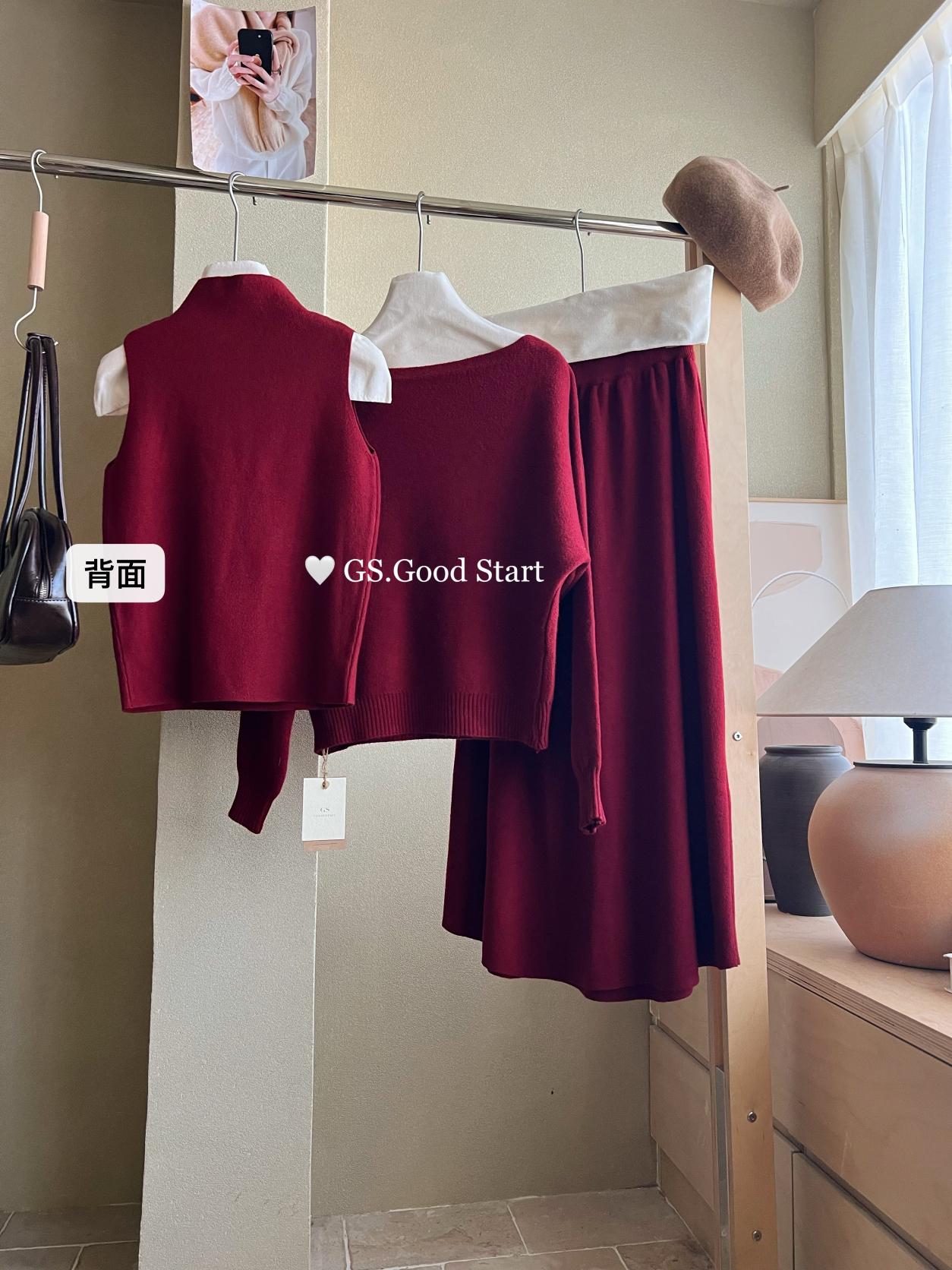 【C8498】一見鍾情姐感拉滿太絕了冬氣質蝙蝠袖針織衫+背心+半身裙套裝