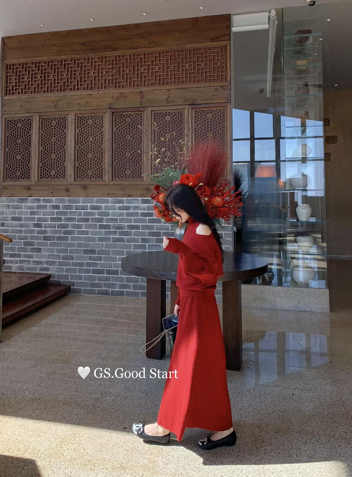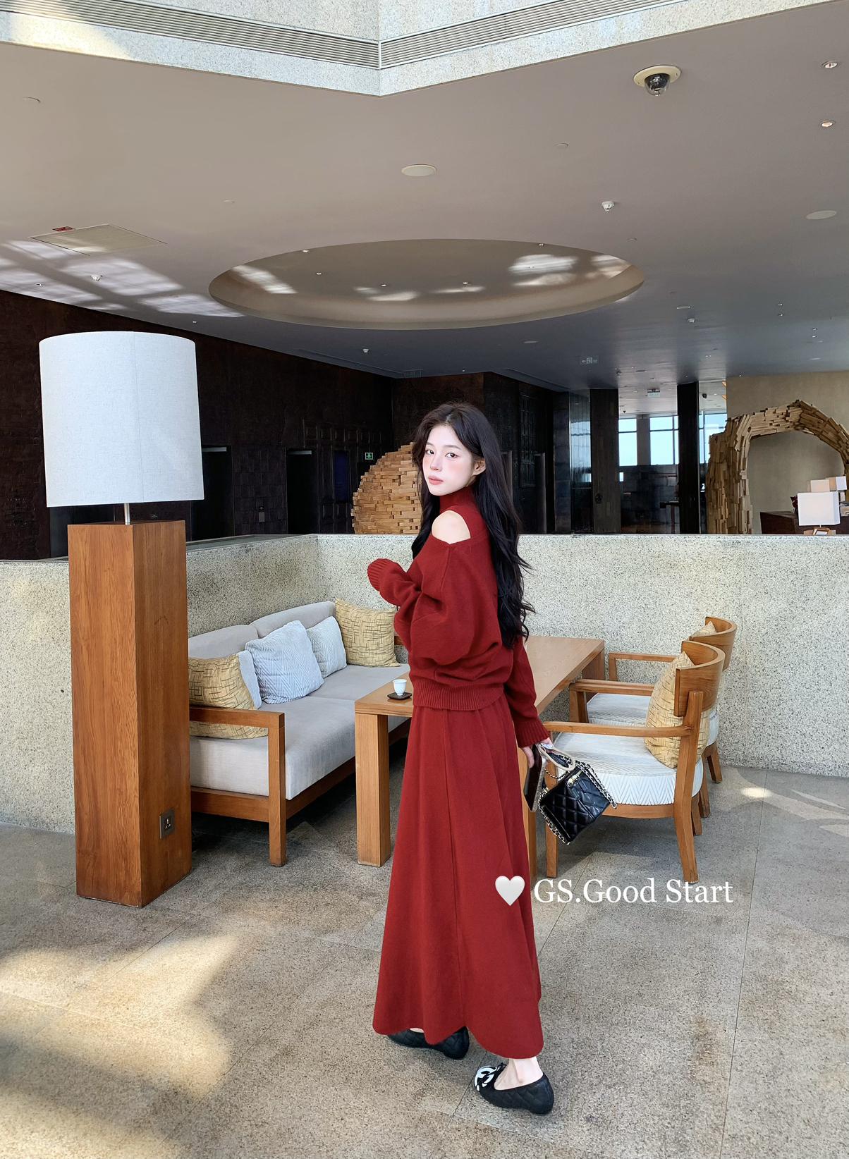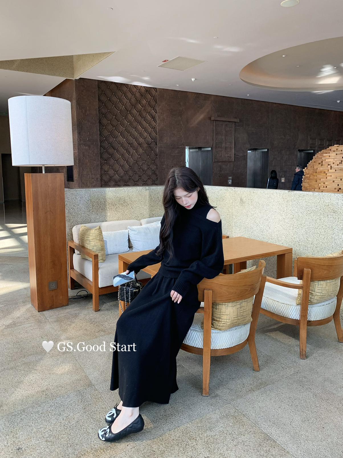 【C8498】一見鍾情姐感拉滿太絕了冬氣質蝙蝠袖針織衫+背心+半身裙套裝