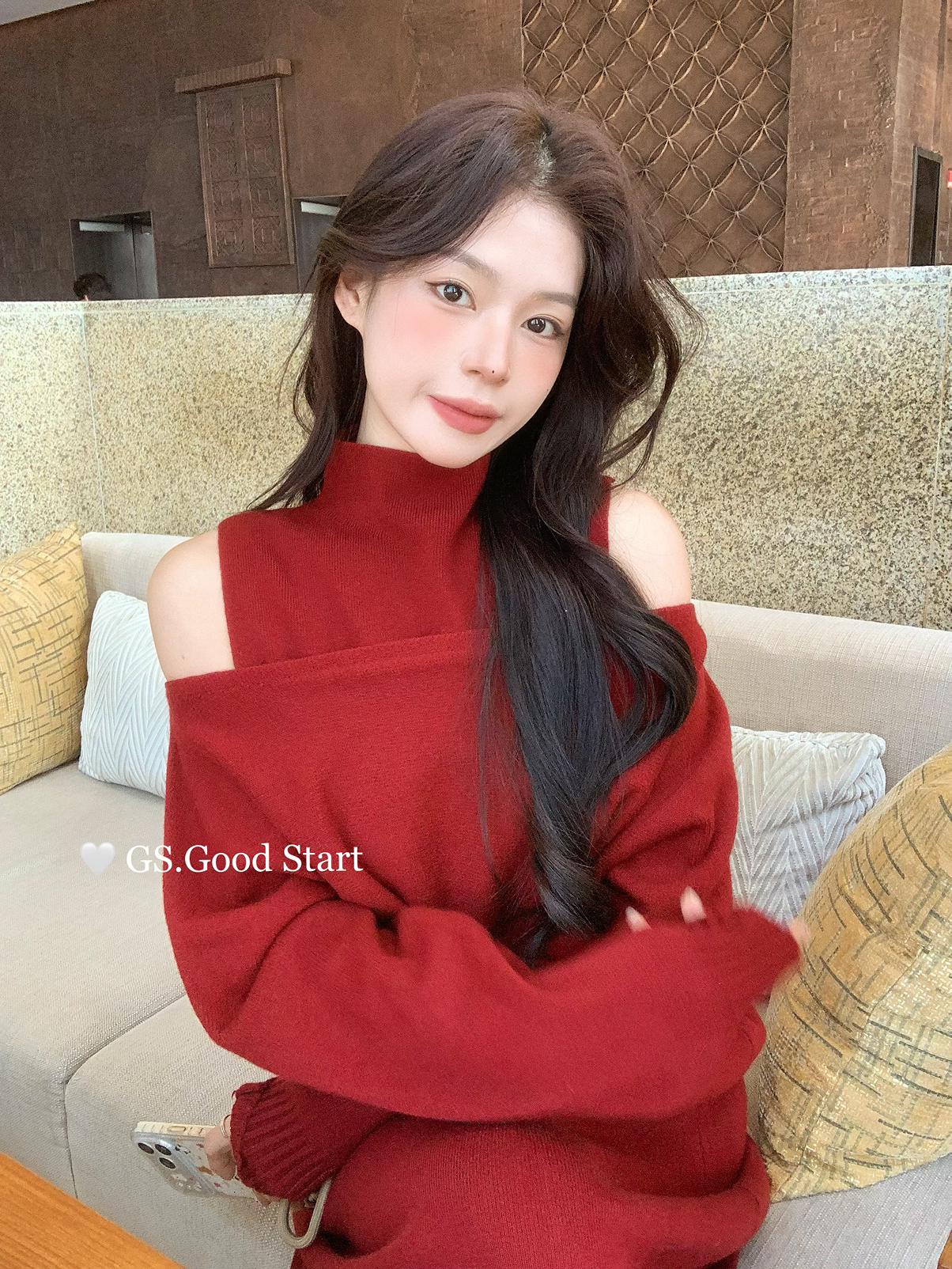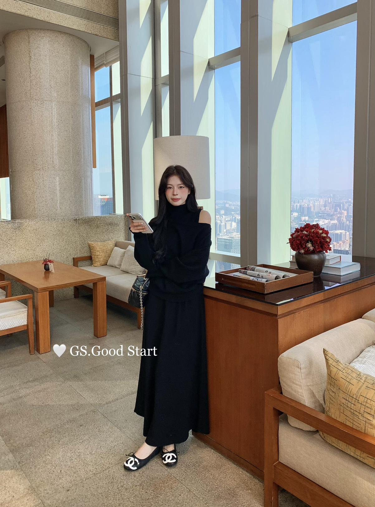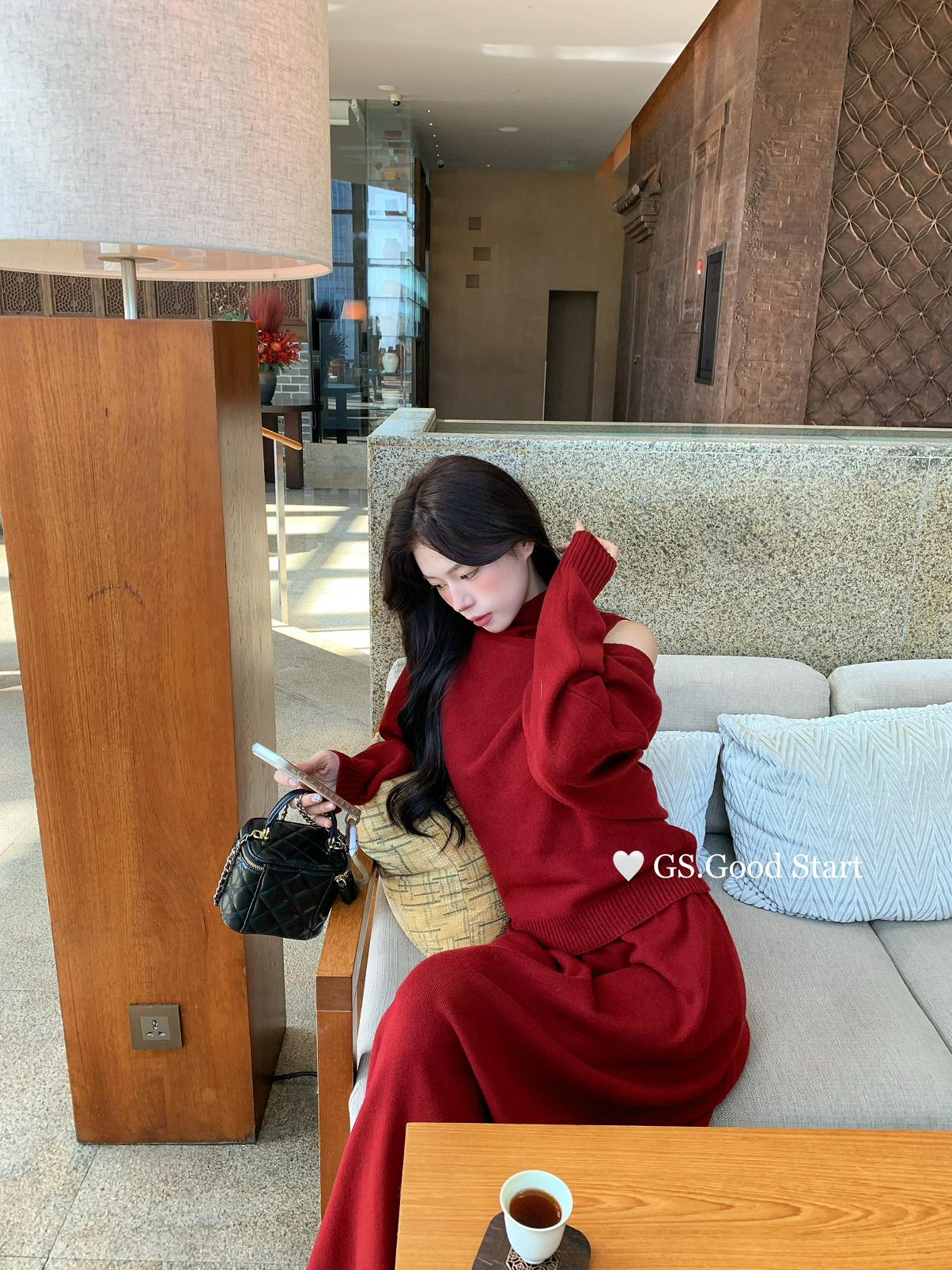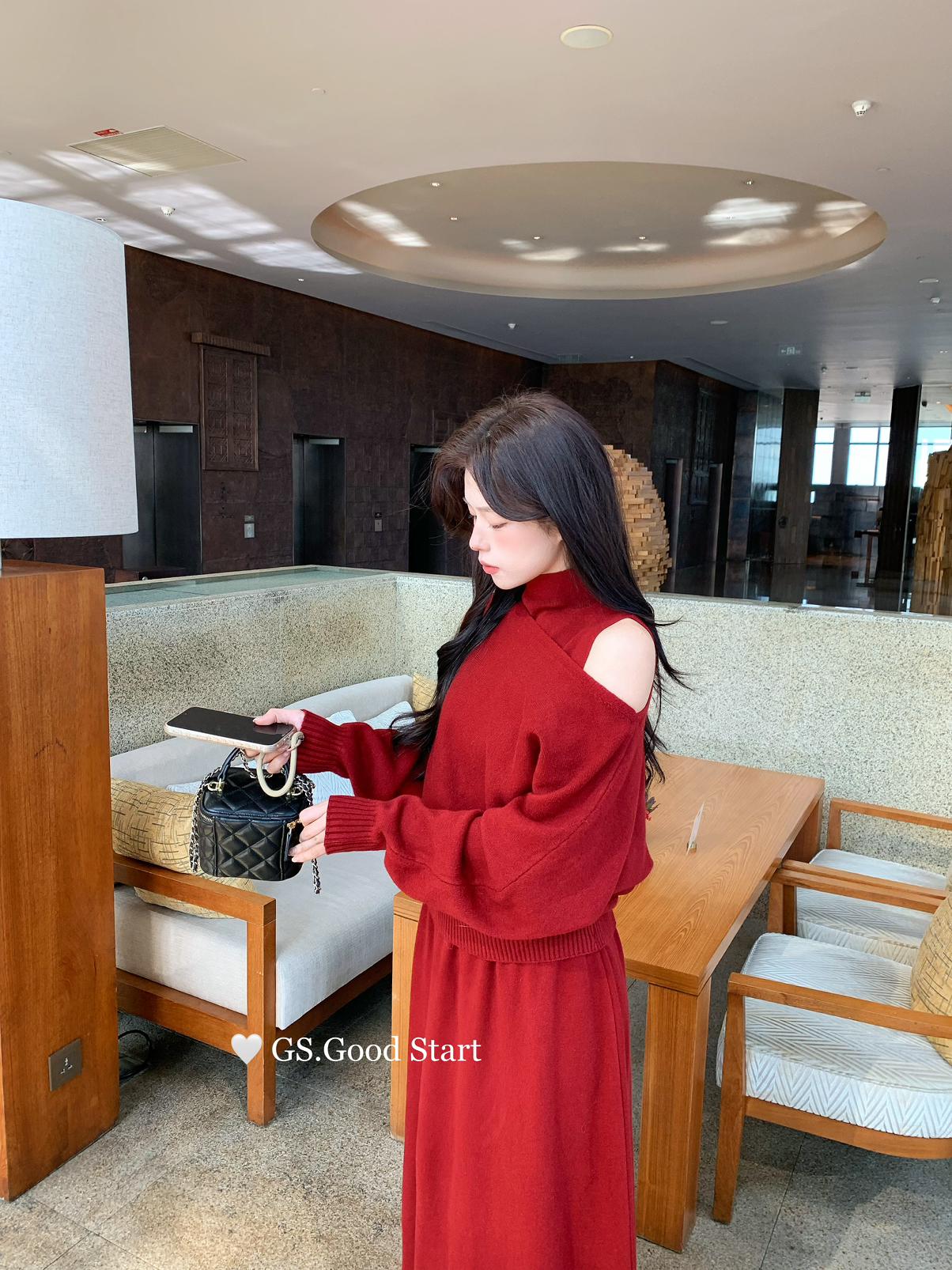 【C8498】一見鍾情姐感拉滿太絕了冬氣質蝙蝠袖針織衫+背心+半身裙套裝