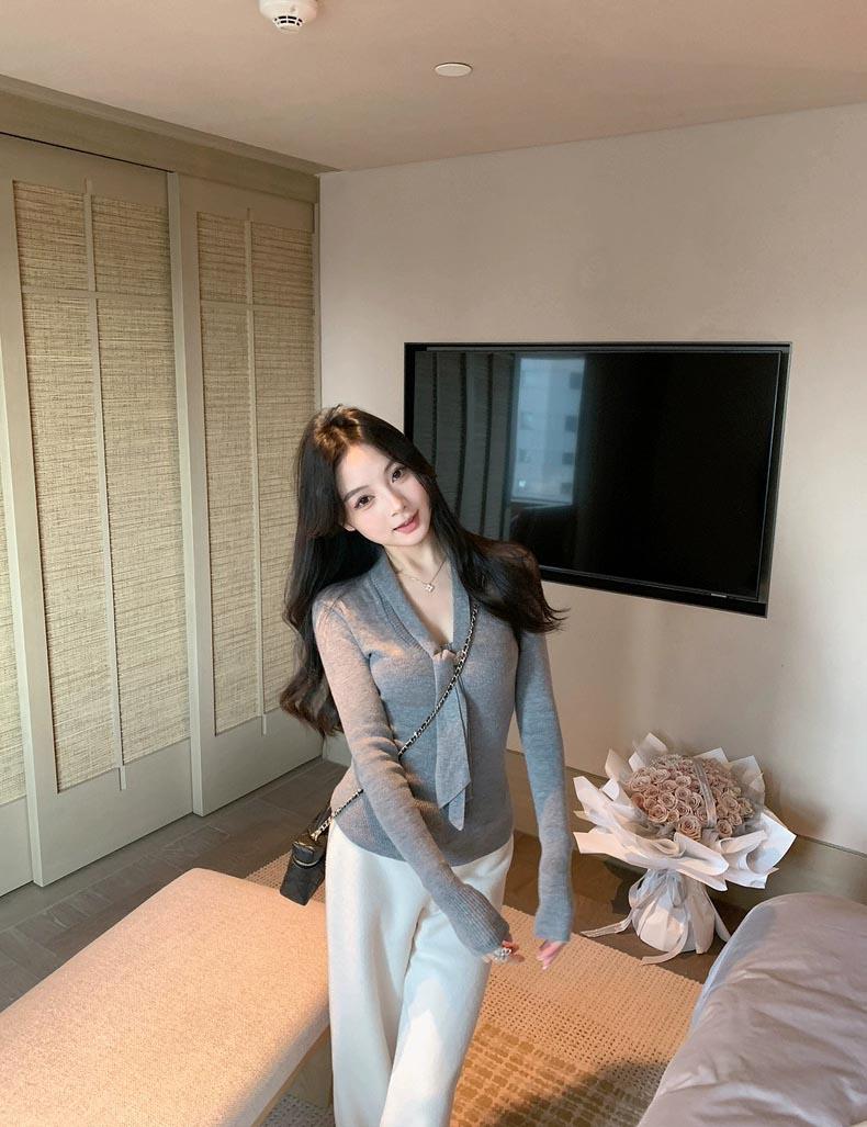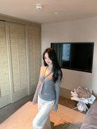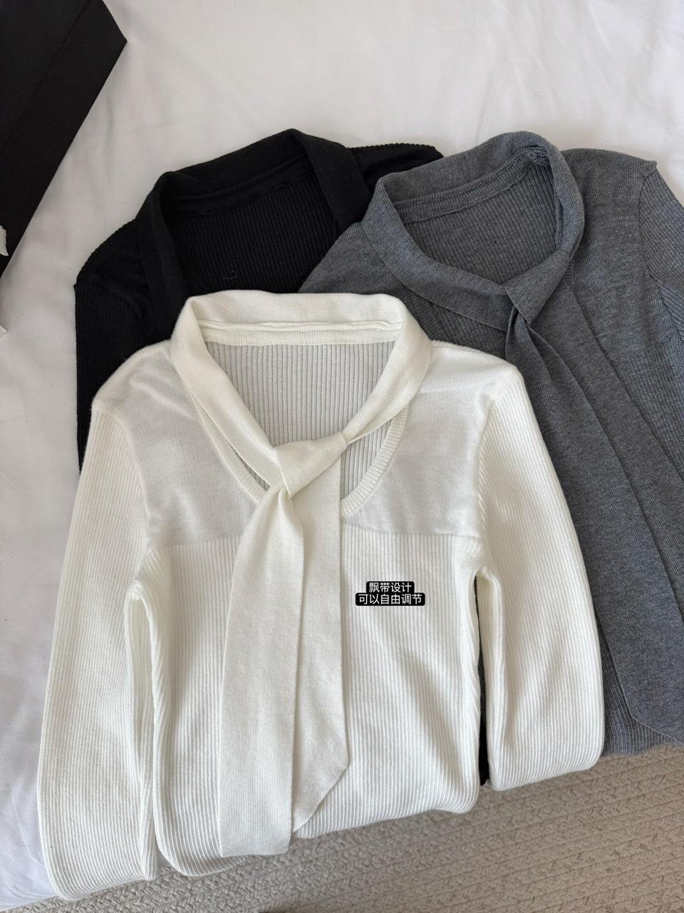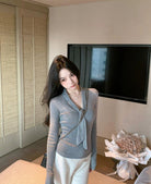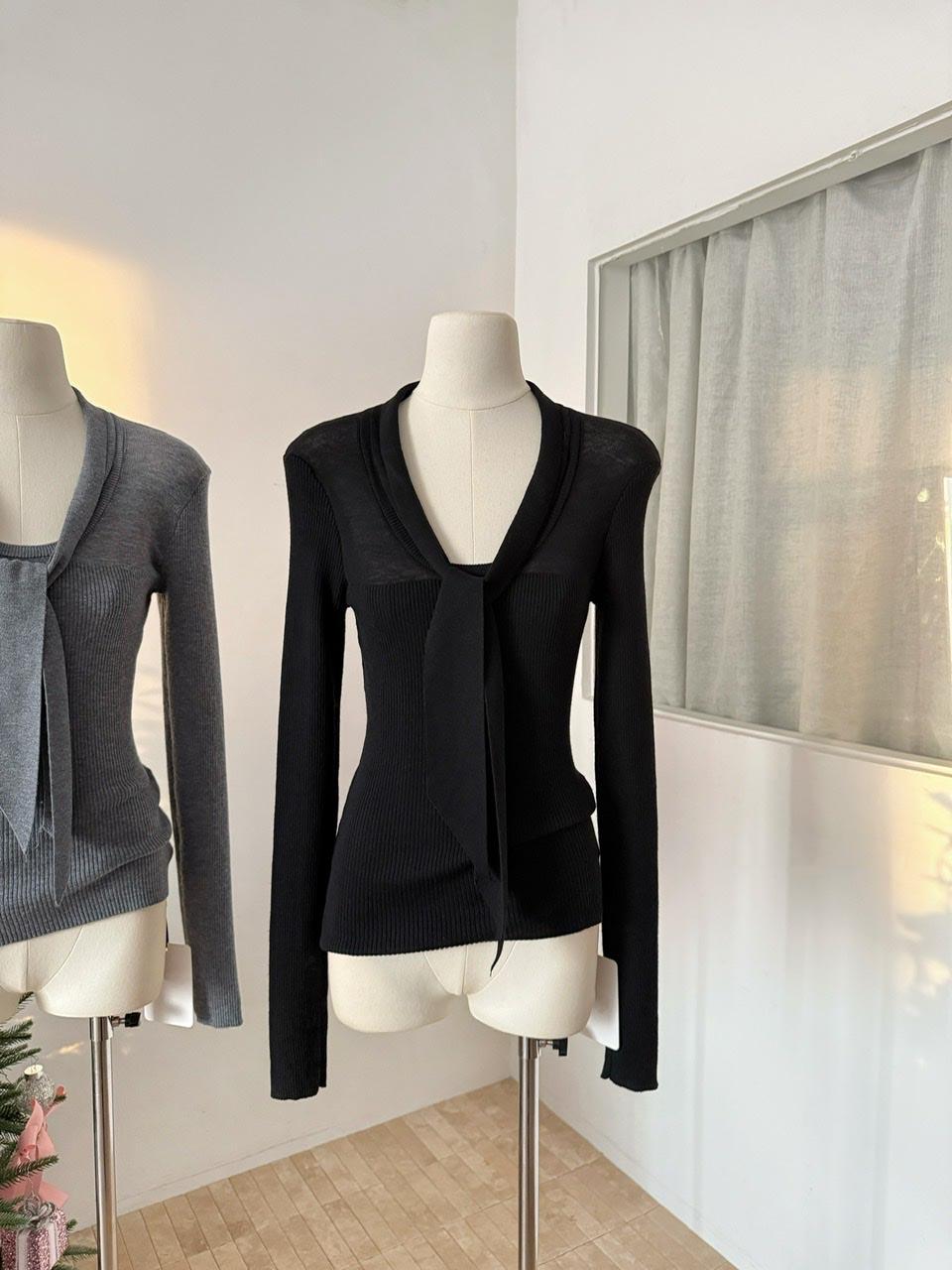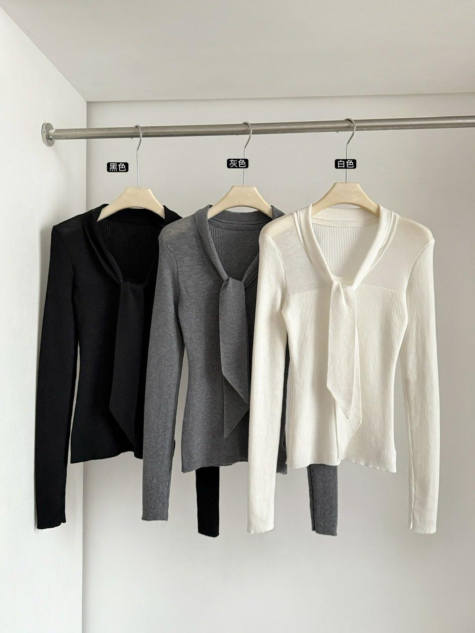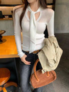 【C8500】高智感半透修身繫帶設計感針織內搭長袖打底衫彈力上衣針織衫