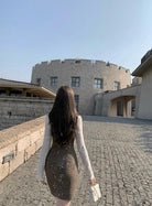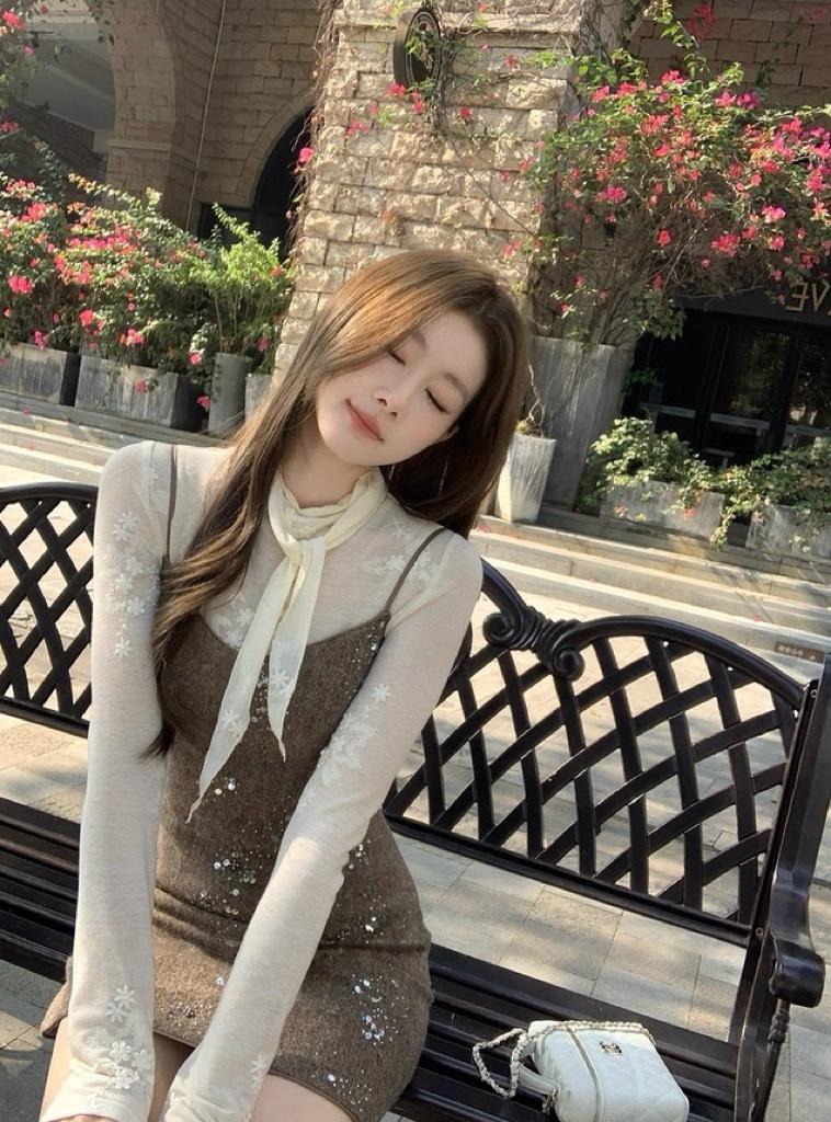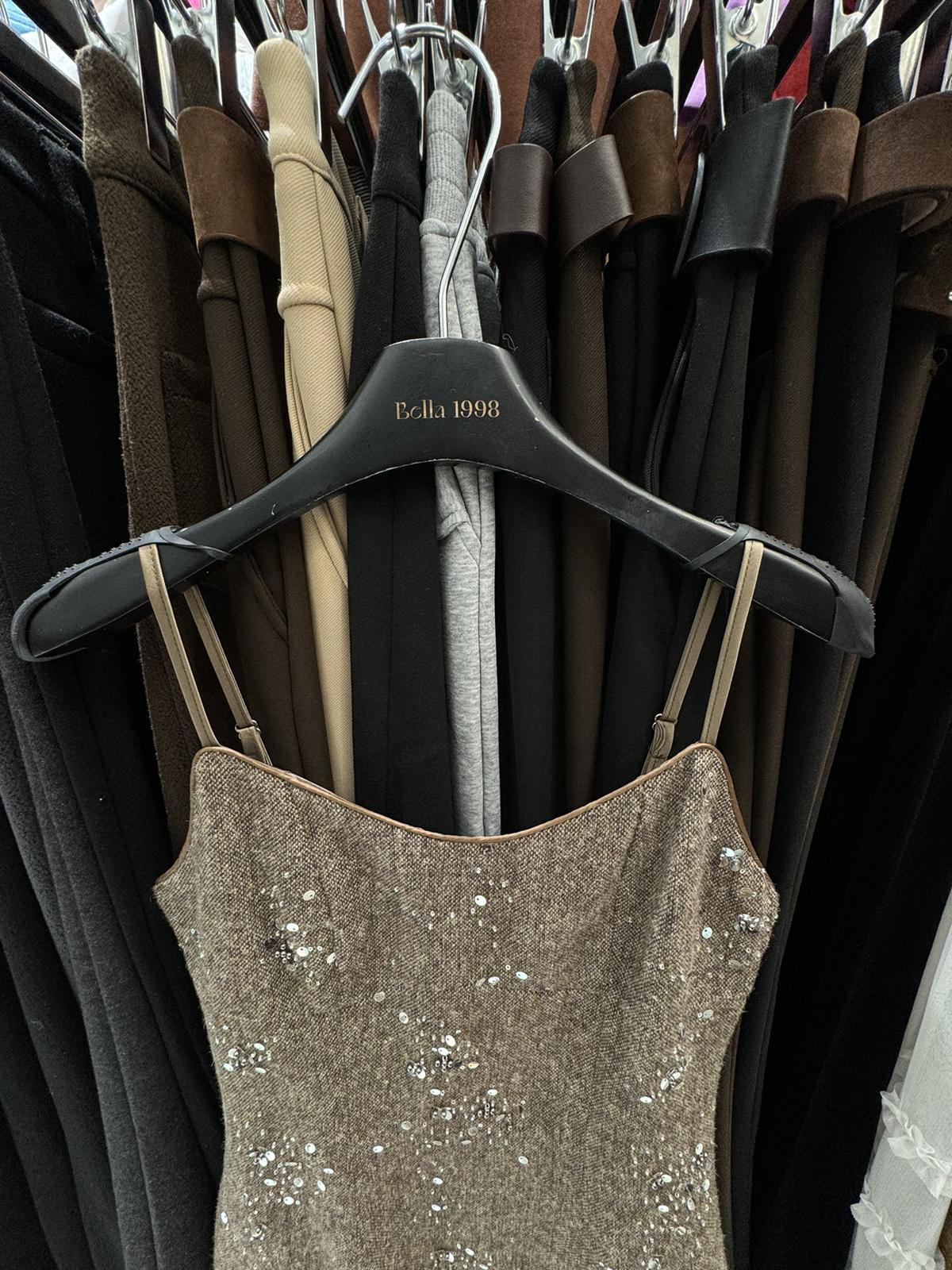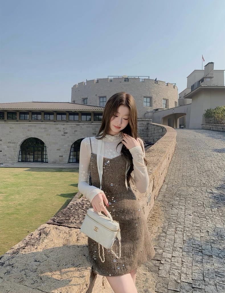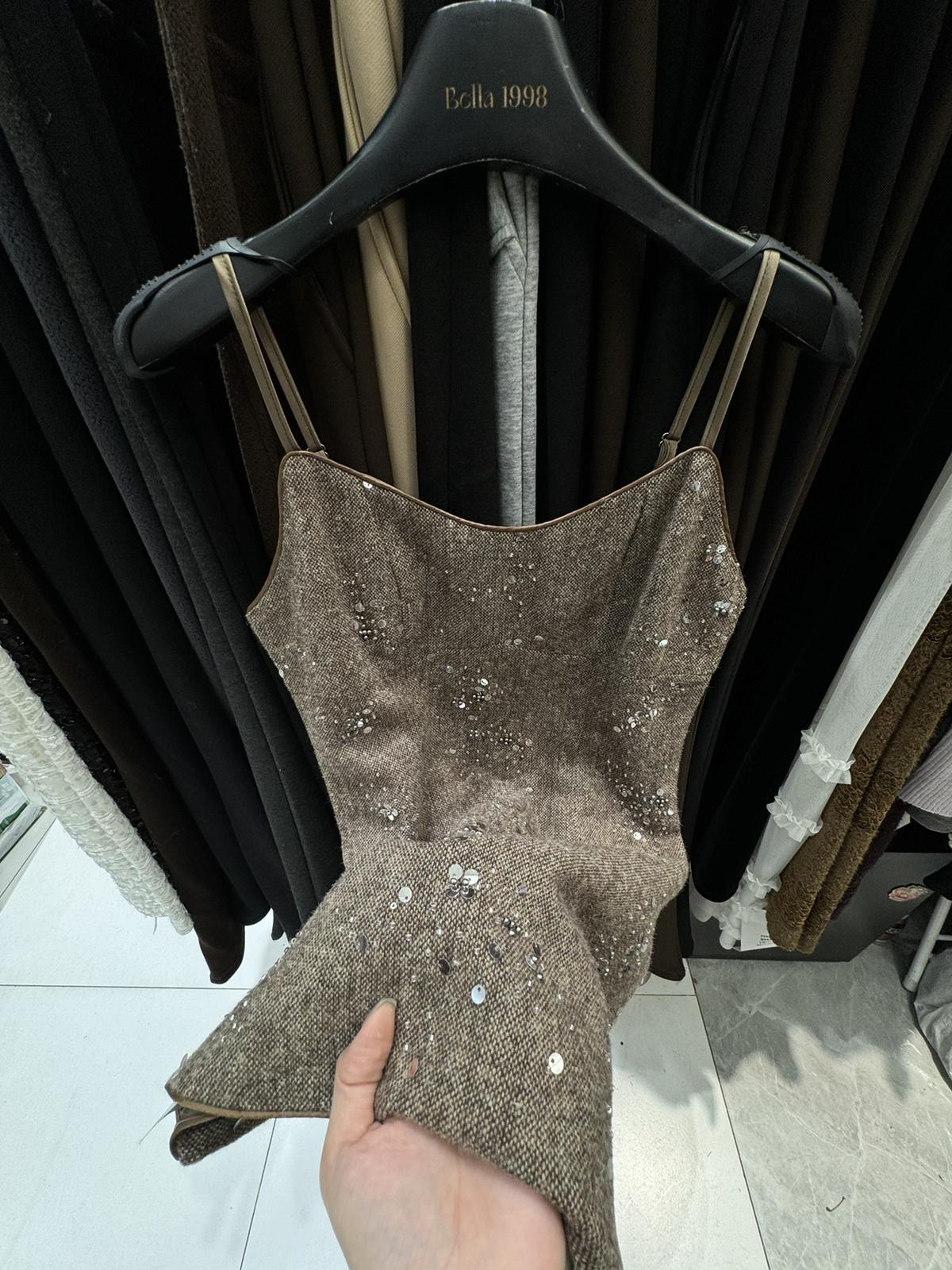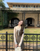 【C8517】氣質復古亮片百搭疊穿顯瘦吊帶背心連衣裙