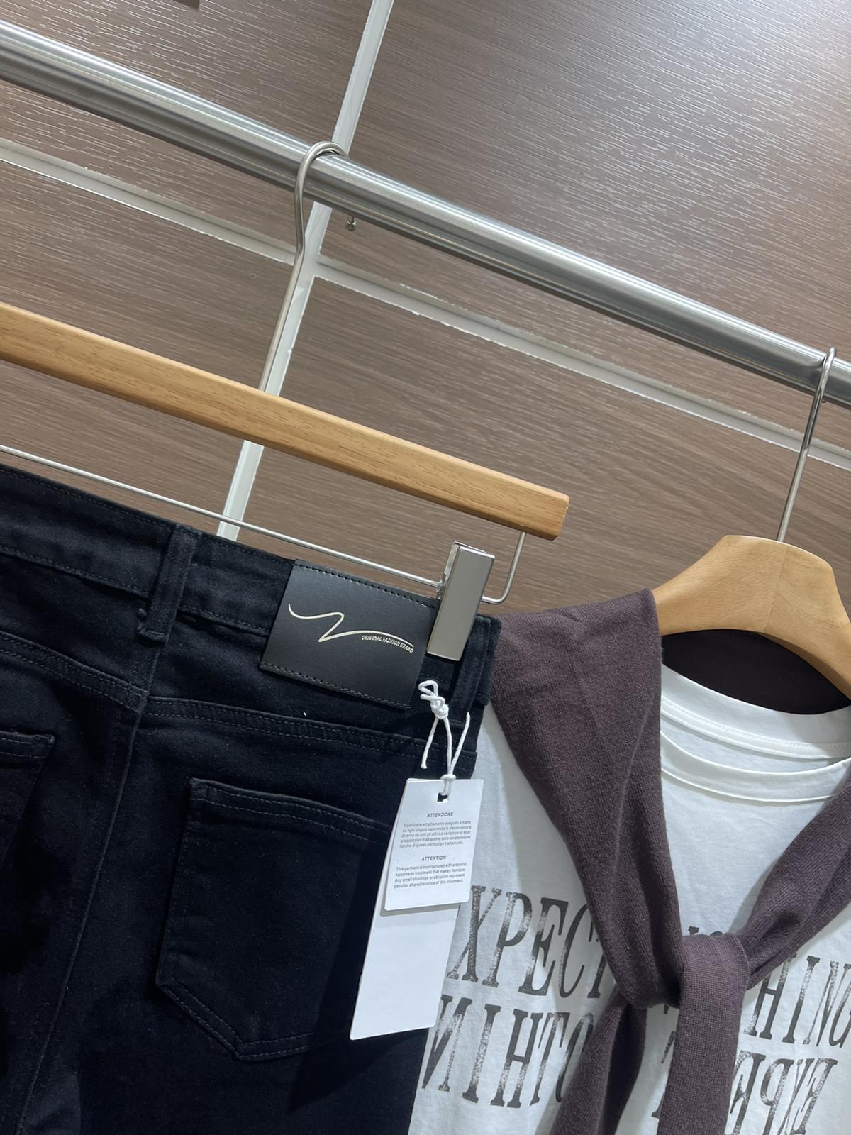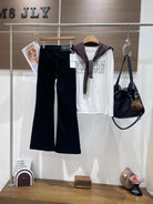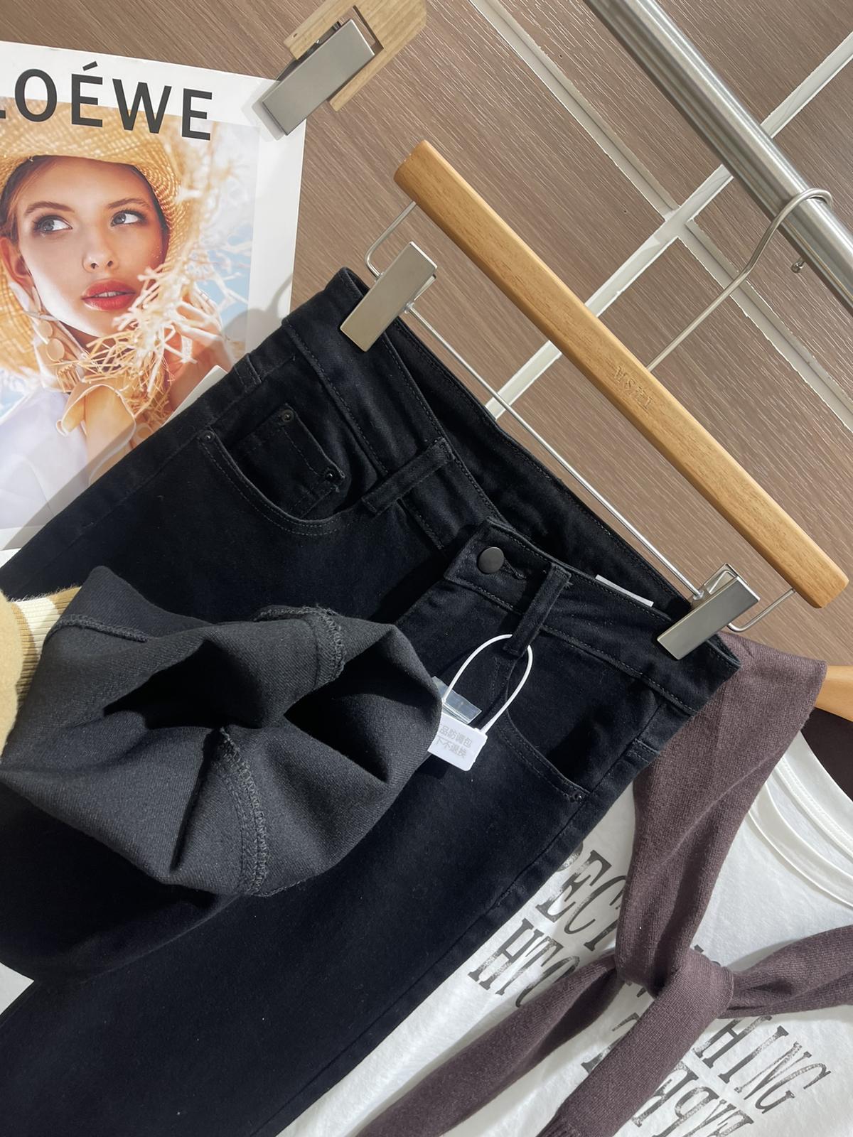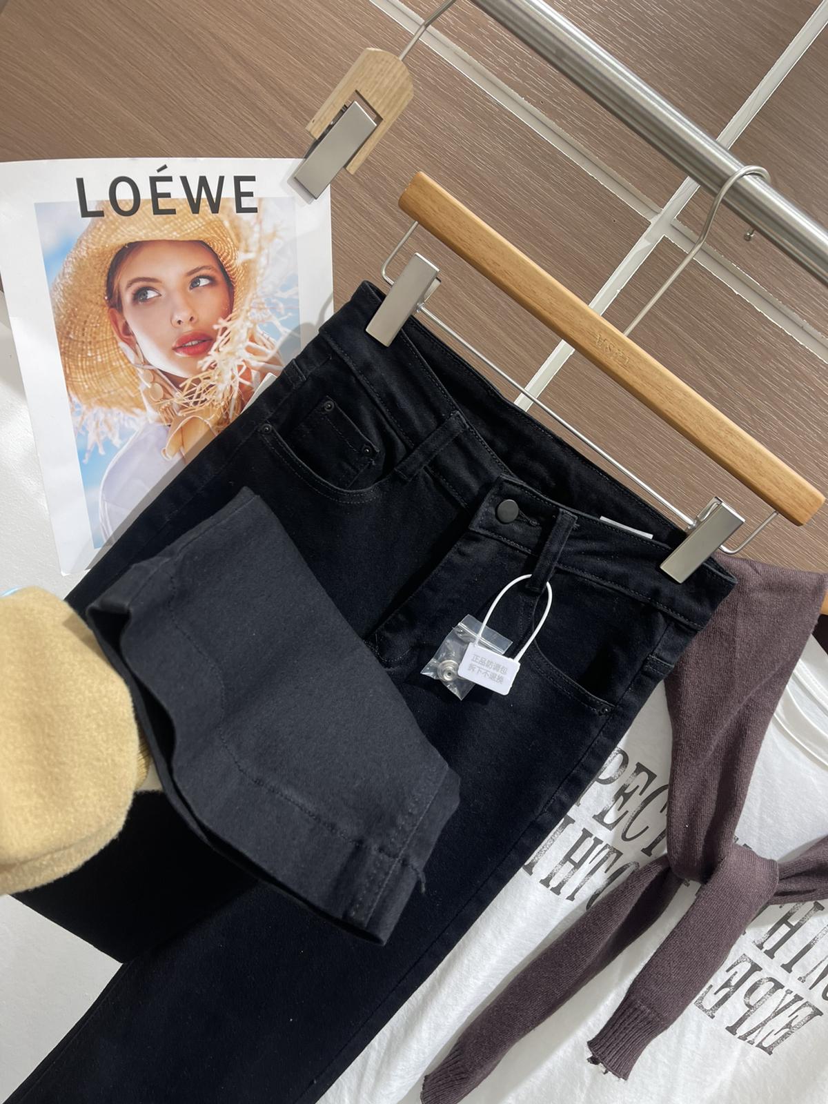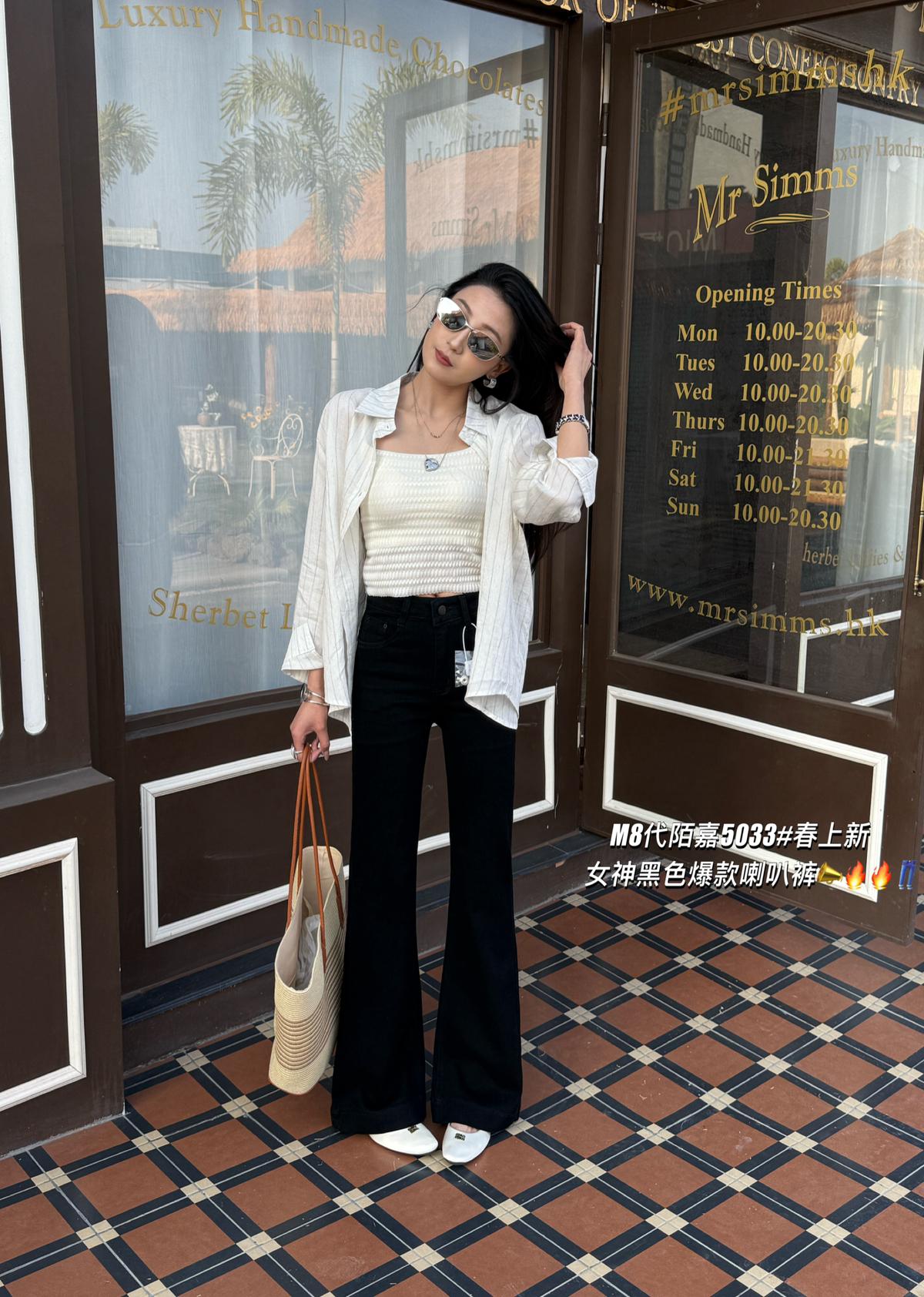 【C8521】春季必備經典簡約百搭黑色彈力修身顯瘦喇叭褲牛仔褲