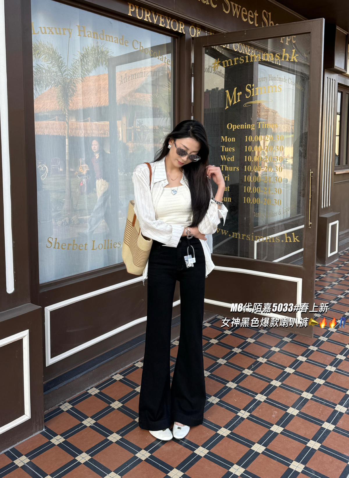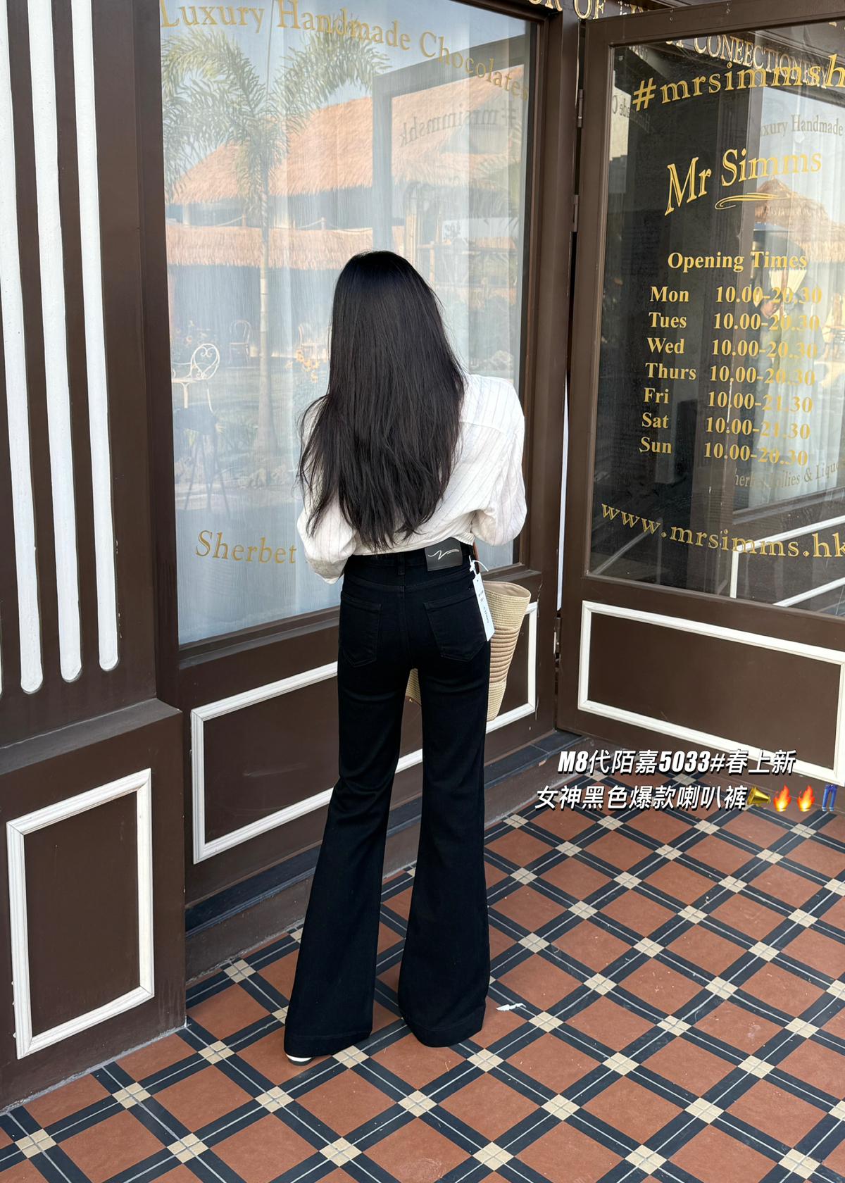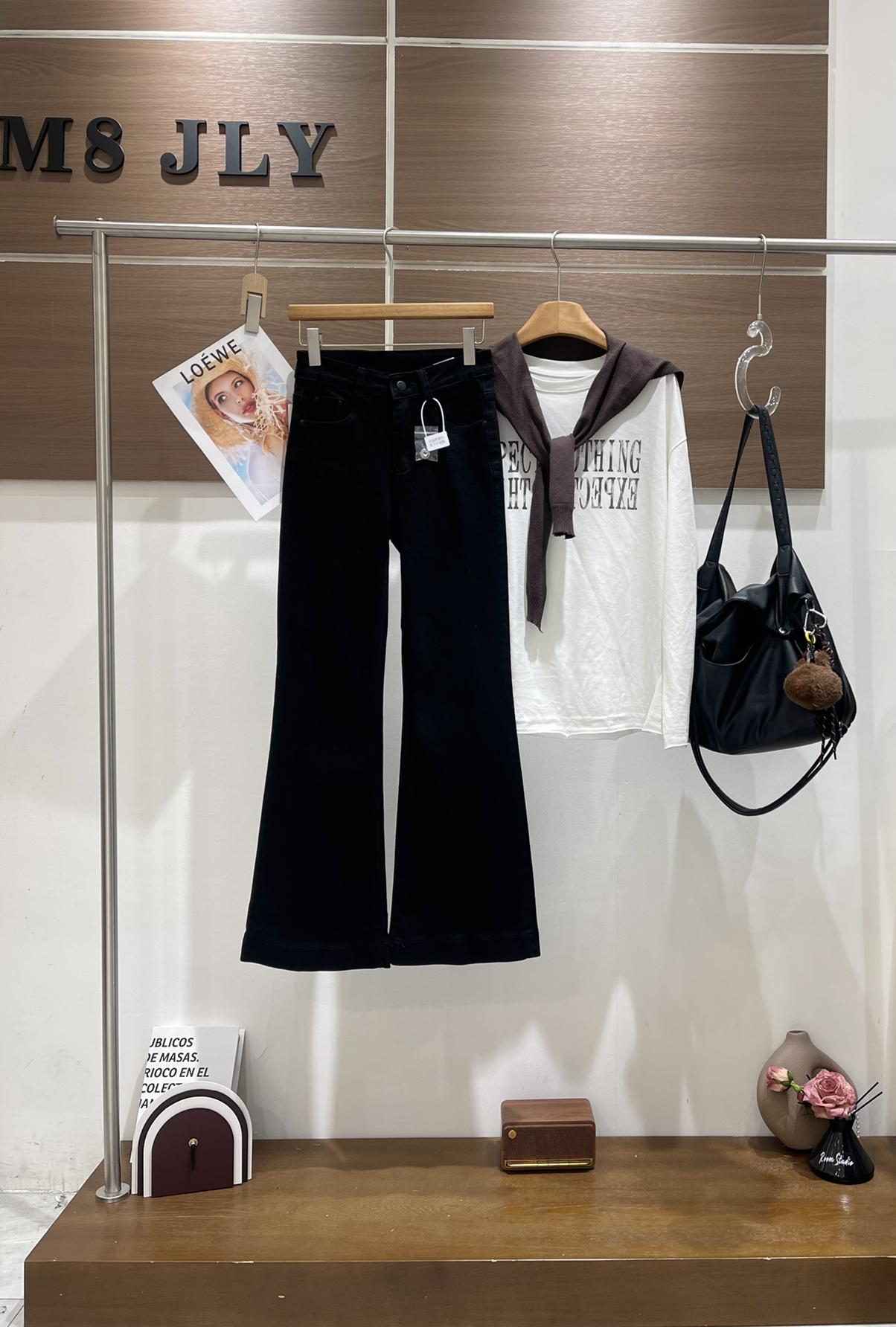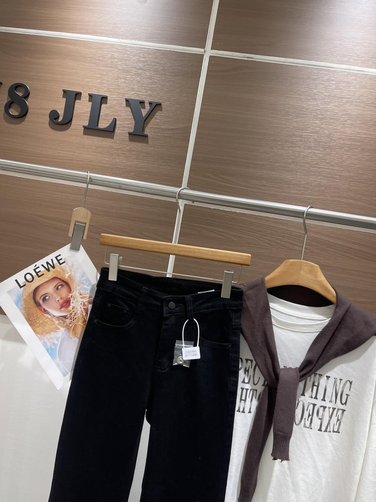 【C8521】春季必備經典簡約百搭黑色彈力修身顯瘦喇叭褲牛仔褲