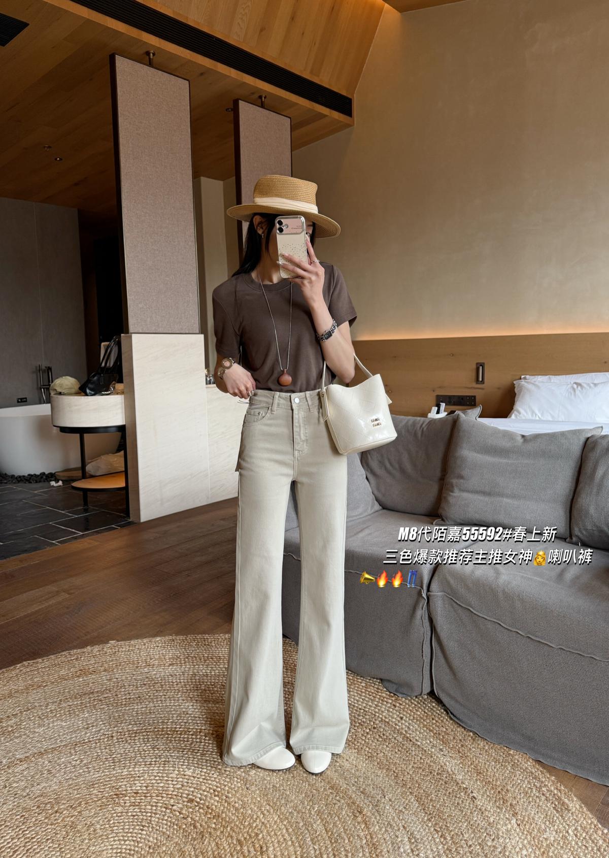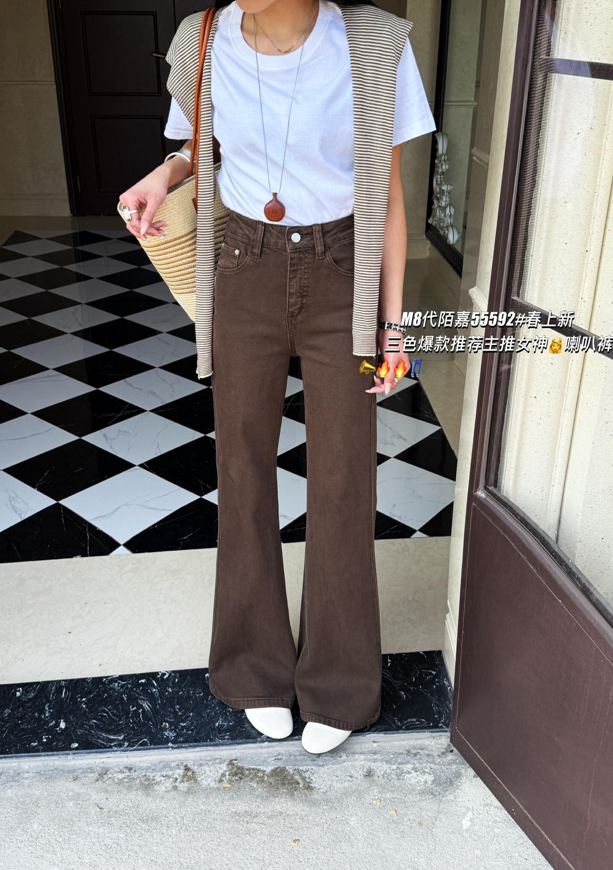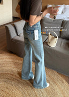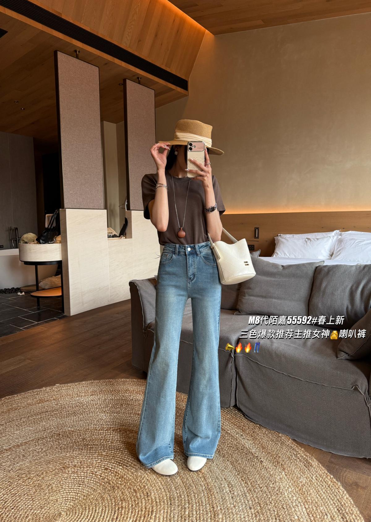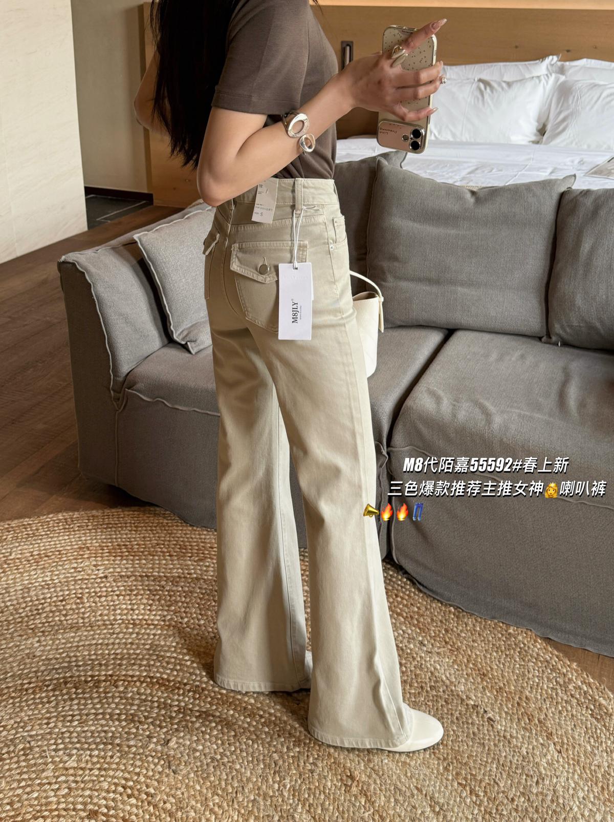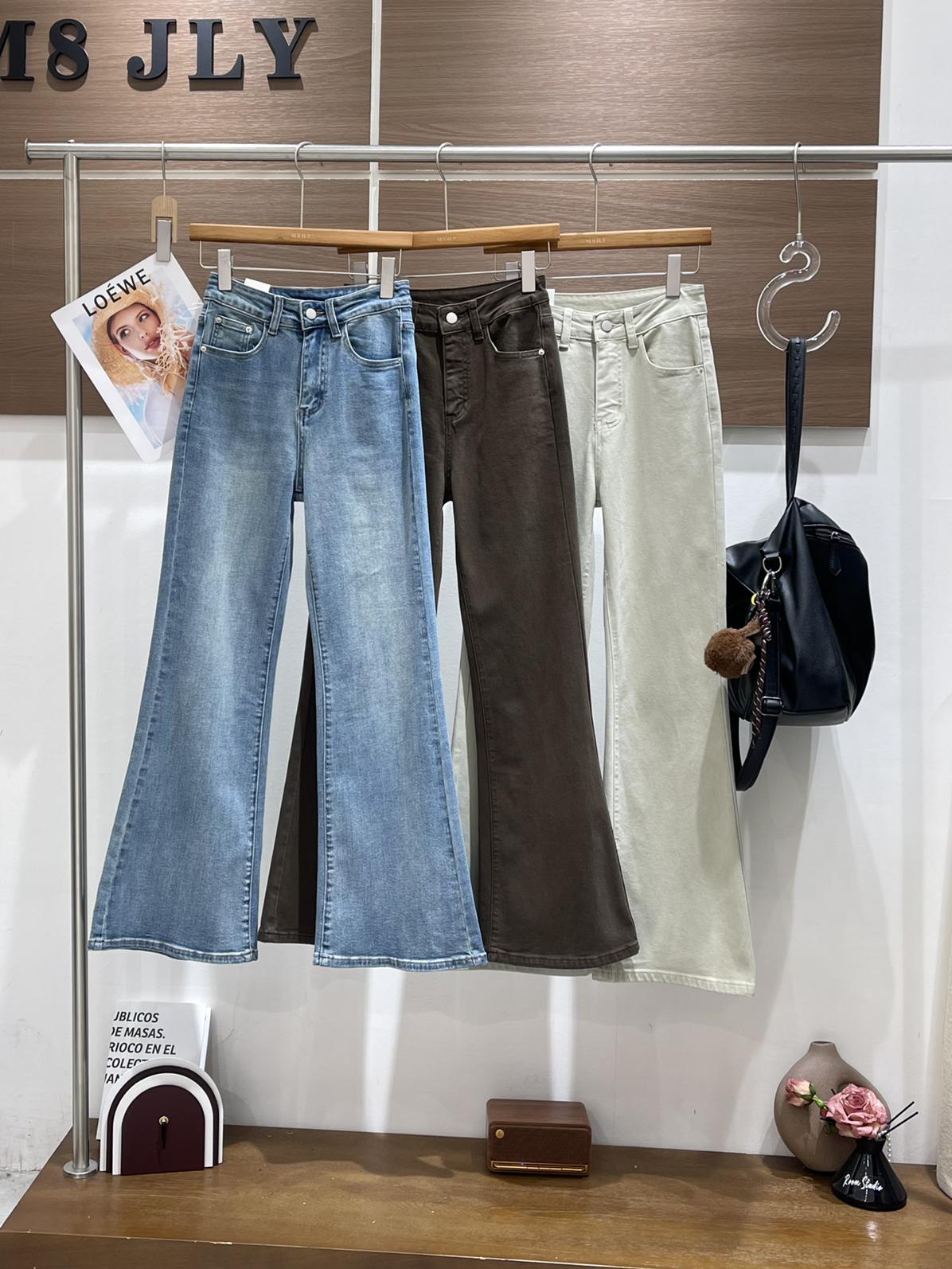 【C8522】春季新款後代蓋時尚提臀效果超讚三色彈力修身喇叭褲牛仔褲