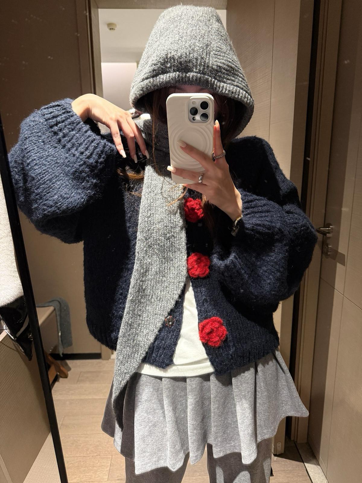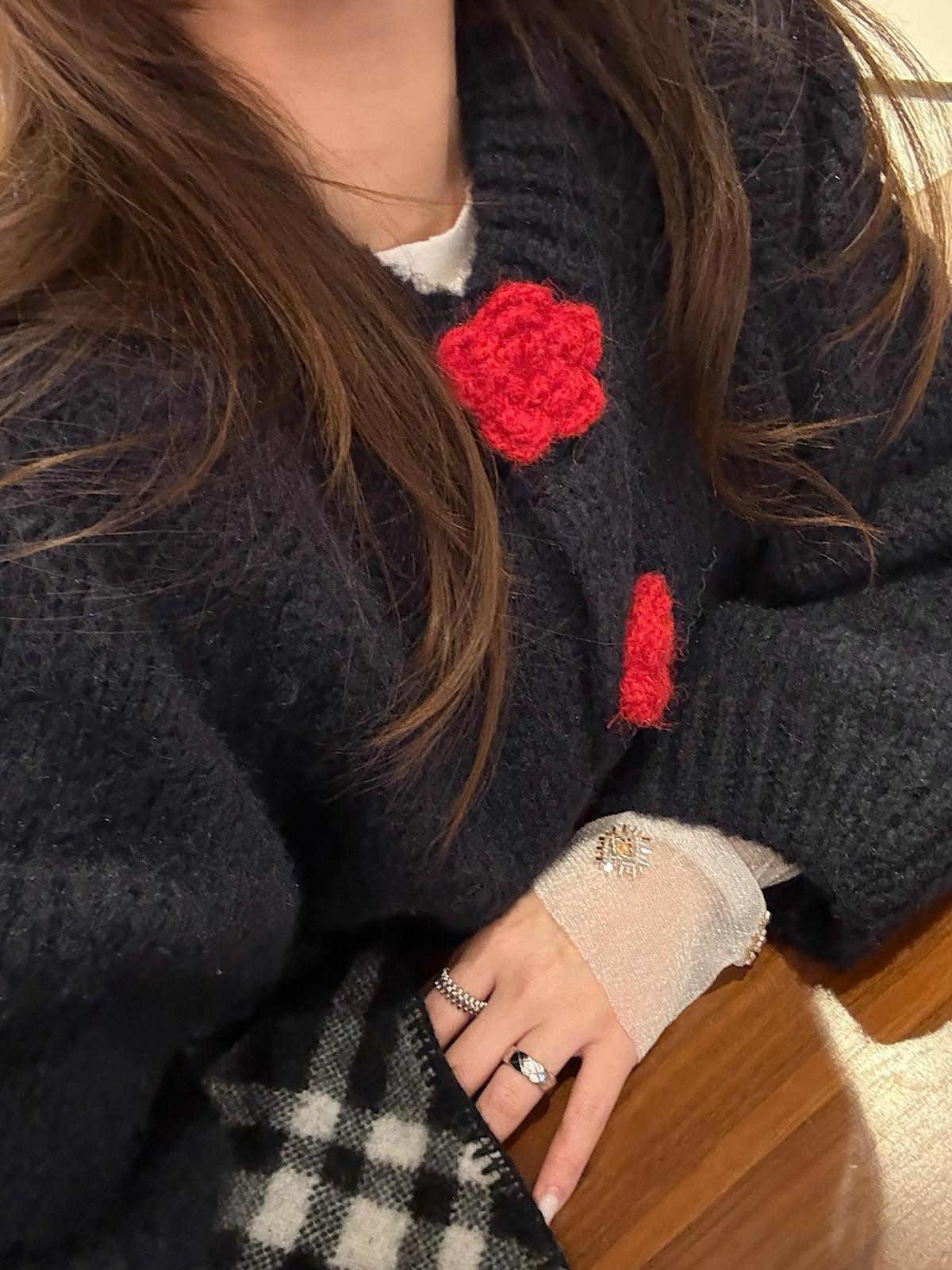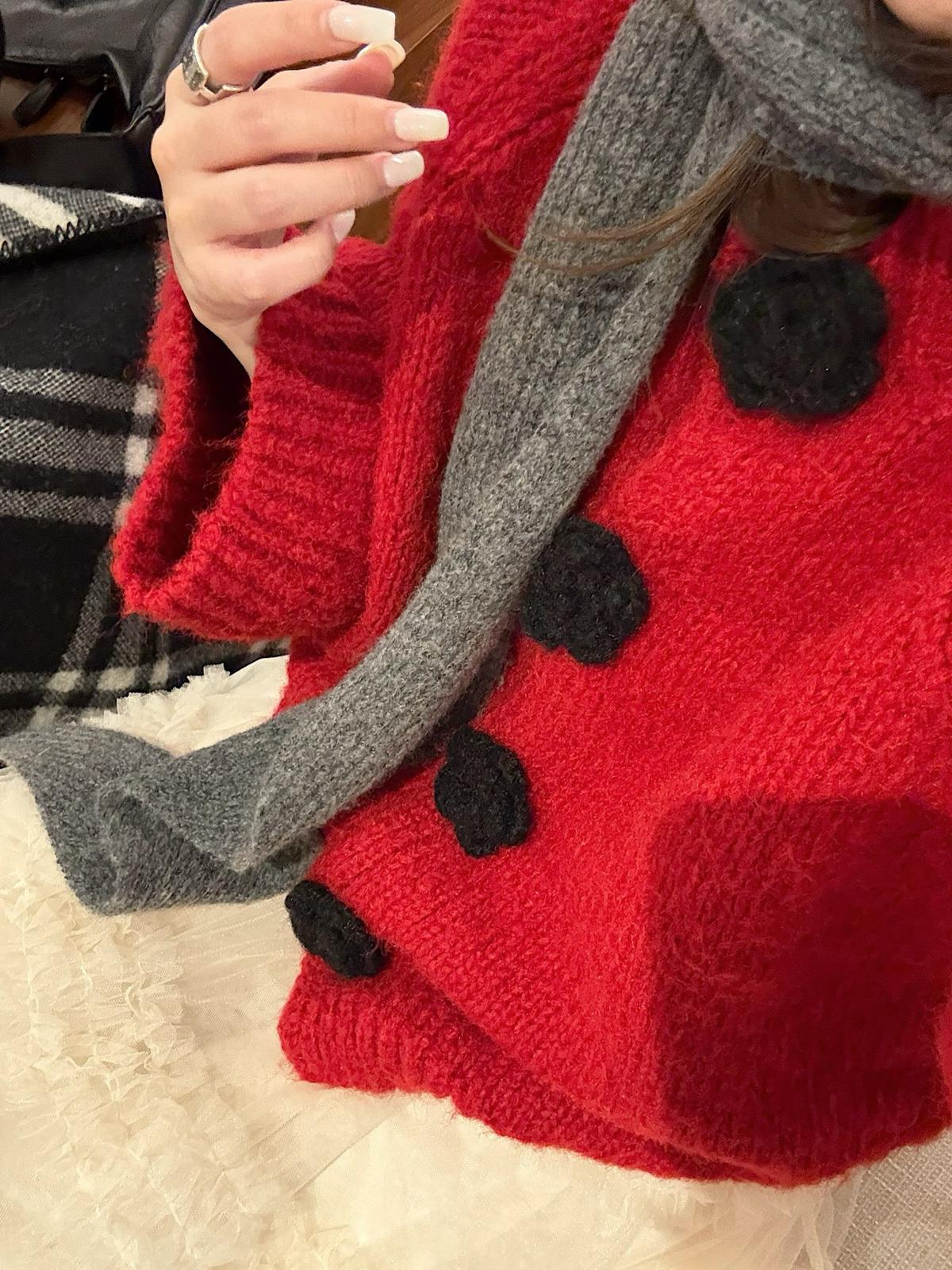 【C8523】大花毛衣新年必入氛圍感毛衣,紅紅火火保暖毛衣(含10%羊毛)