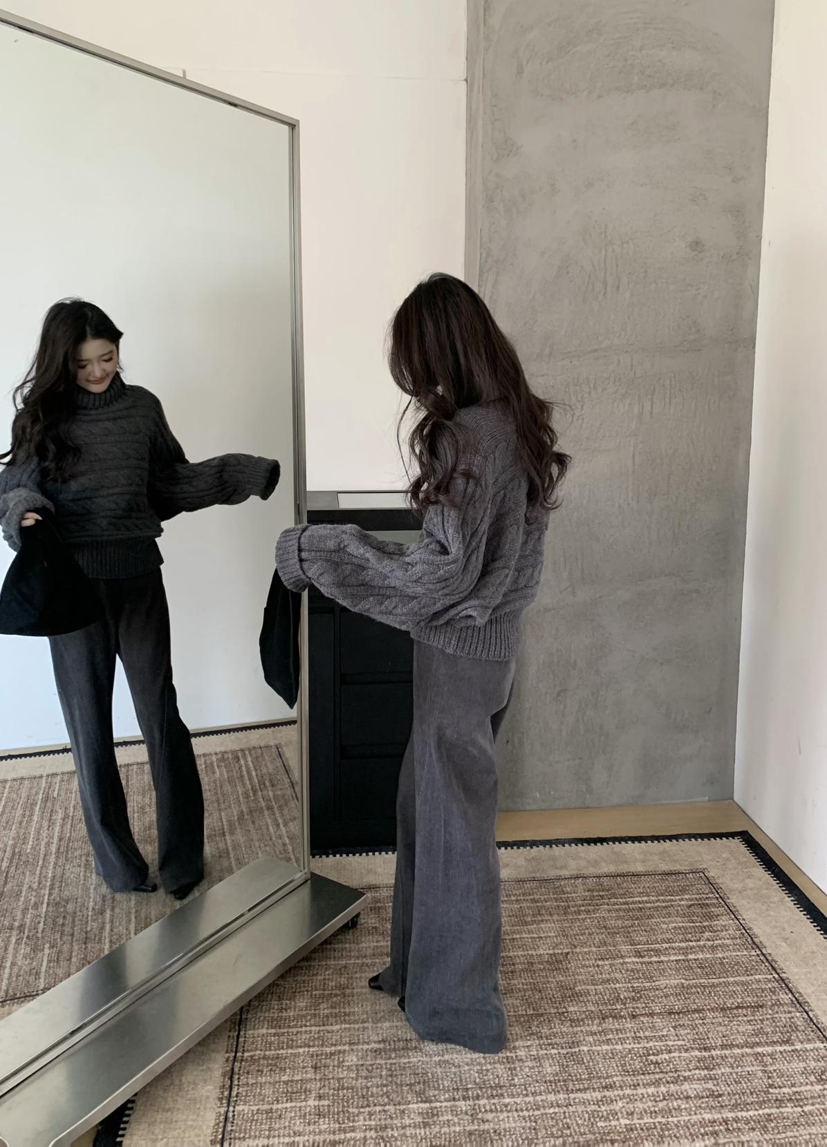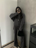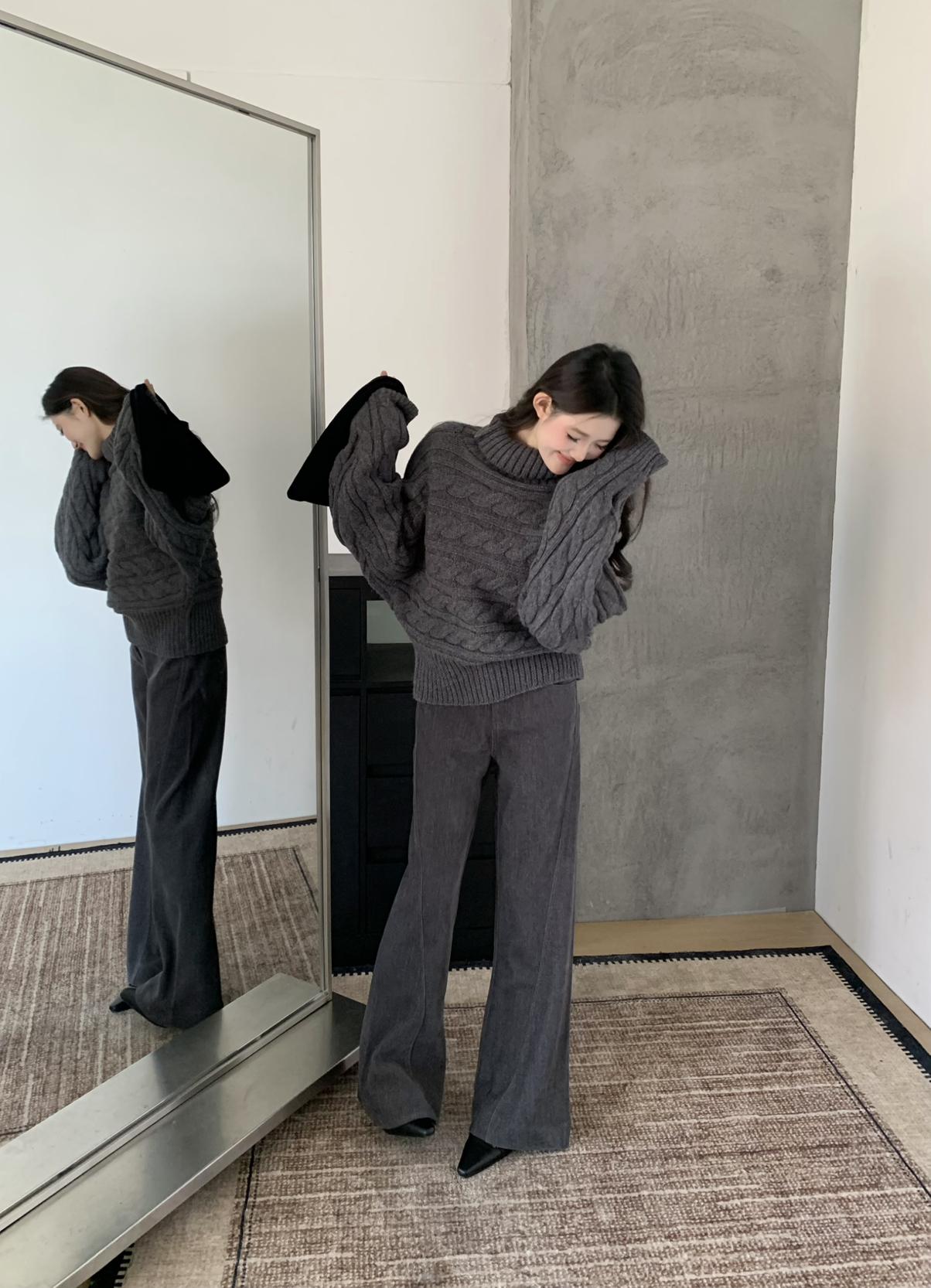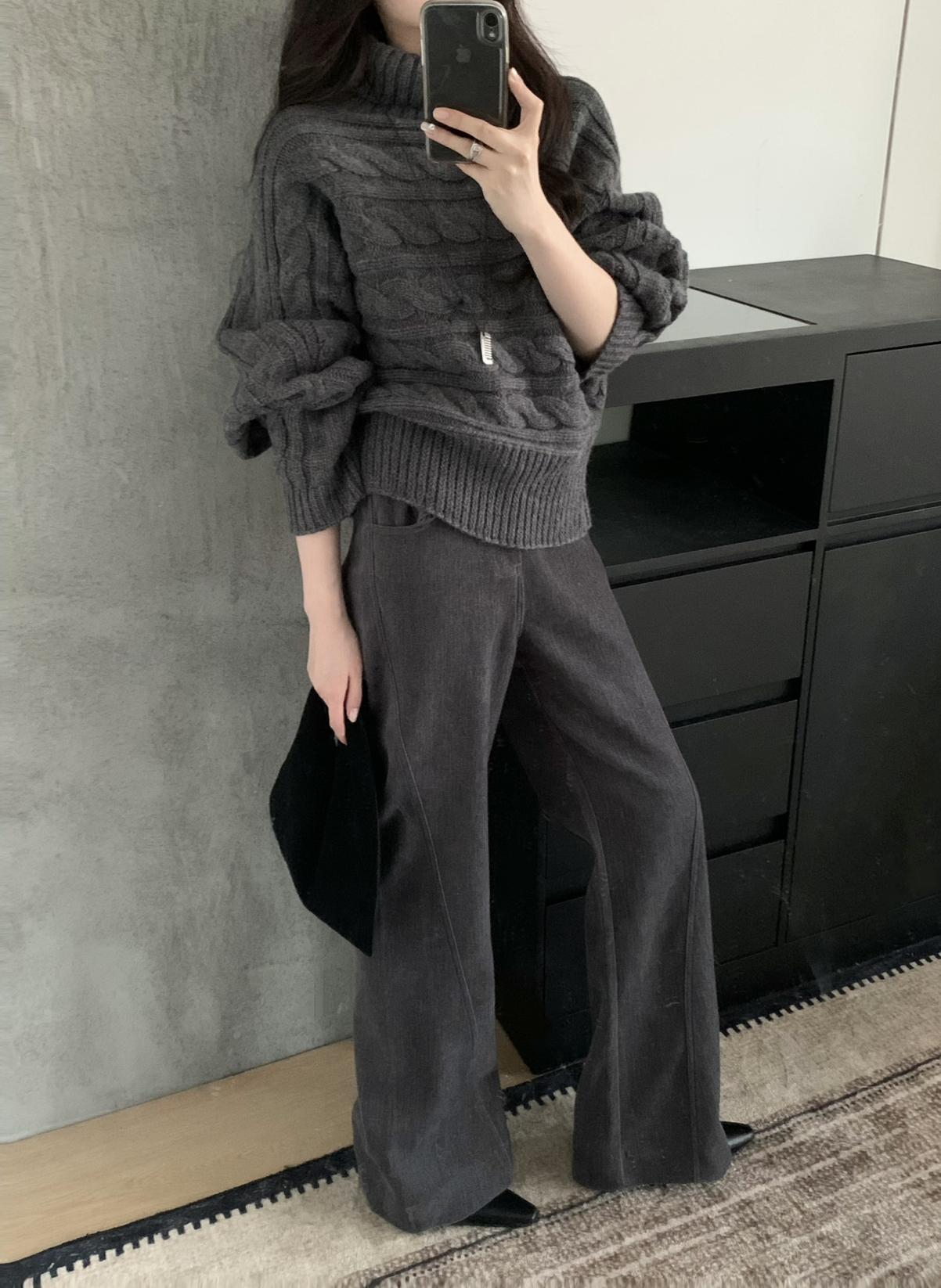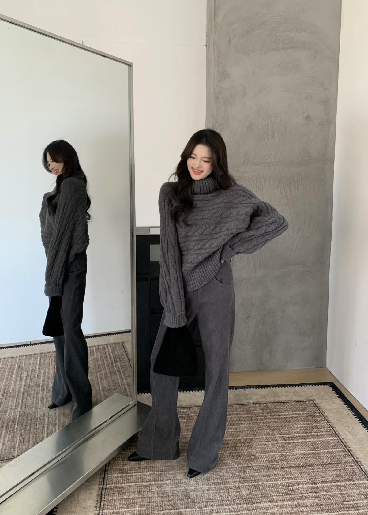 【C8527】女人味顯瘦拉腿長加絨保暖氣質款喇叭褲休閒褲