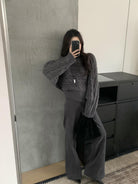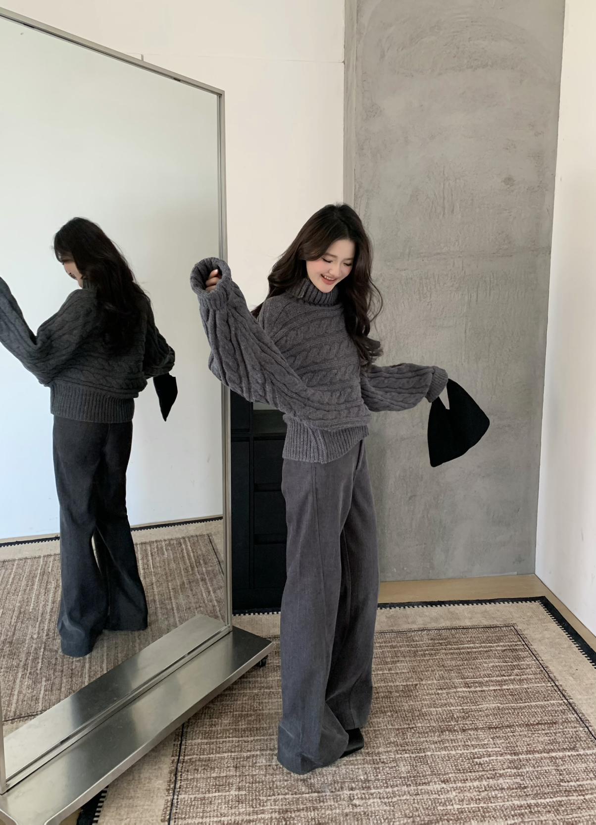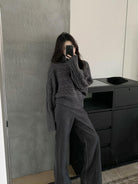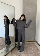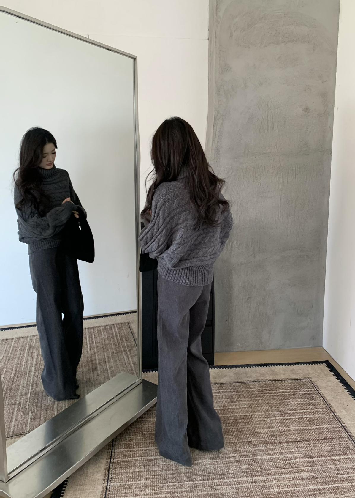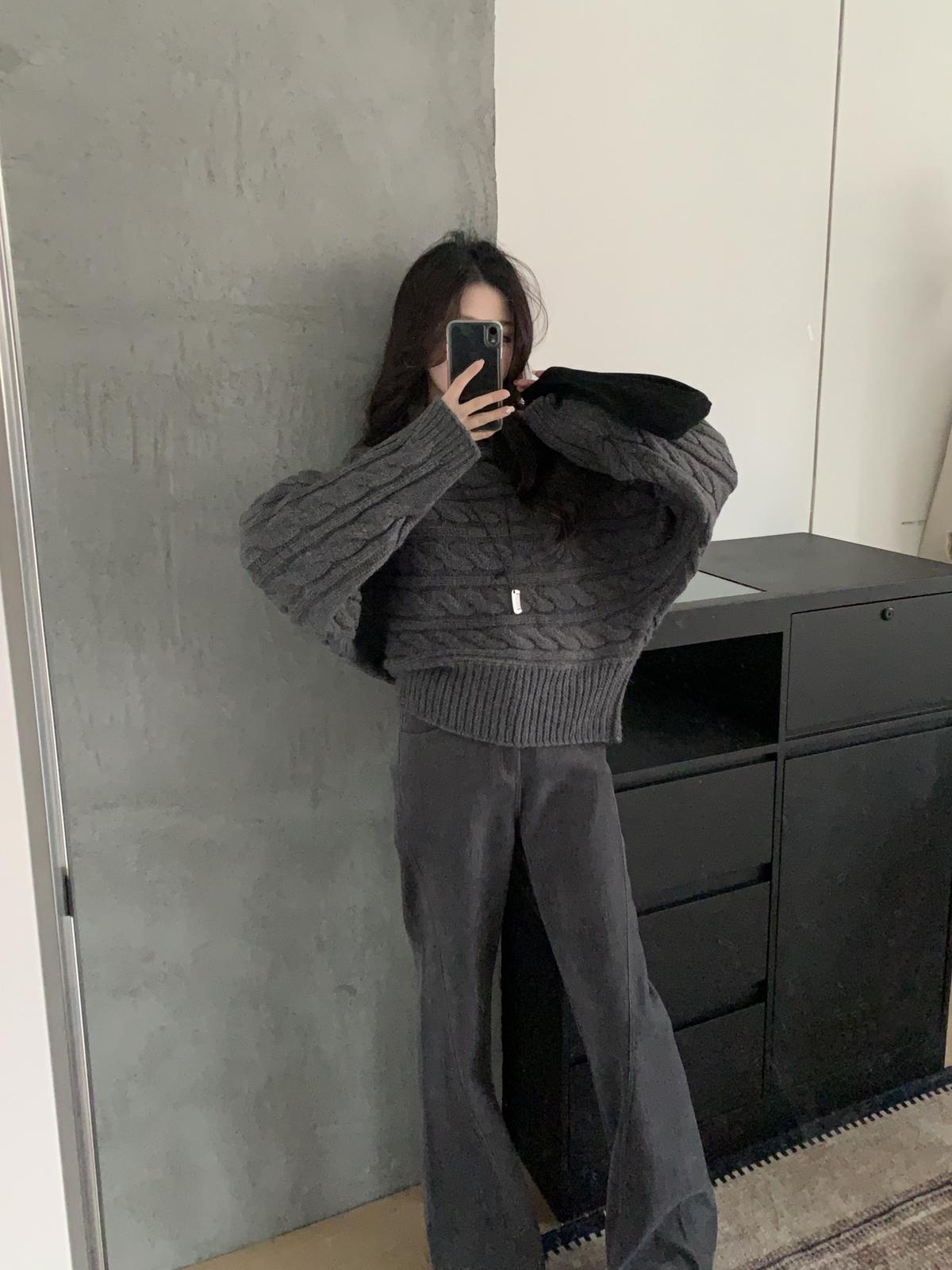 【C8527】女人味顯瘦拉腿長加絨保暖氣質款喇叭褲休閒褲