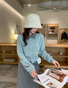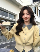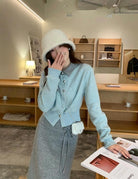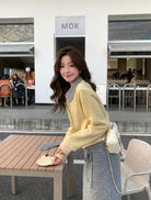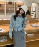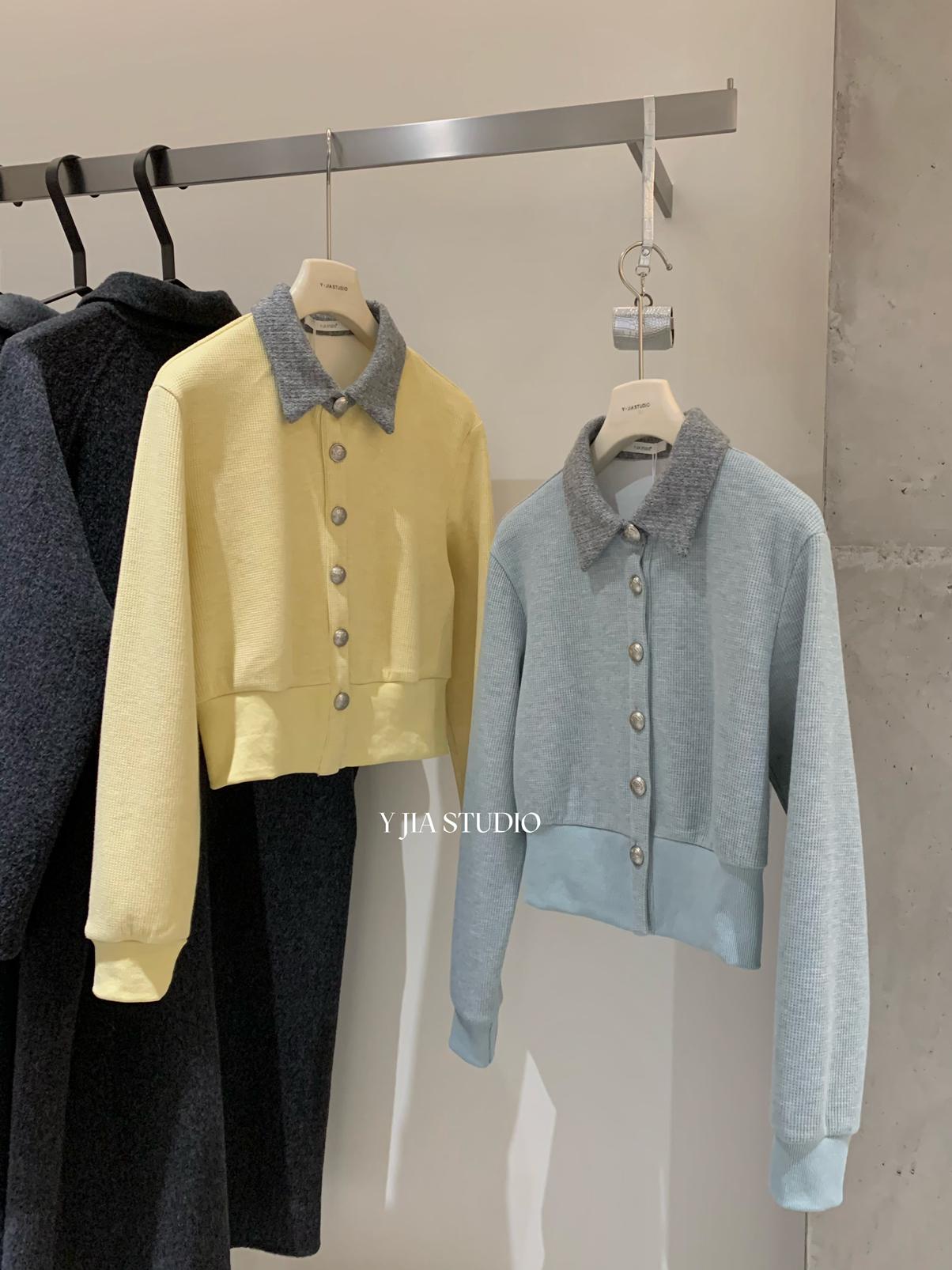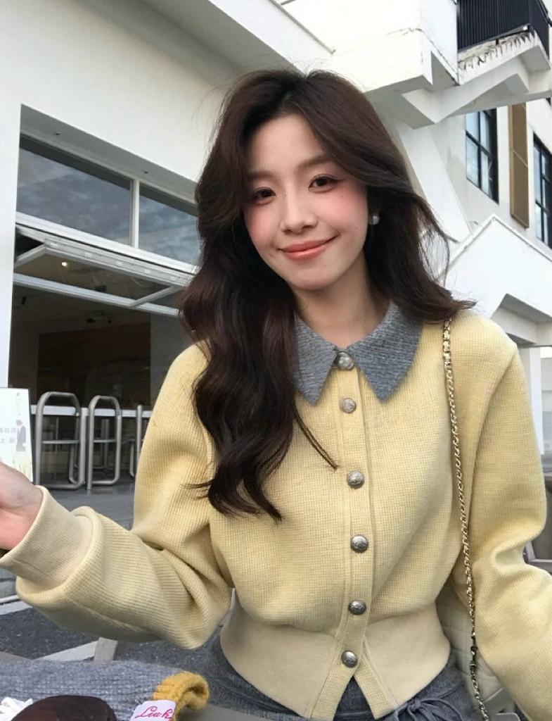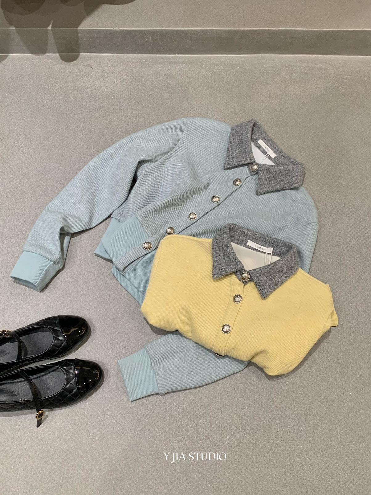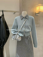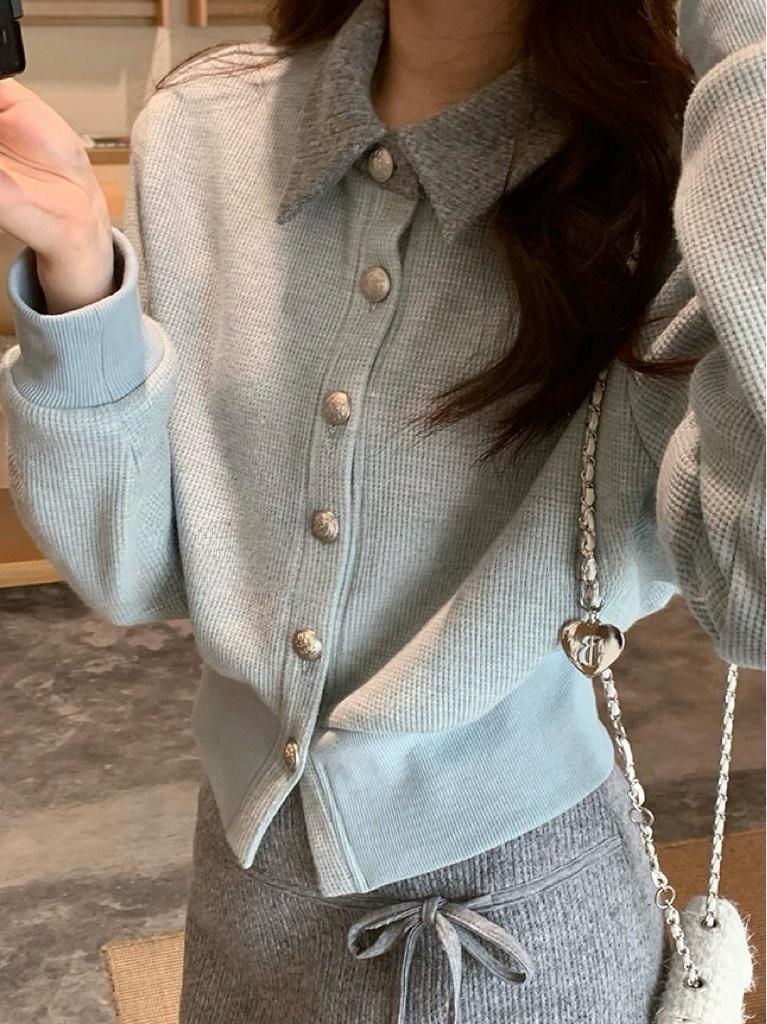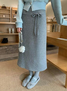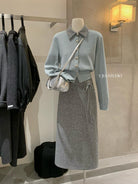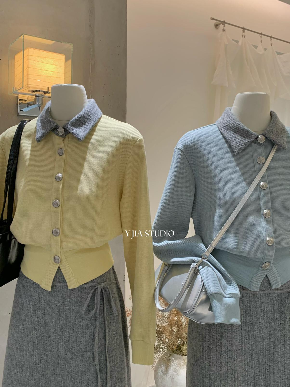 【C8530】“江南美人”高智感撞色假兩件針織開衫+設計感綁帶蝴蝶結半身裙套裝