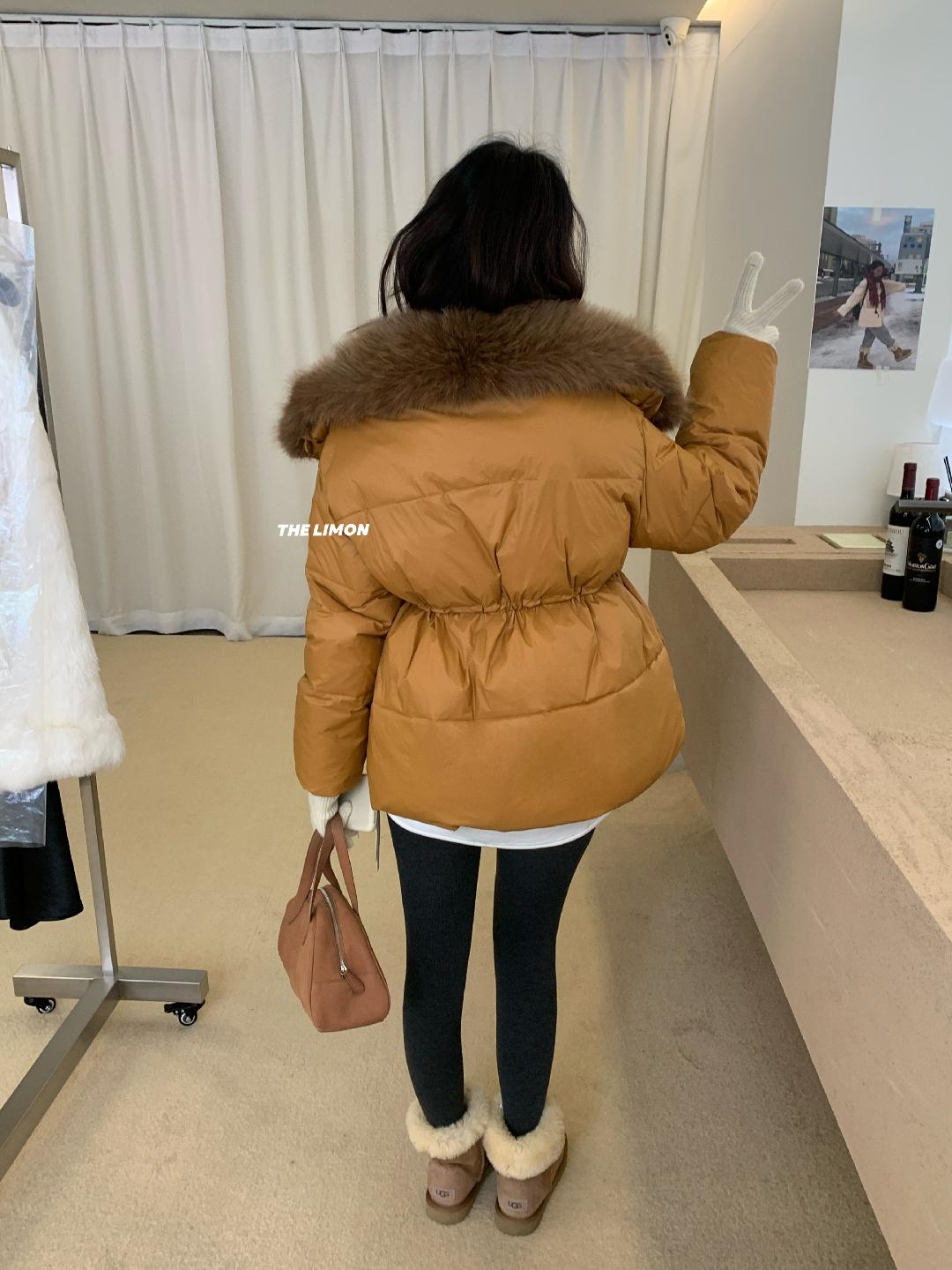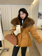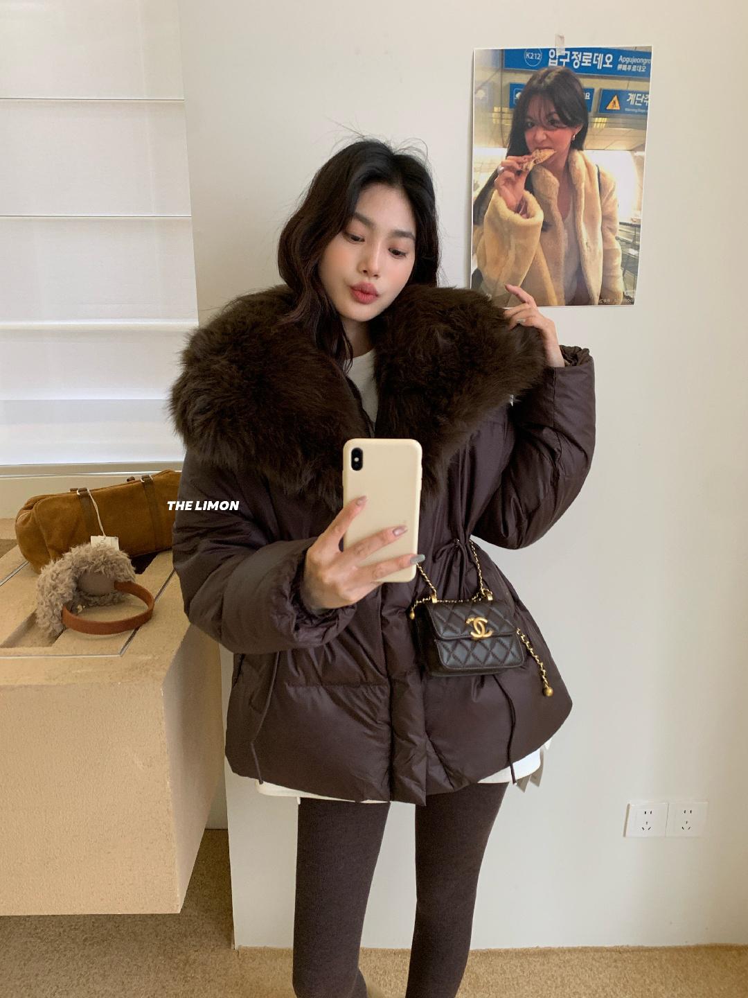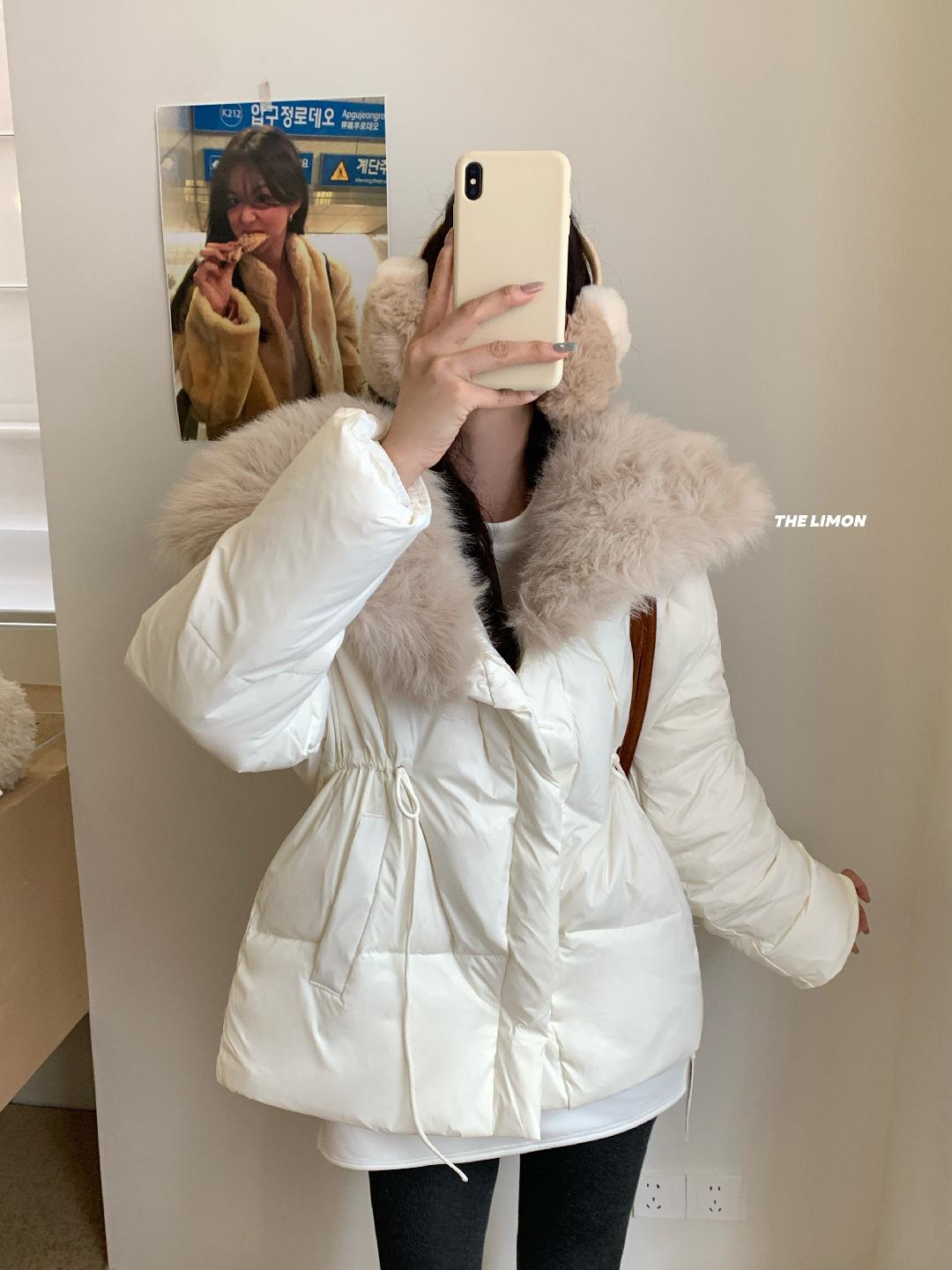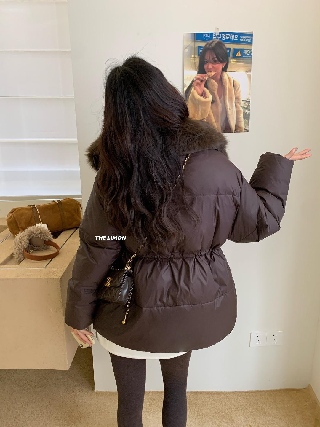 【C8531】抽繩收腰設計感寬鬆百搭保暖棉服外套(配可拆卸毛領)