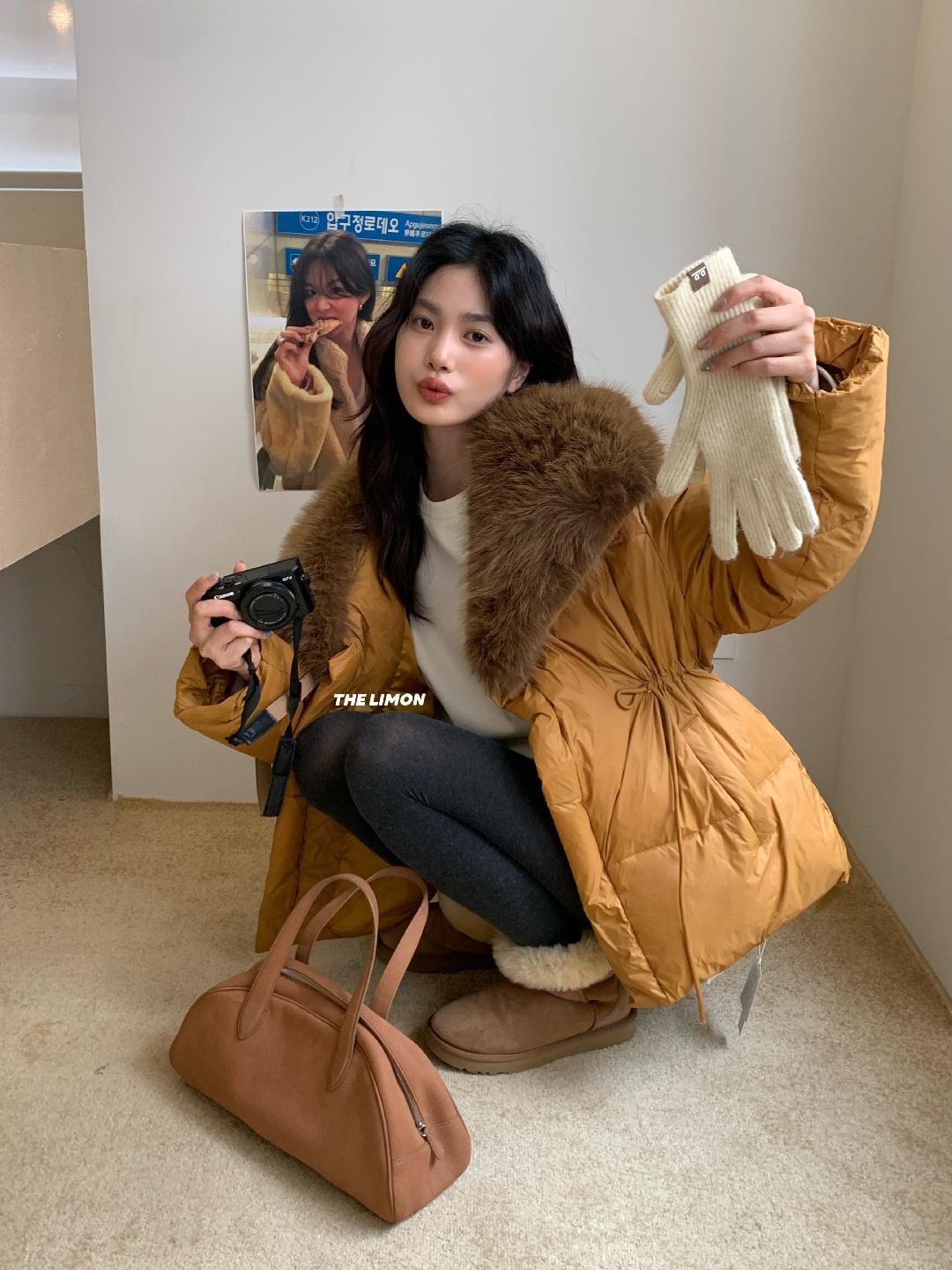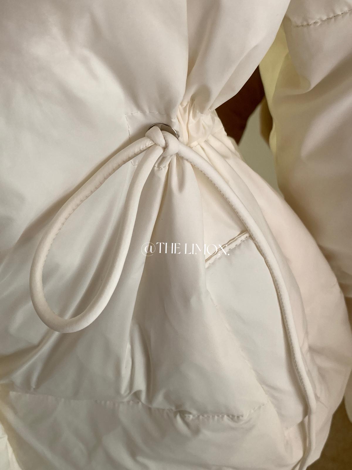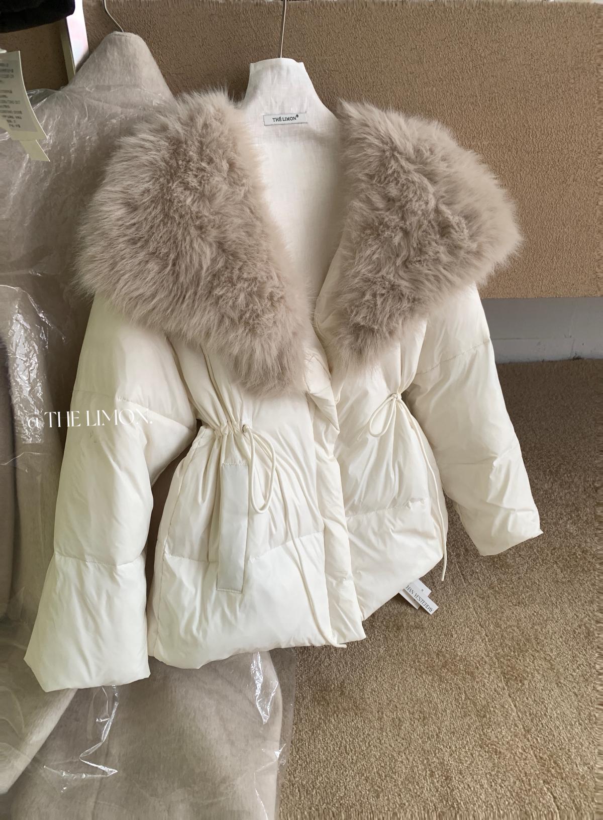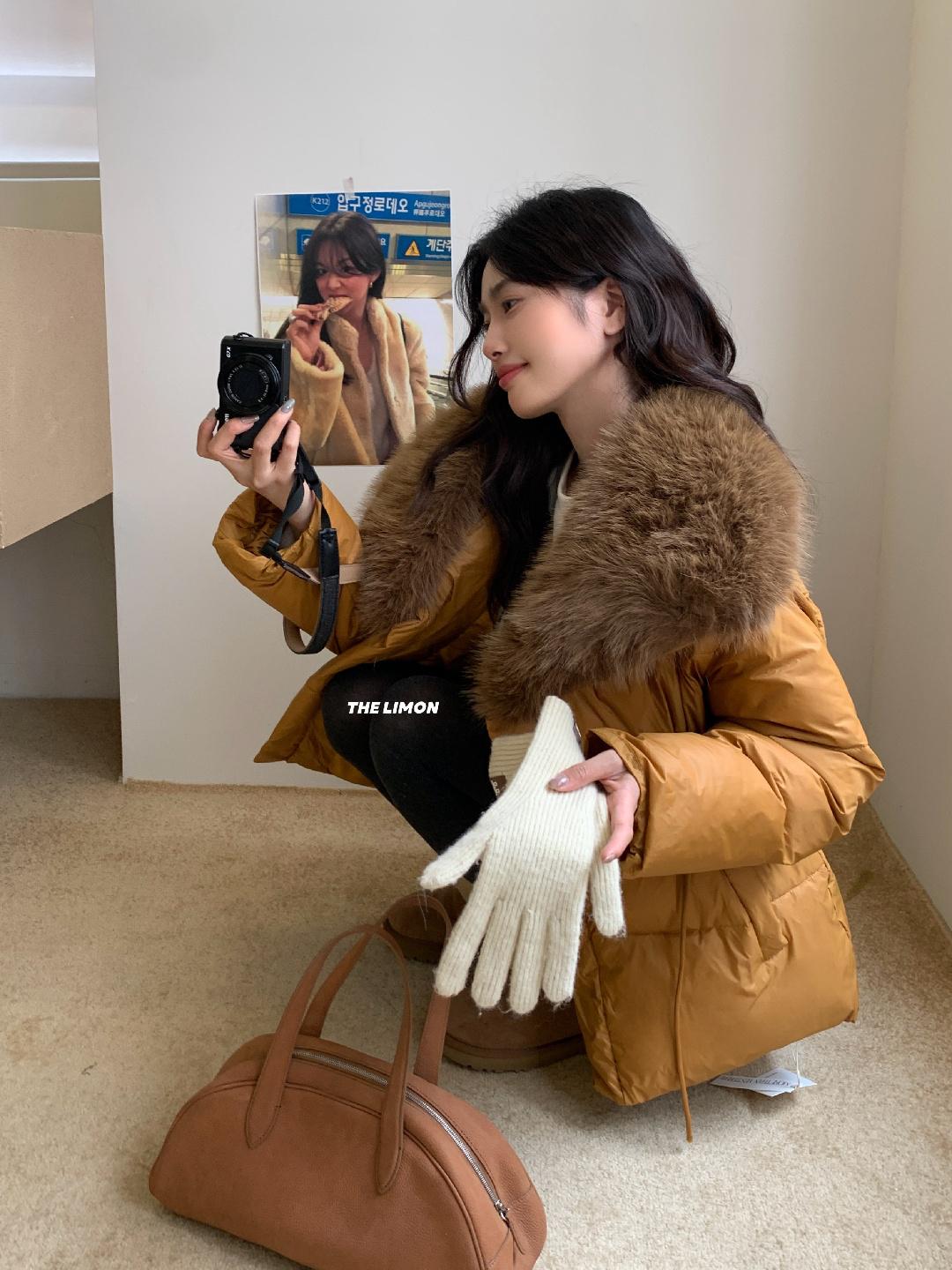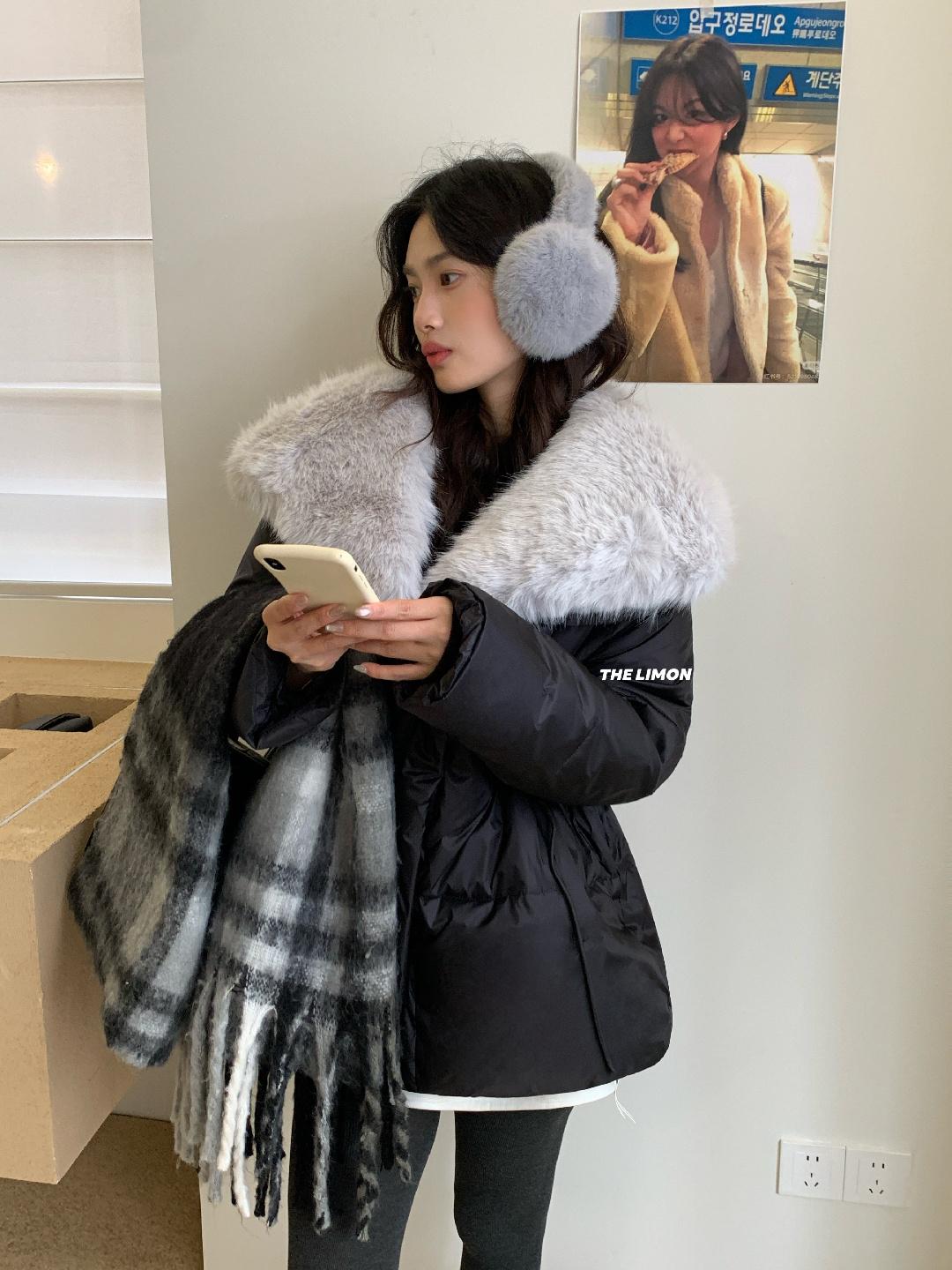 【C8531】抽繩收腰設計感寬鬆百搭保暖棉服外套(配可拆卸毛領)