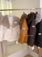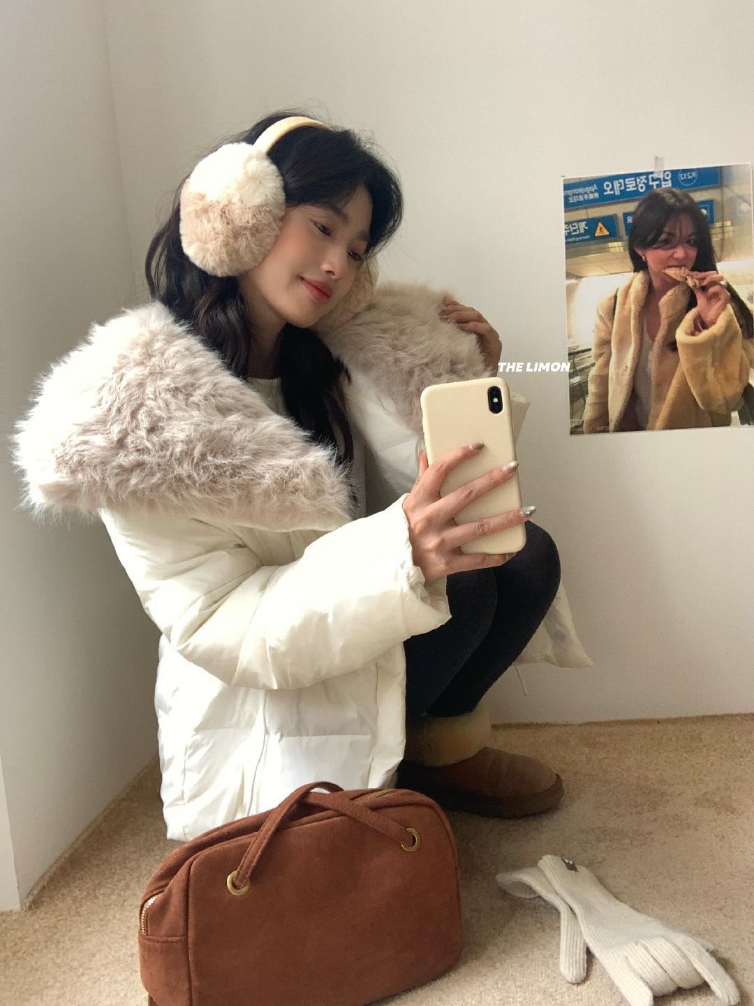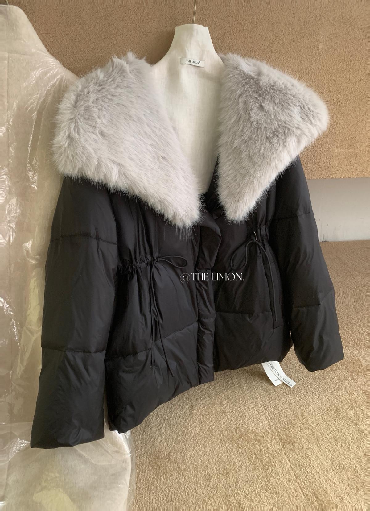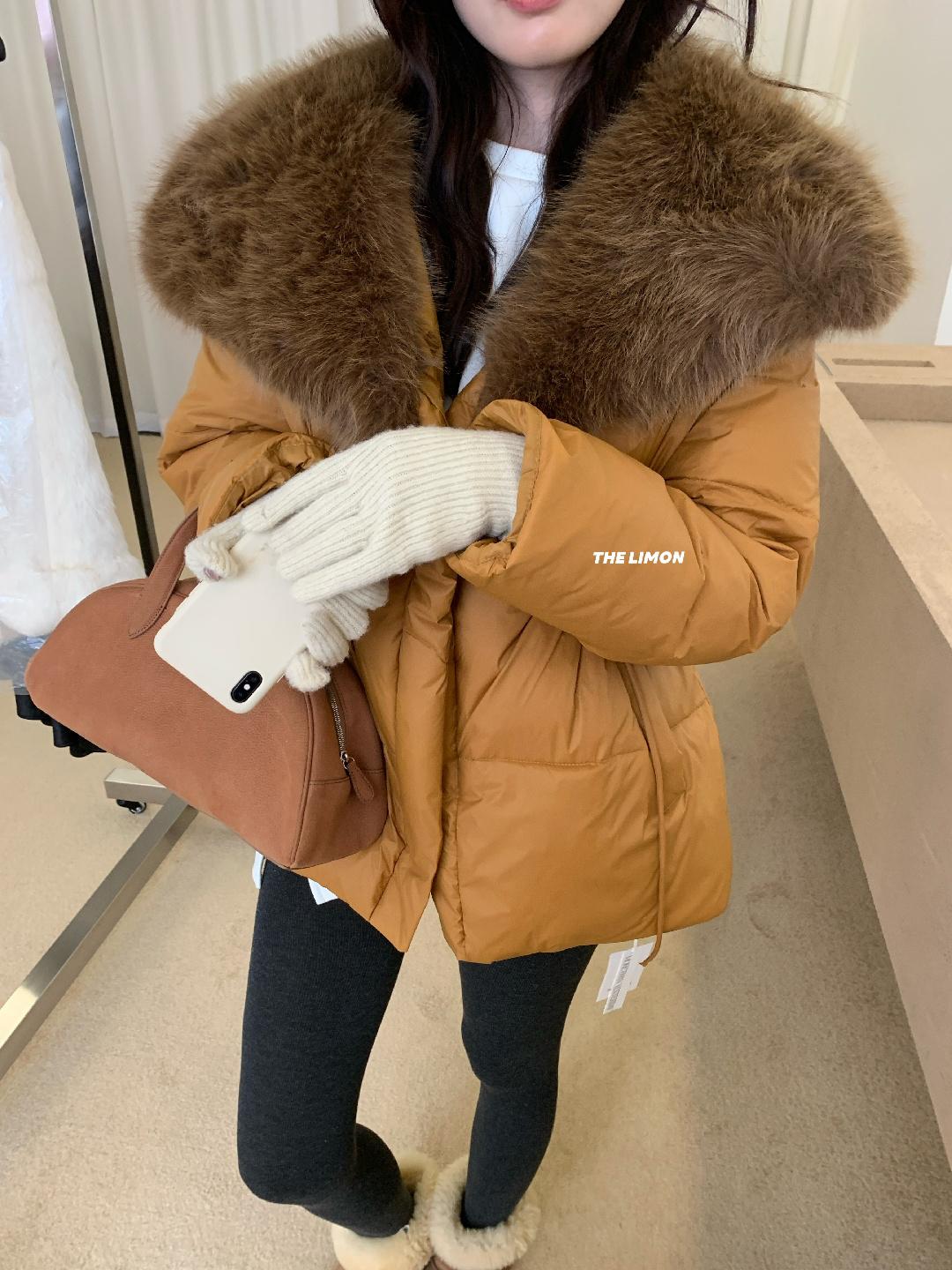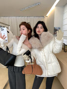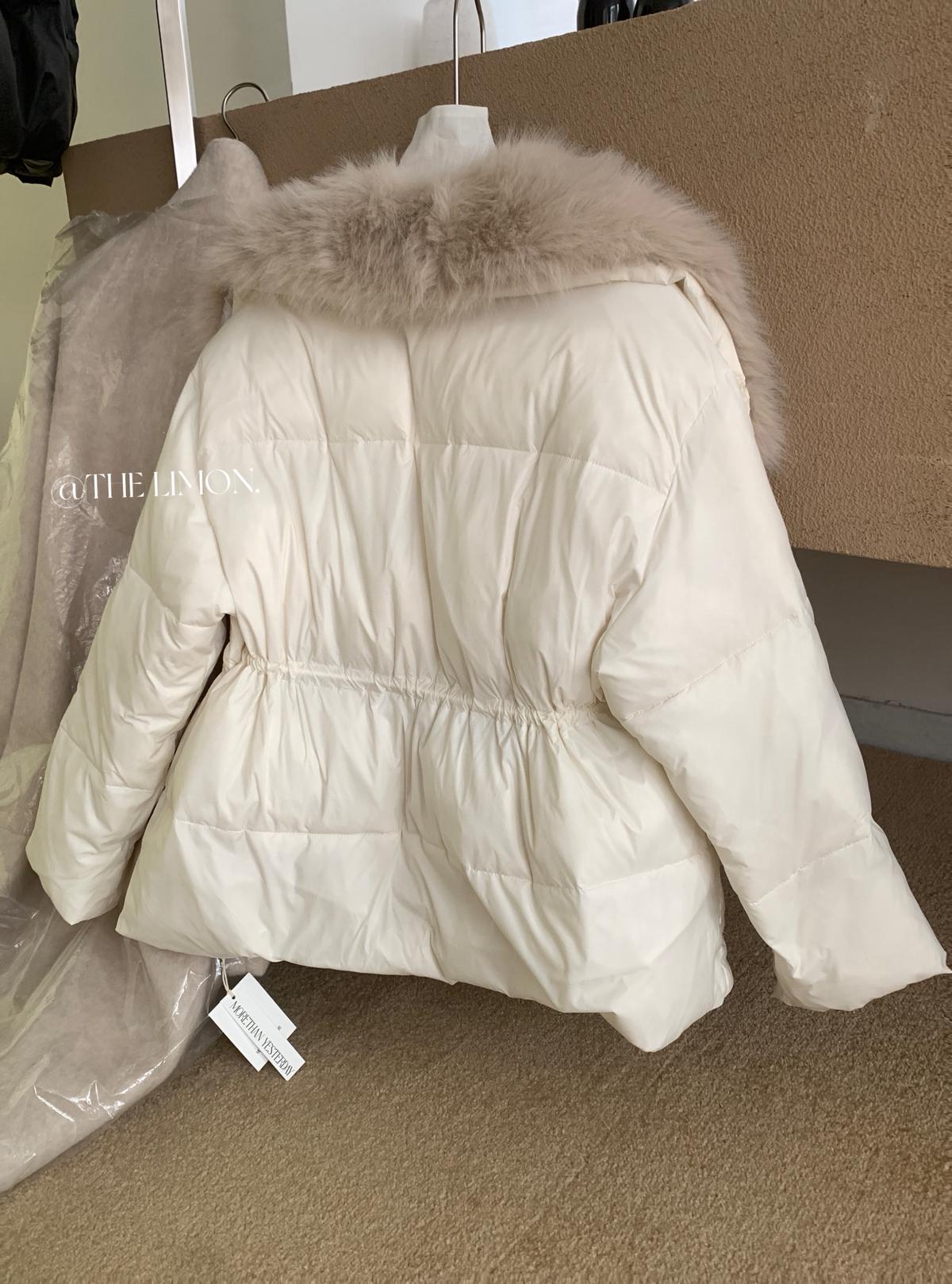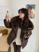 【C8531】抽繩收腰設計感寬鬆百搭保暖棉服外套(配可拆卸毛領)