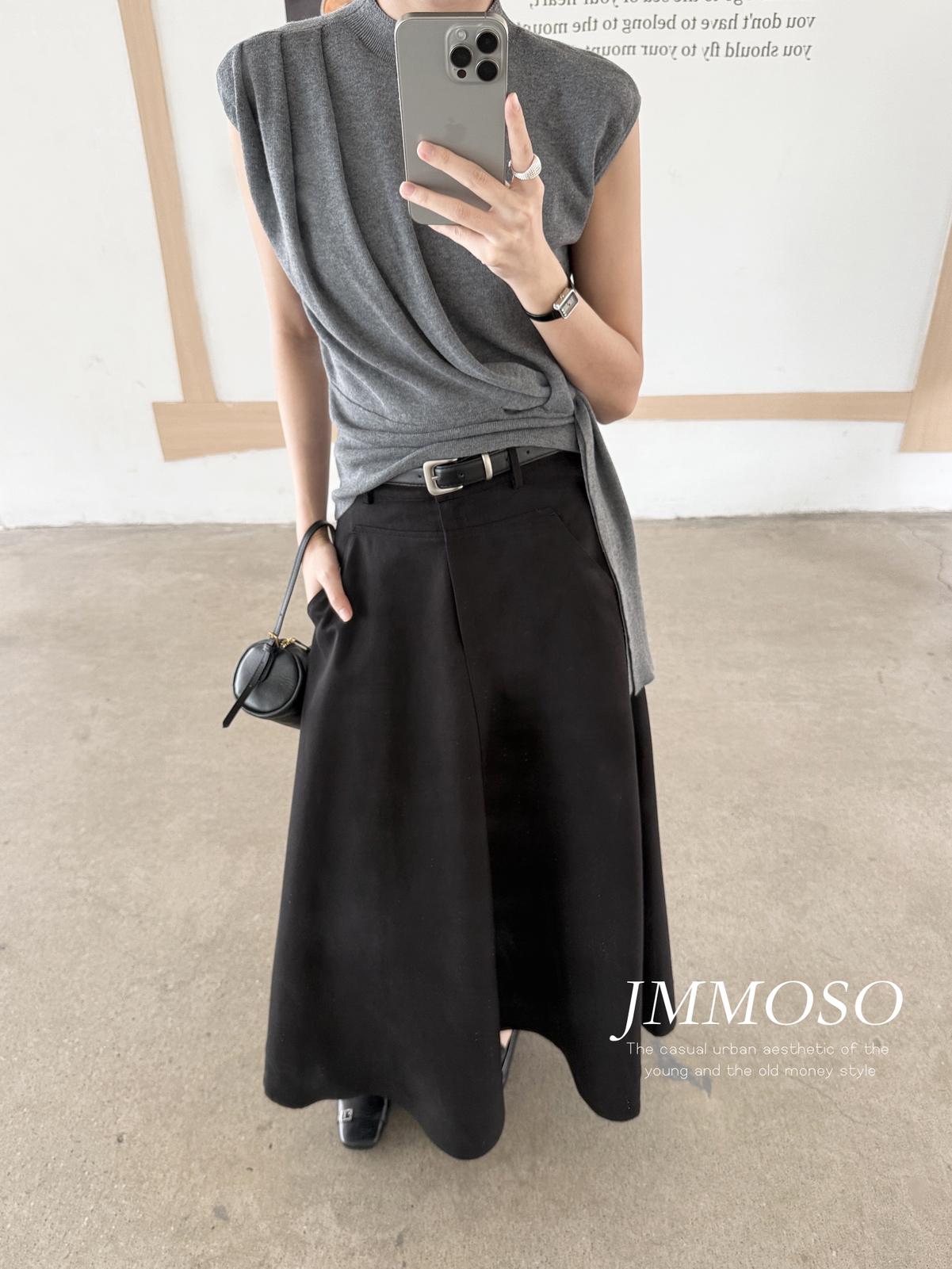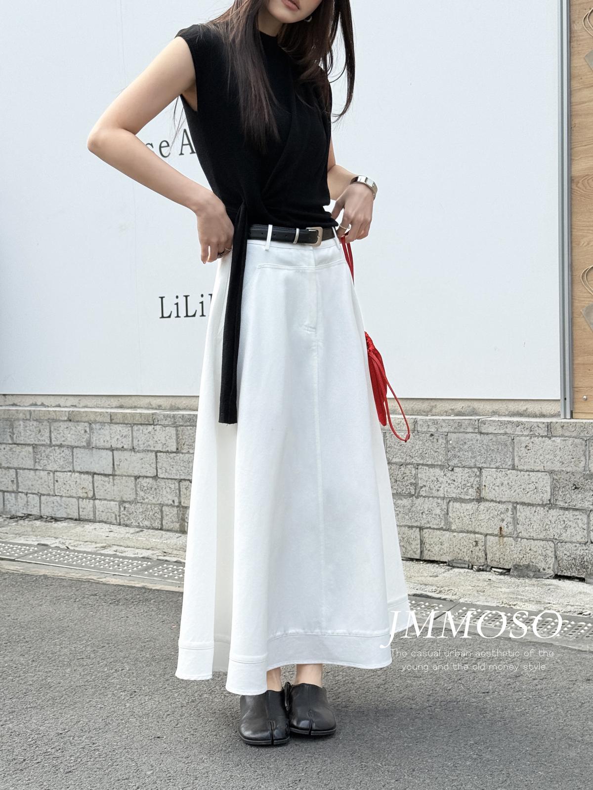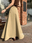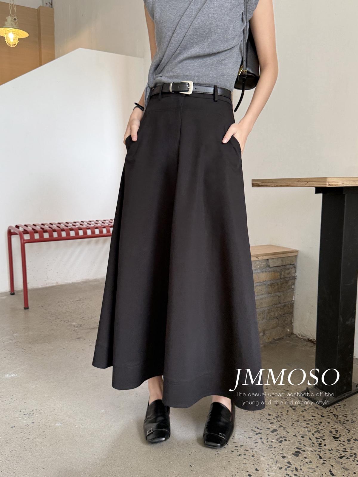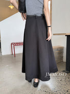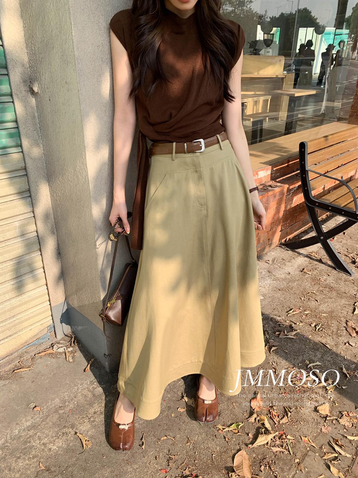 【C8548】韓版高級簡約通勤氣質高腰拼接口袋顯瘦大擺傘裙半身裙