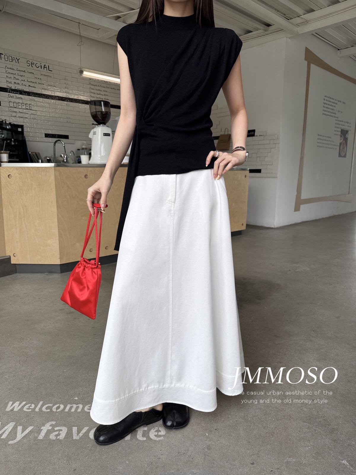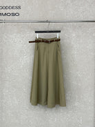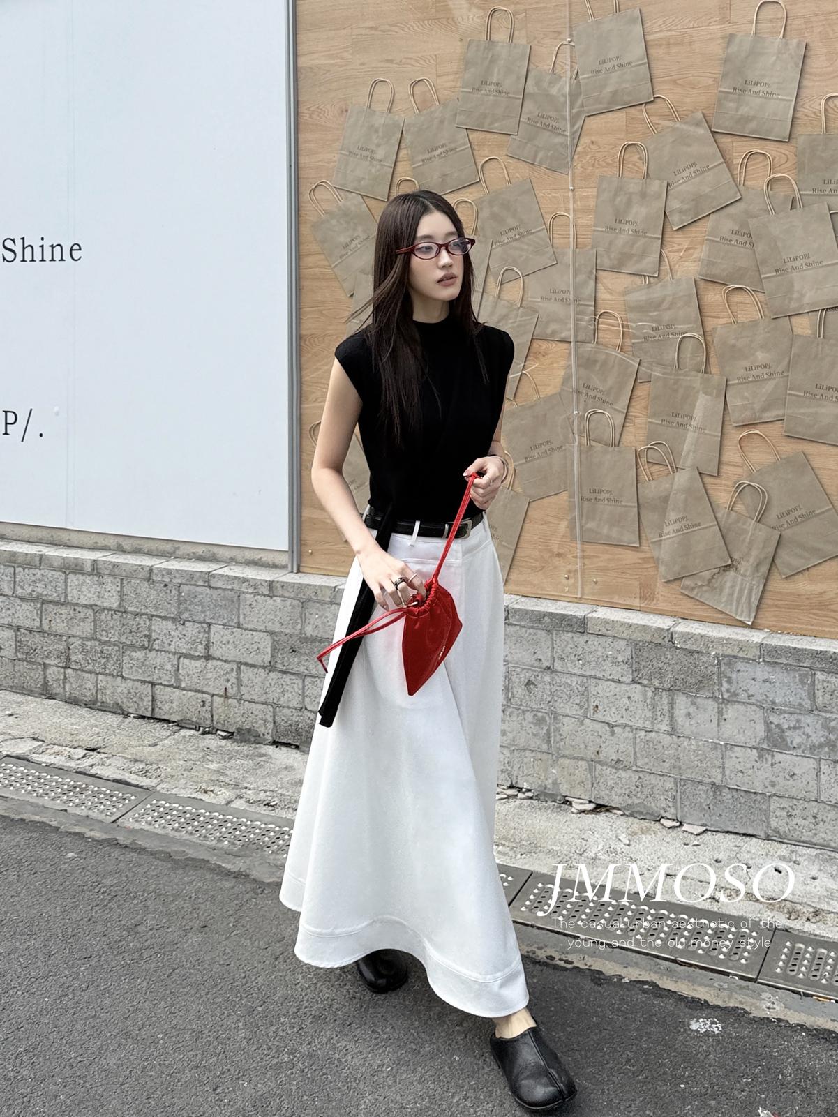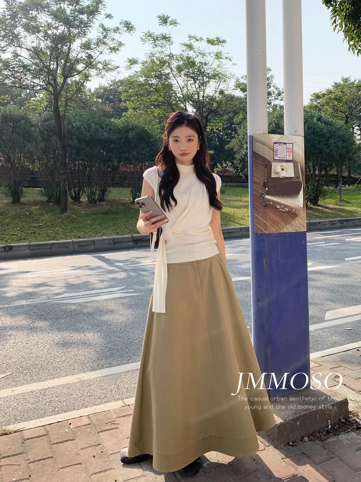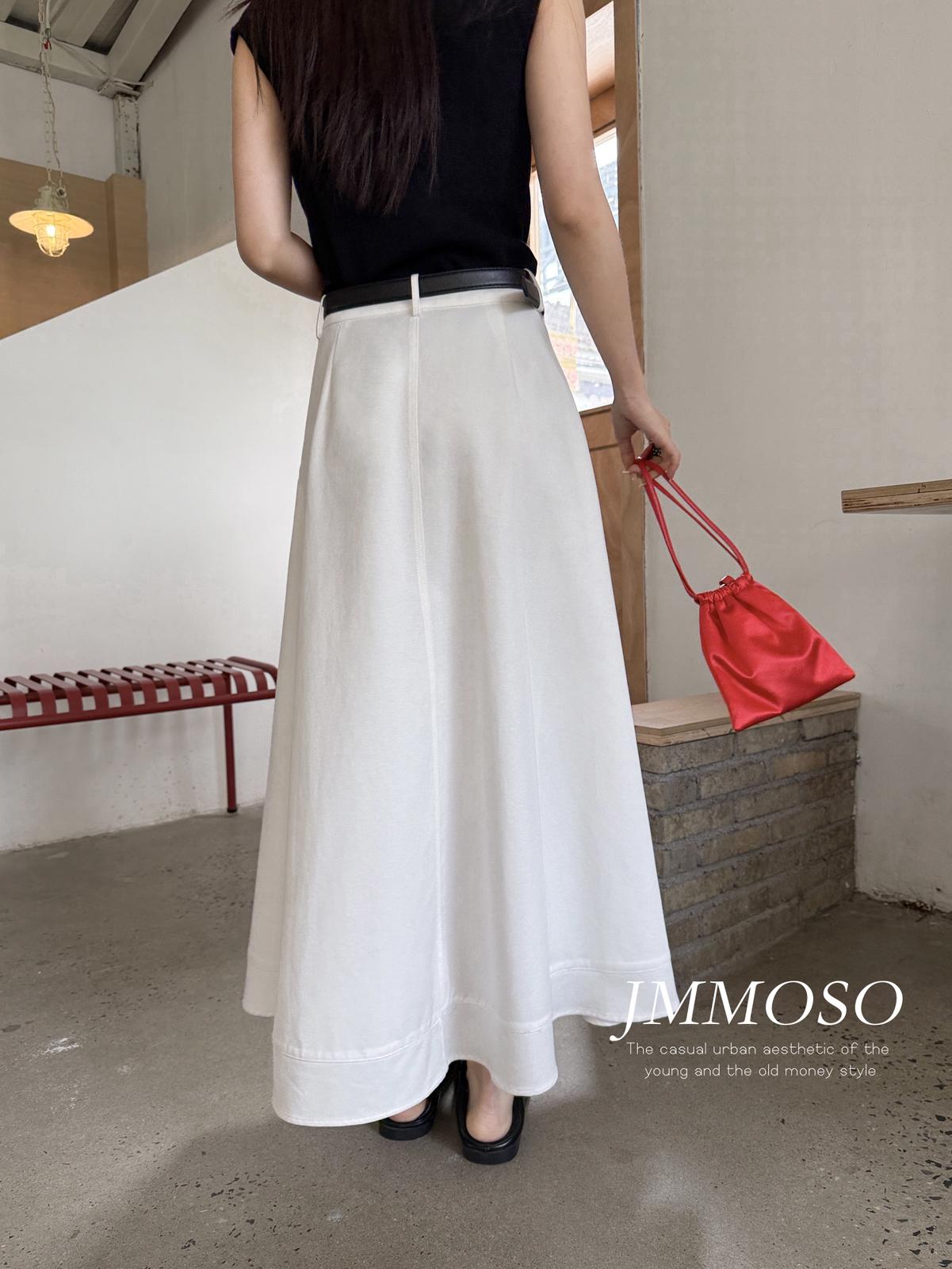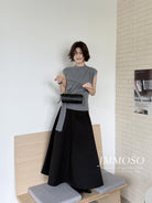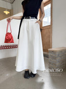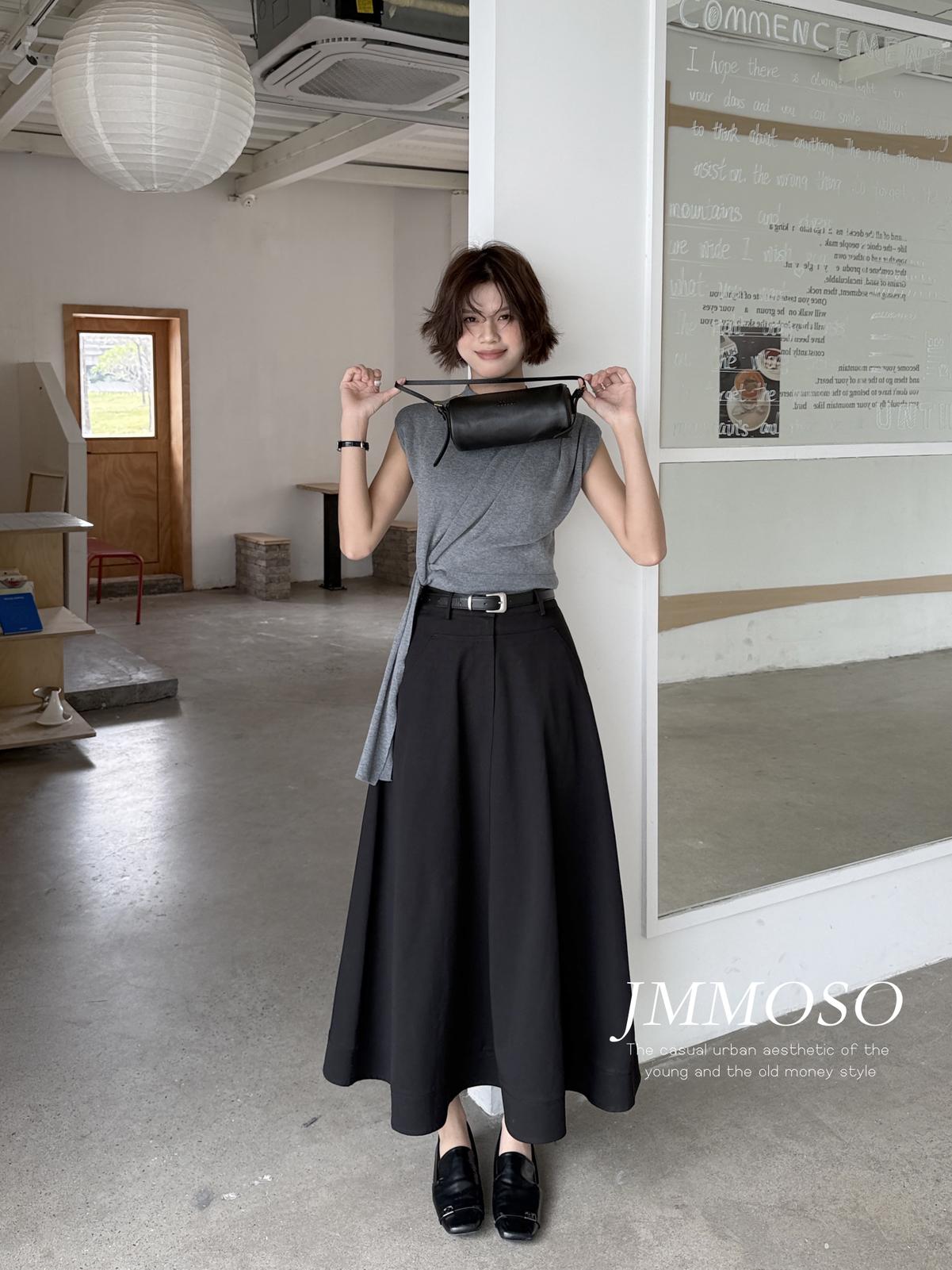 【C8548】韓版高級簡約通勤氣質高腰拼接口袋顯瘦大擺傘裙半身裙