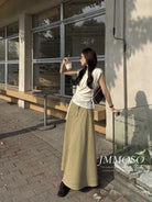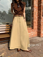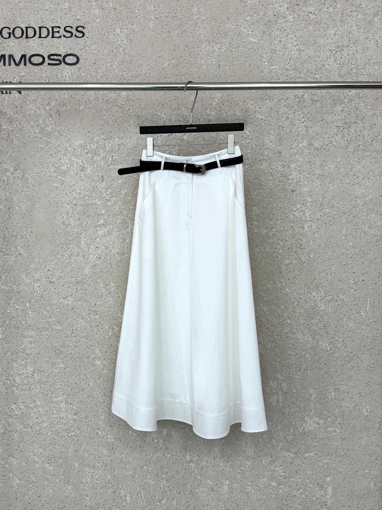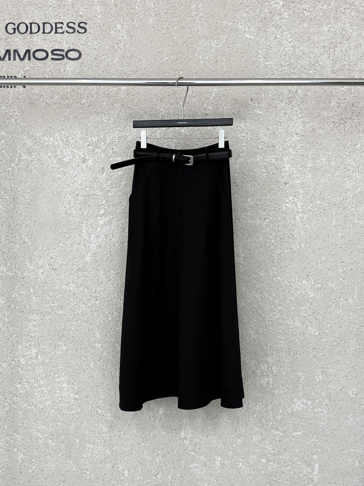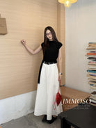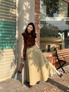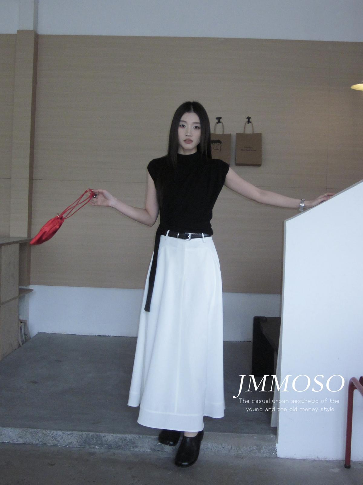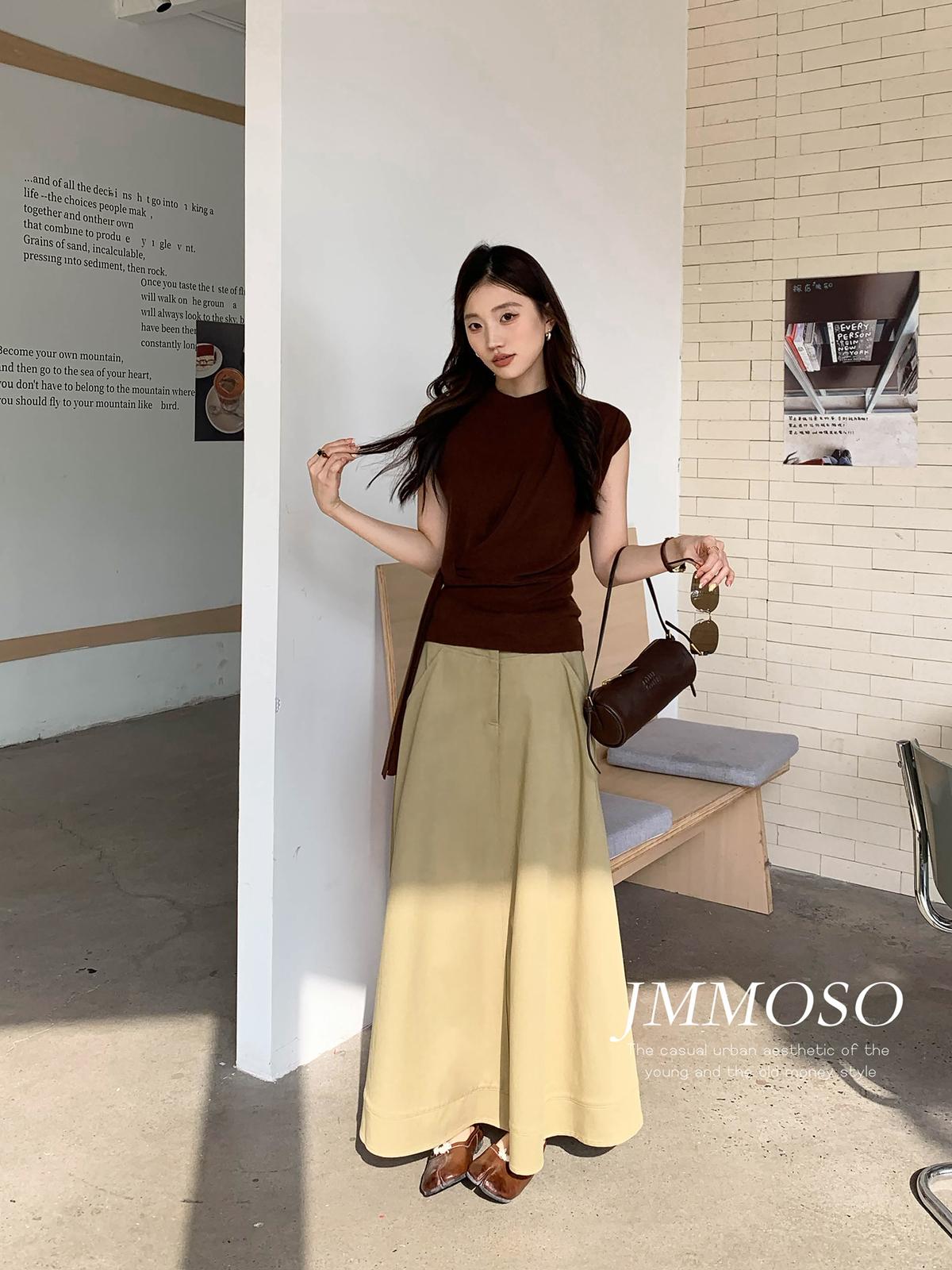【C8548】韓版高級簡約通勤氣質高腰拼接口袋顯瘦大擺傘裙半身裙