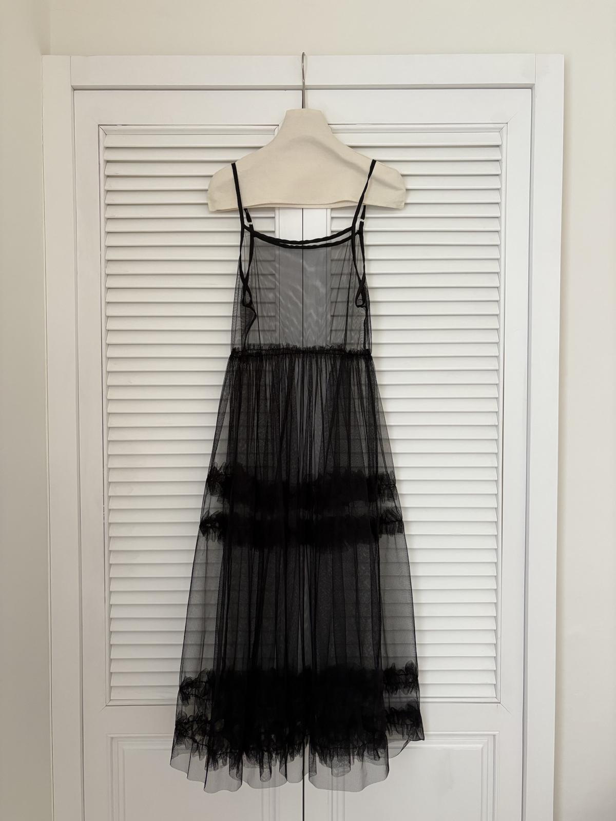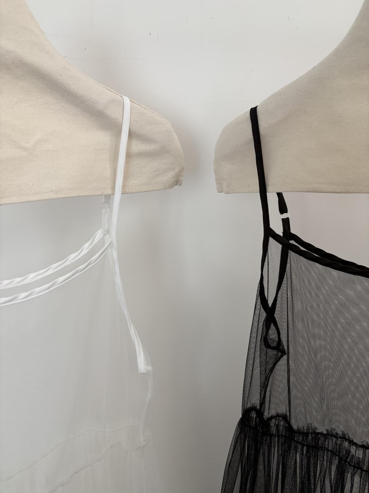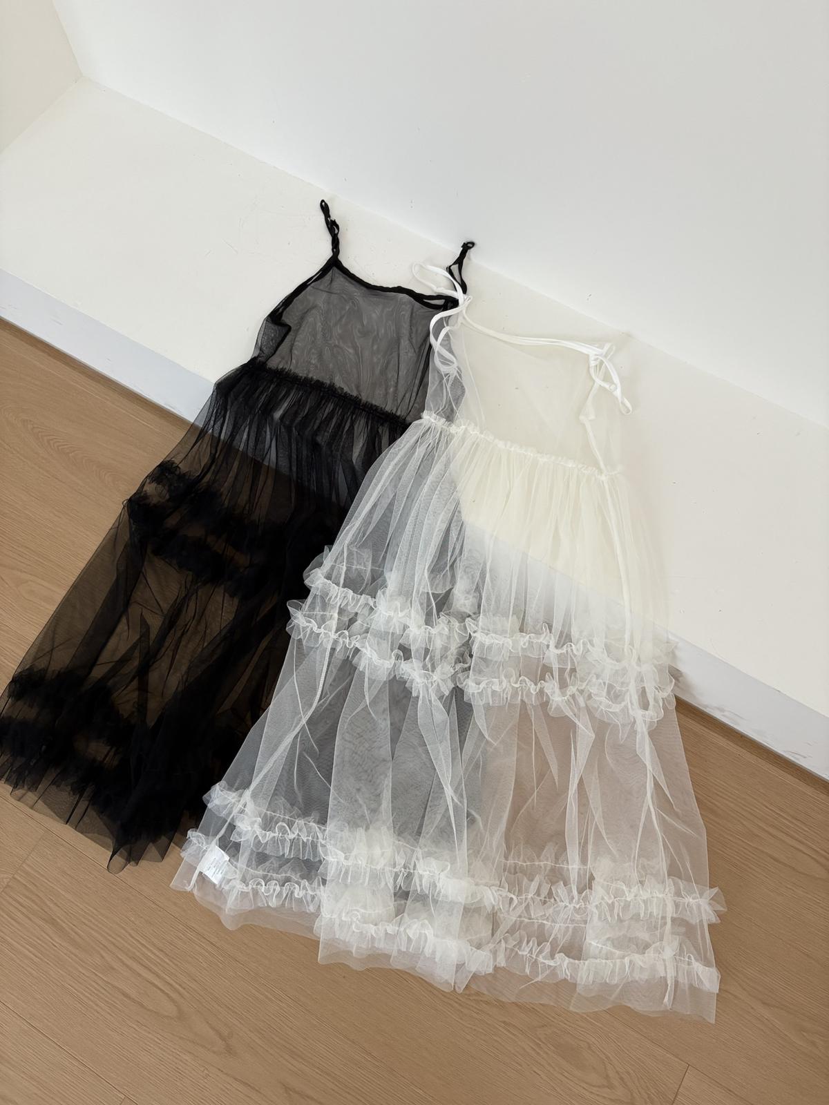 【C8615】“疊疊樂”韓系甜美網紗透視疊穿吊帶罩裙女早春新款層次感蓬蓬連衣裙