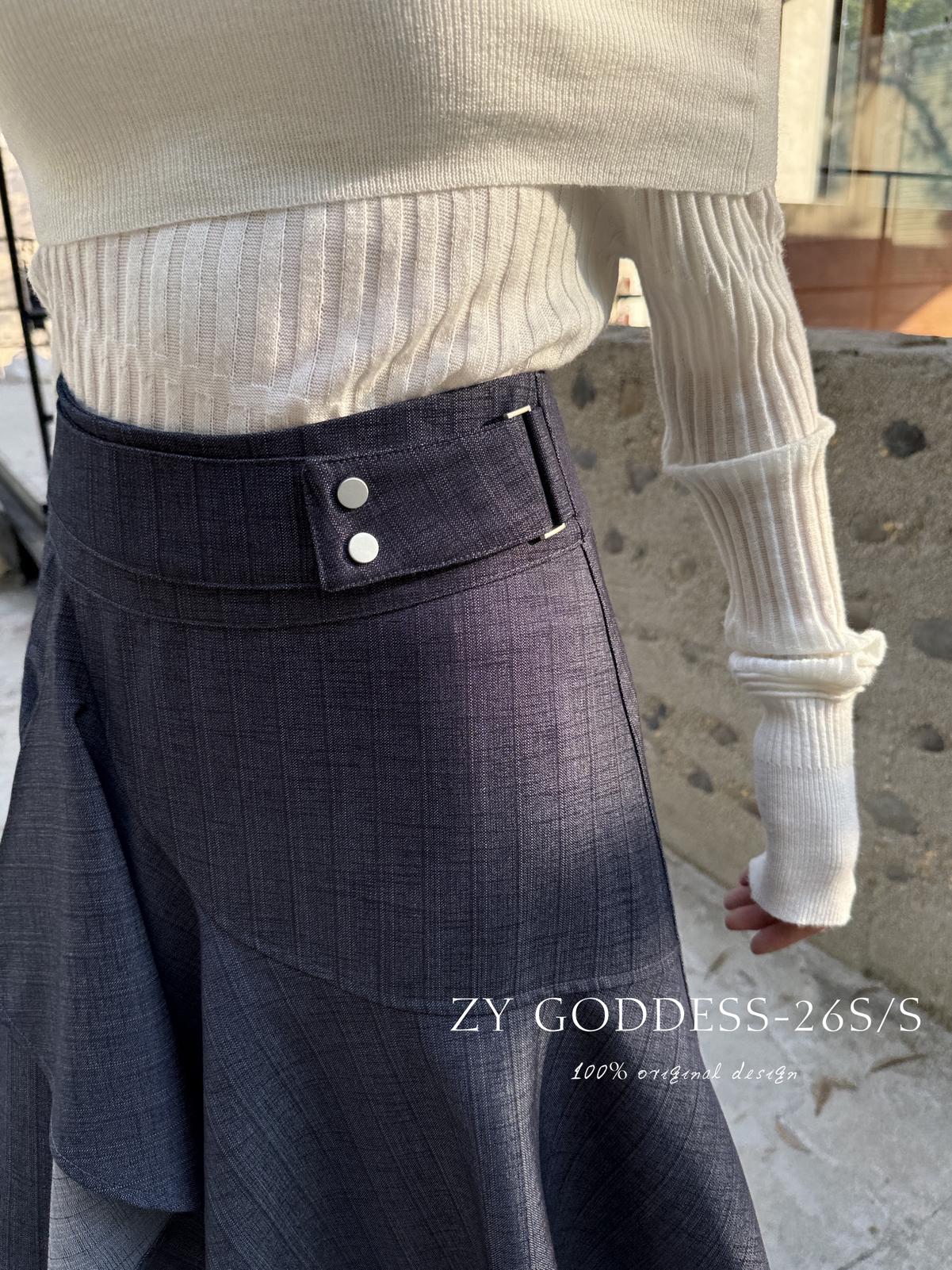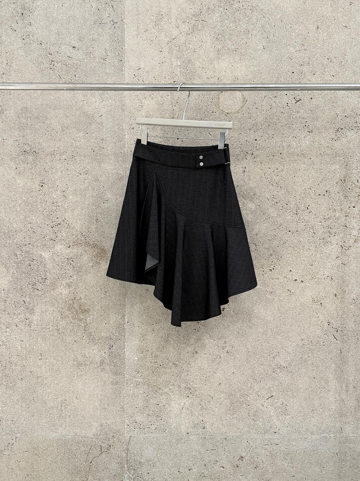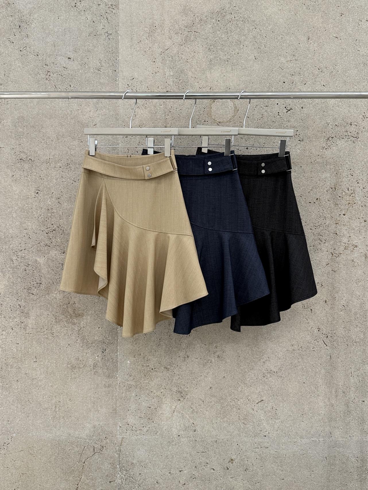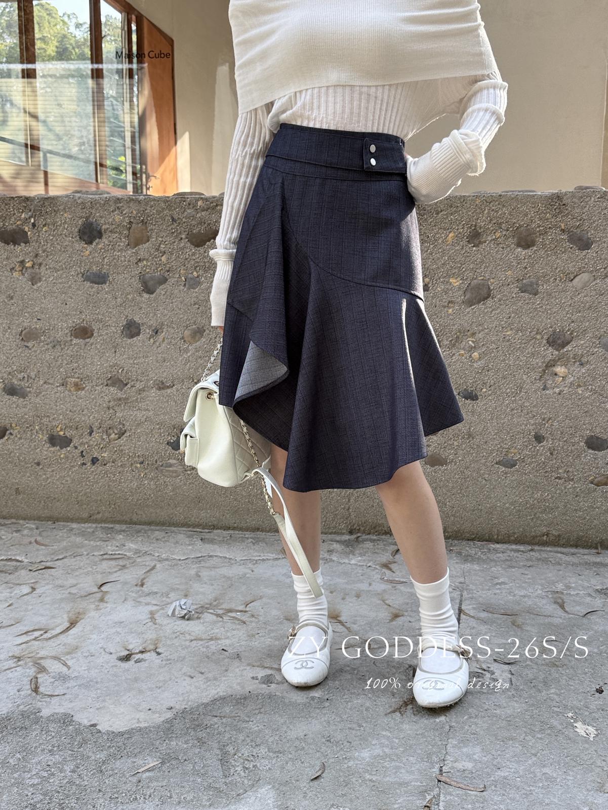 【C8653】韓版調性高腰不規則立體剪裁拼接荷葉邊中裙半身裙