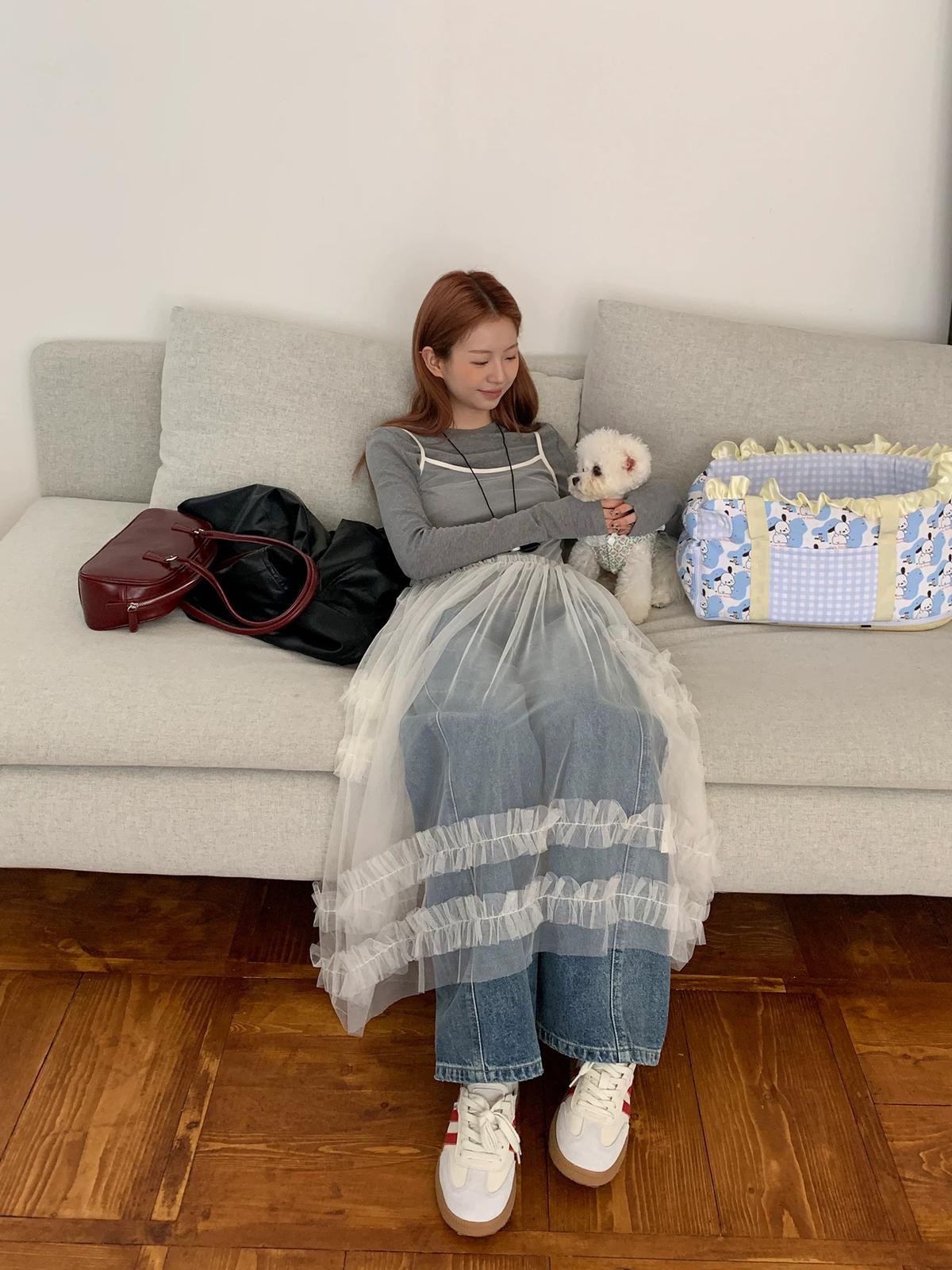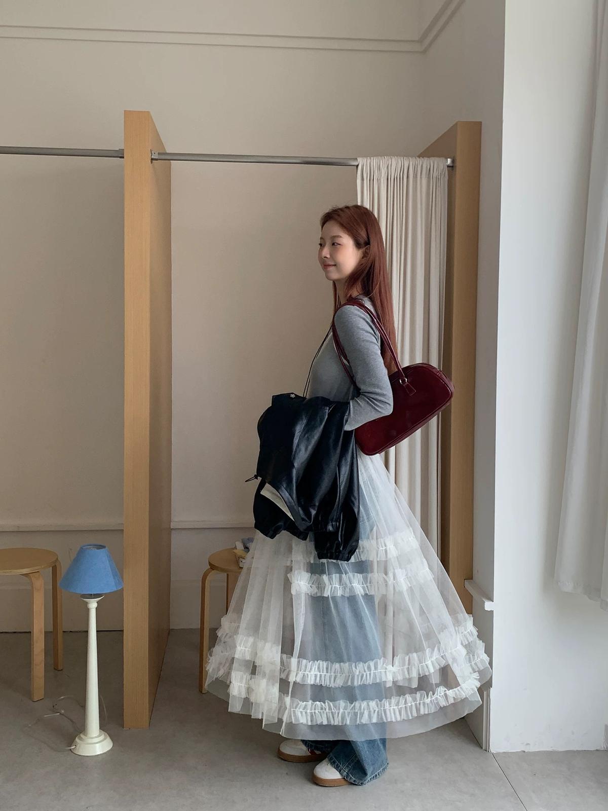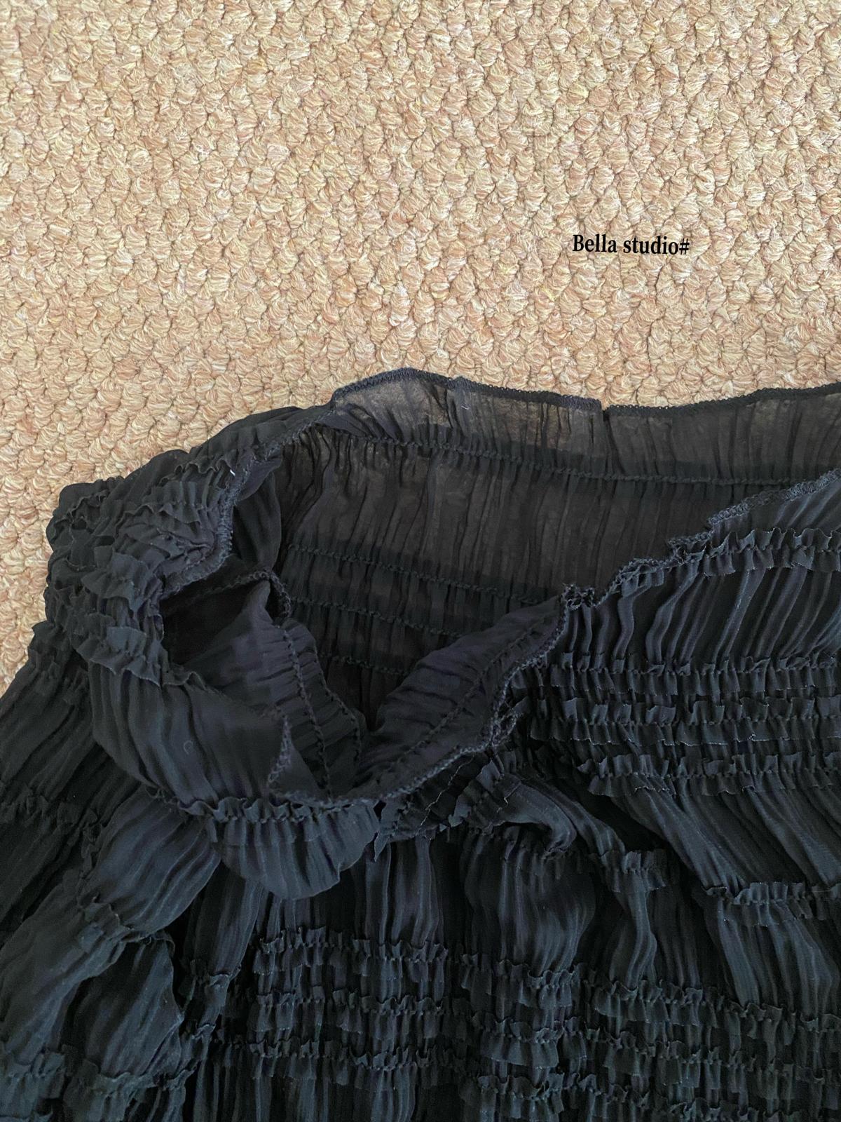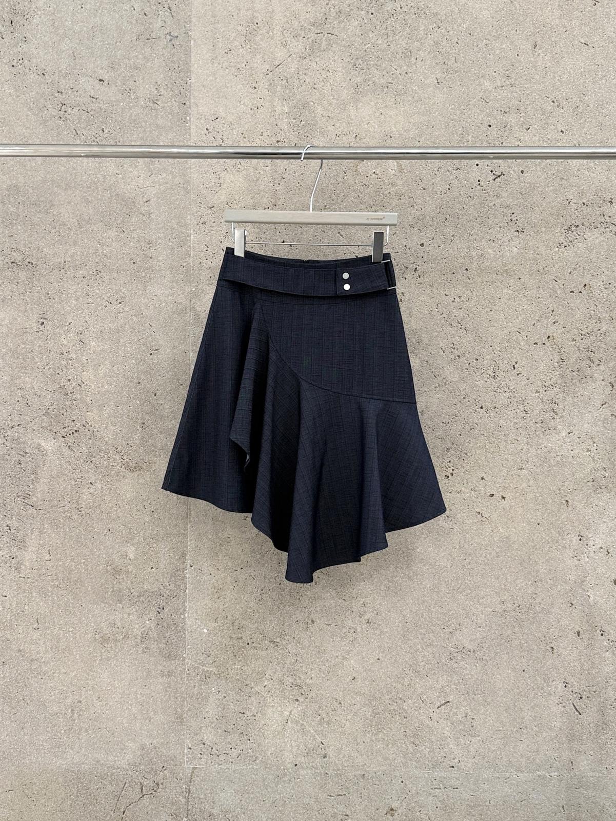 【C8653】韓版調性高腰不規則立體剪裁拼接荷葉邊中裙半身裙
