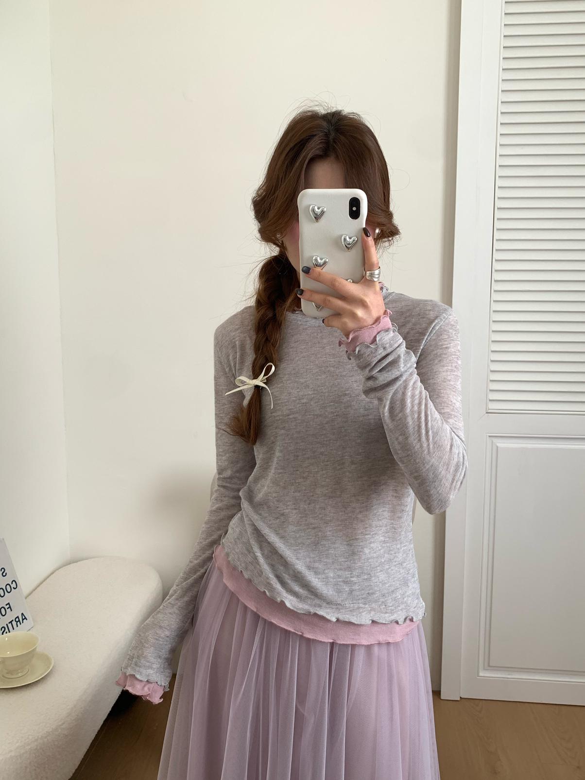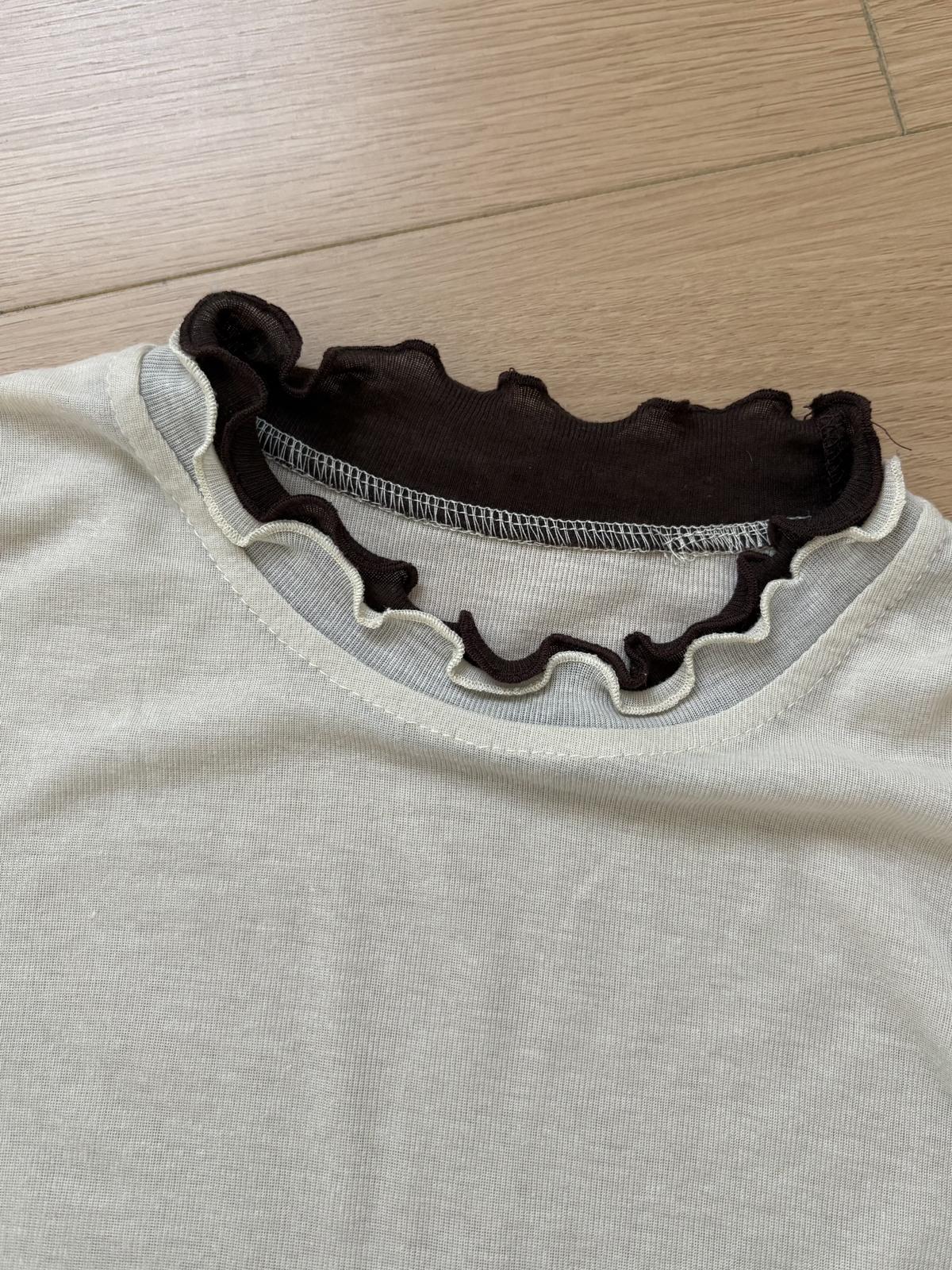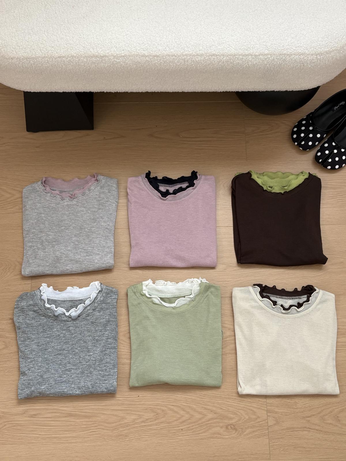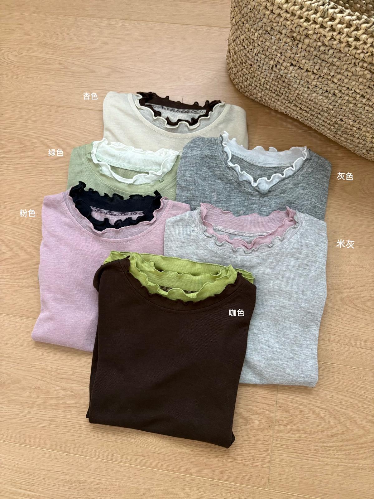 【C8616】韓系拼色假兩件木耳邊女2026早春新款百搭疊穿修身顯瘦打底衫(26年早春!)