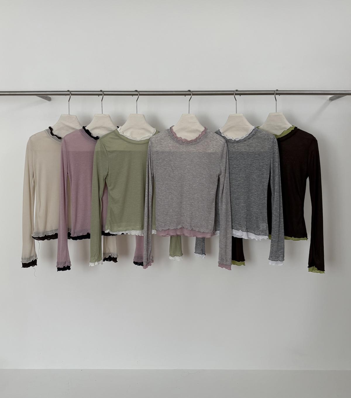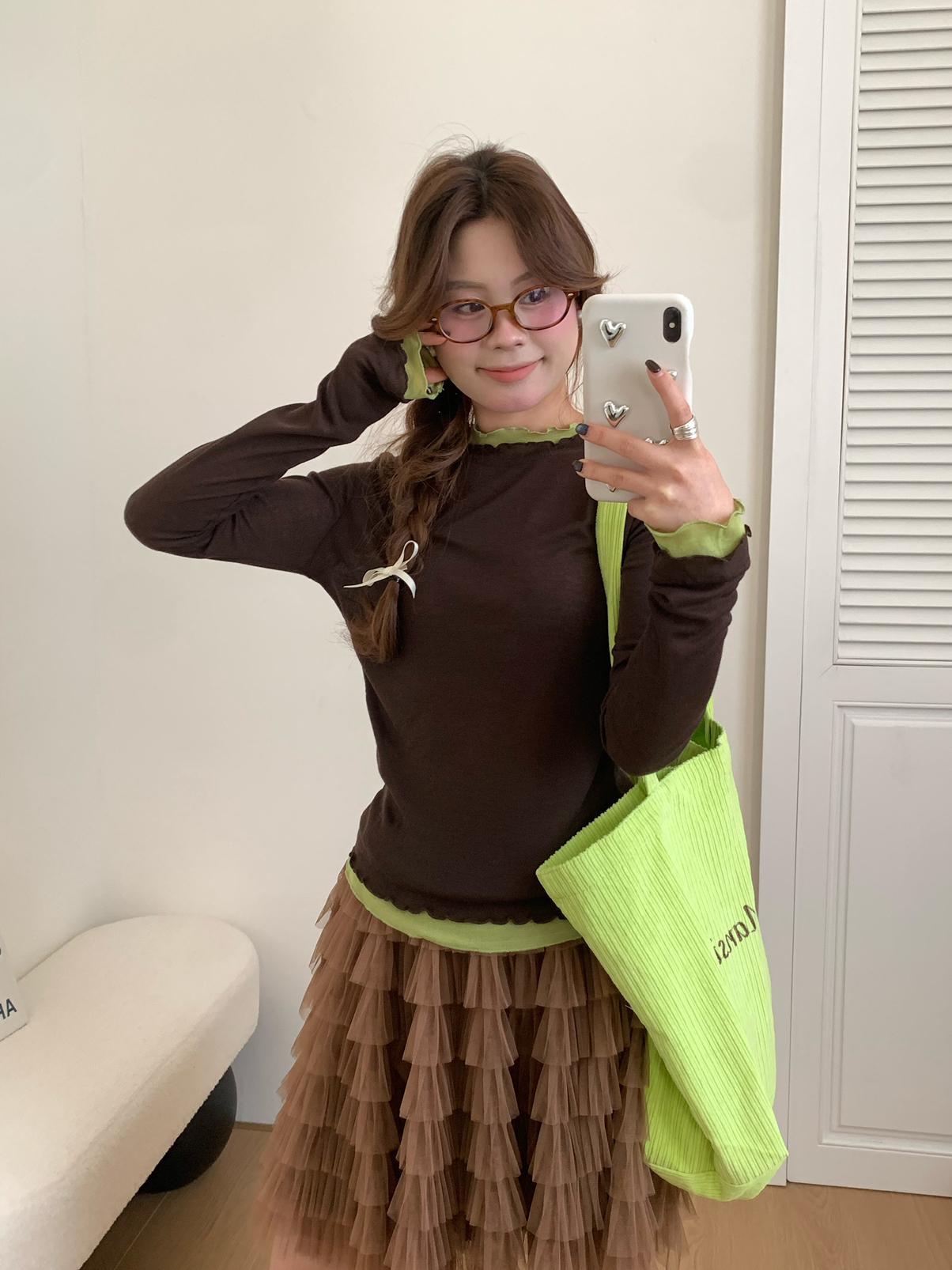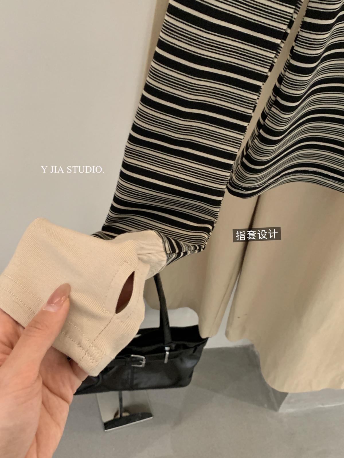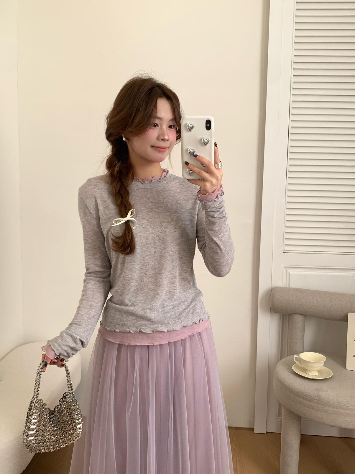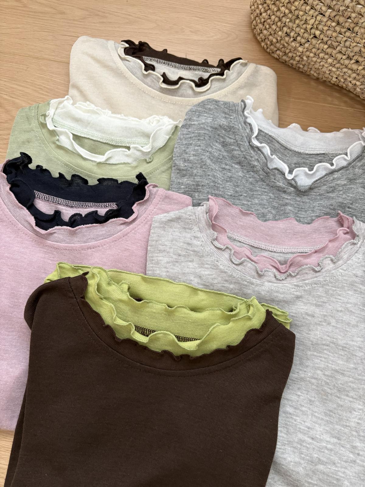 【C8616】韓系拼色假兩件木耳邊女2026早春新款百搭疊穿修身顯瘦打底衫(26年早春!)