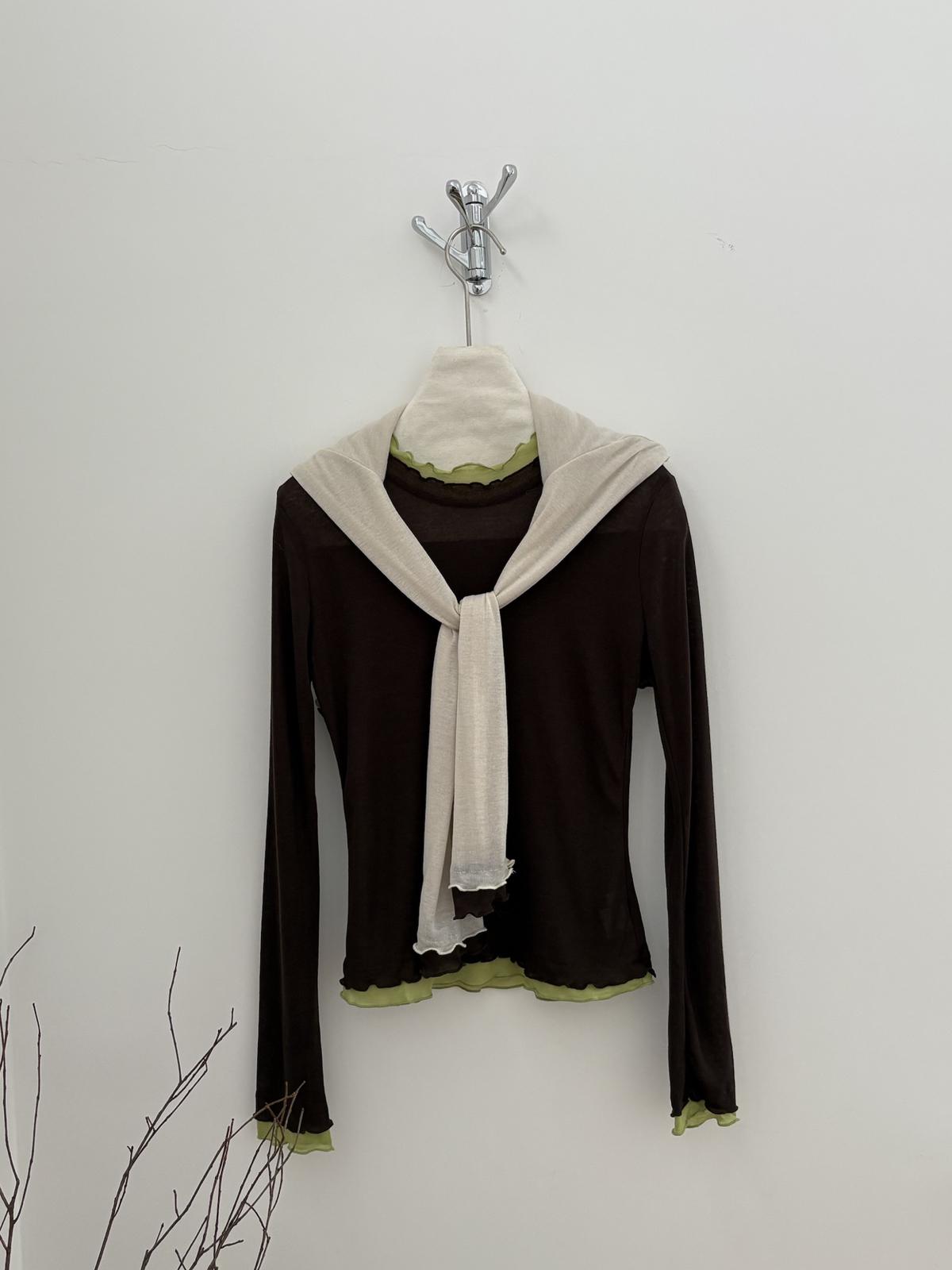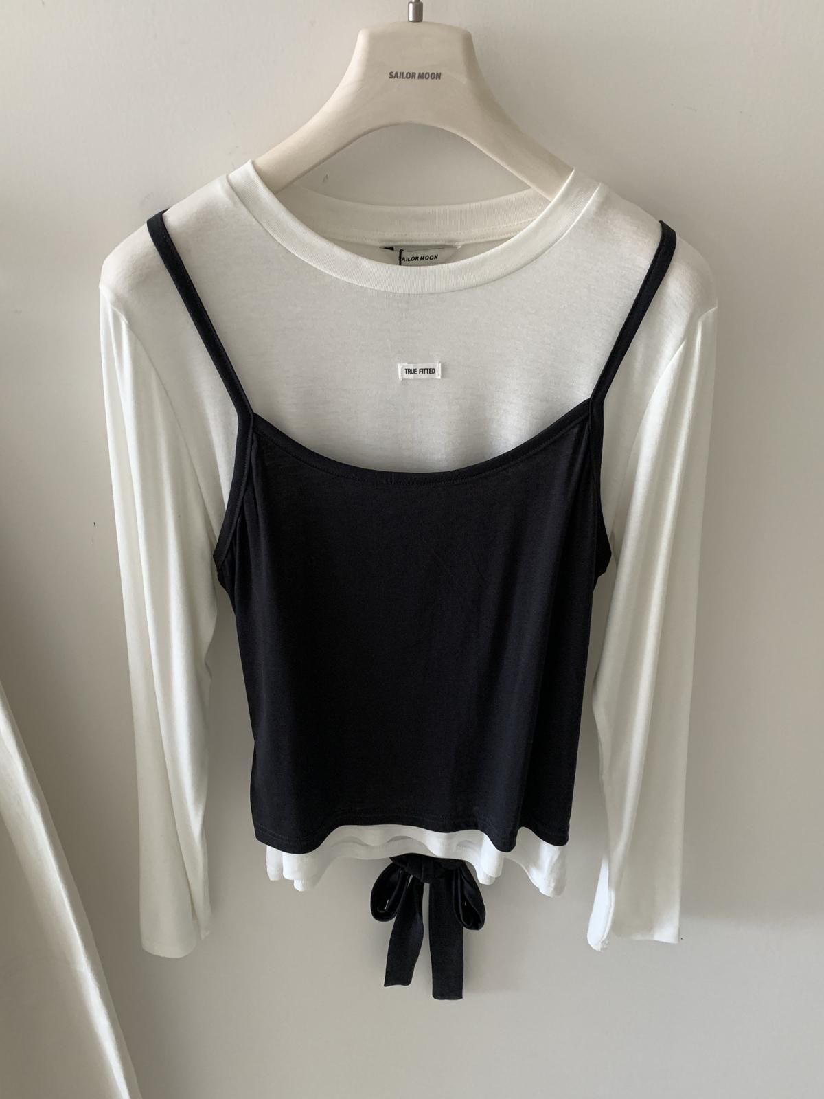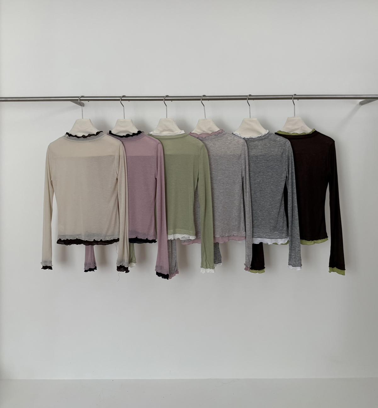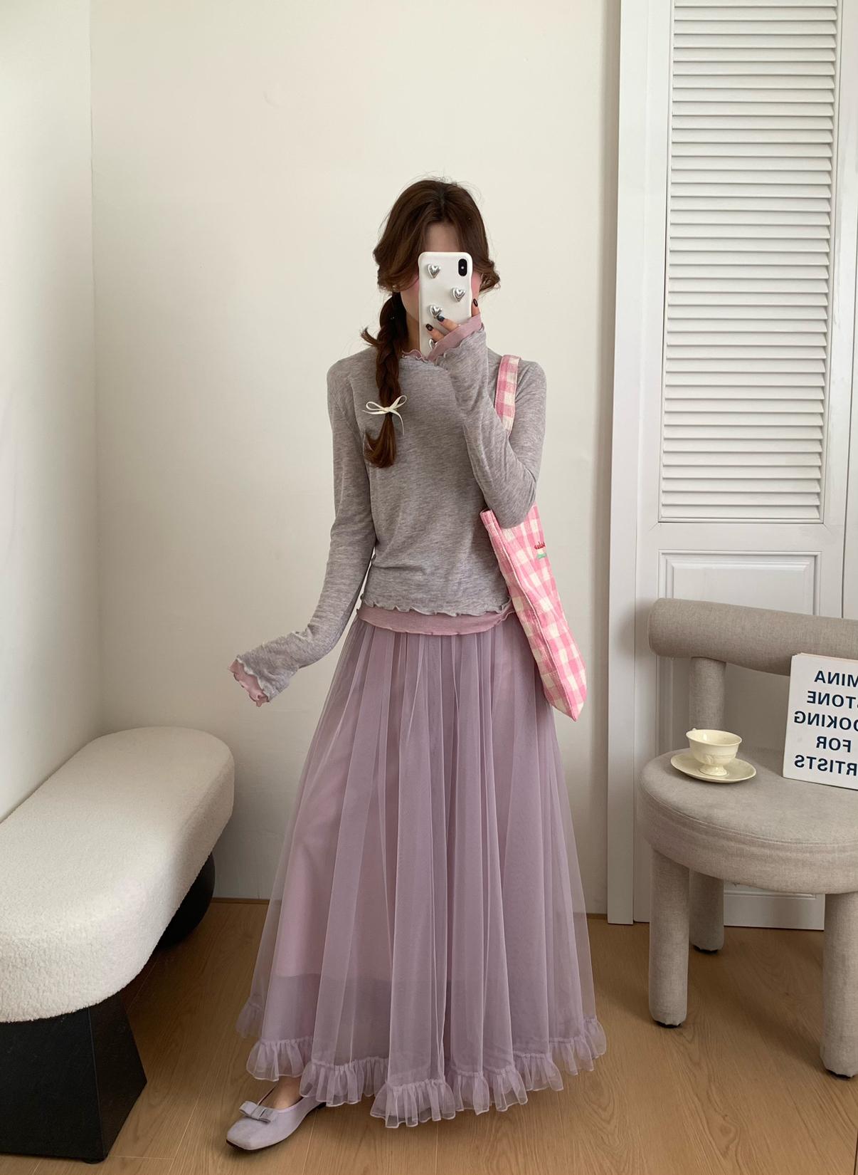 【C8616】韓系拼色假兩件木耳邊女2026早春新款百搭疊穿修身顯瘦打底衫(26年早春!)