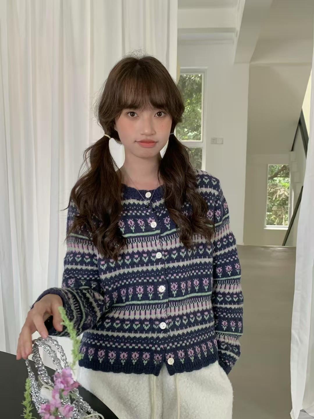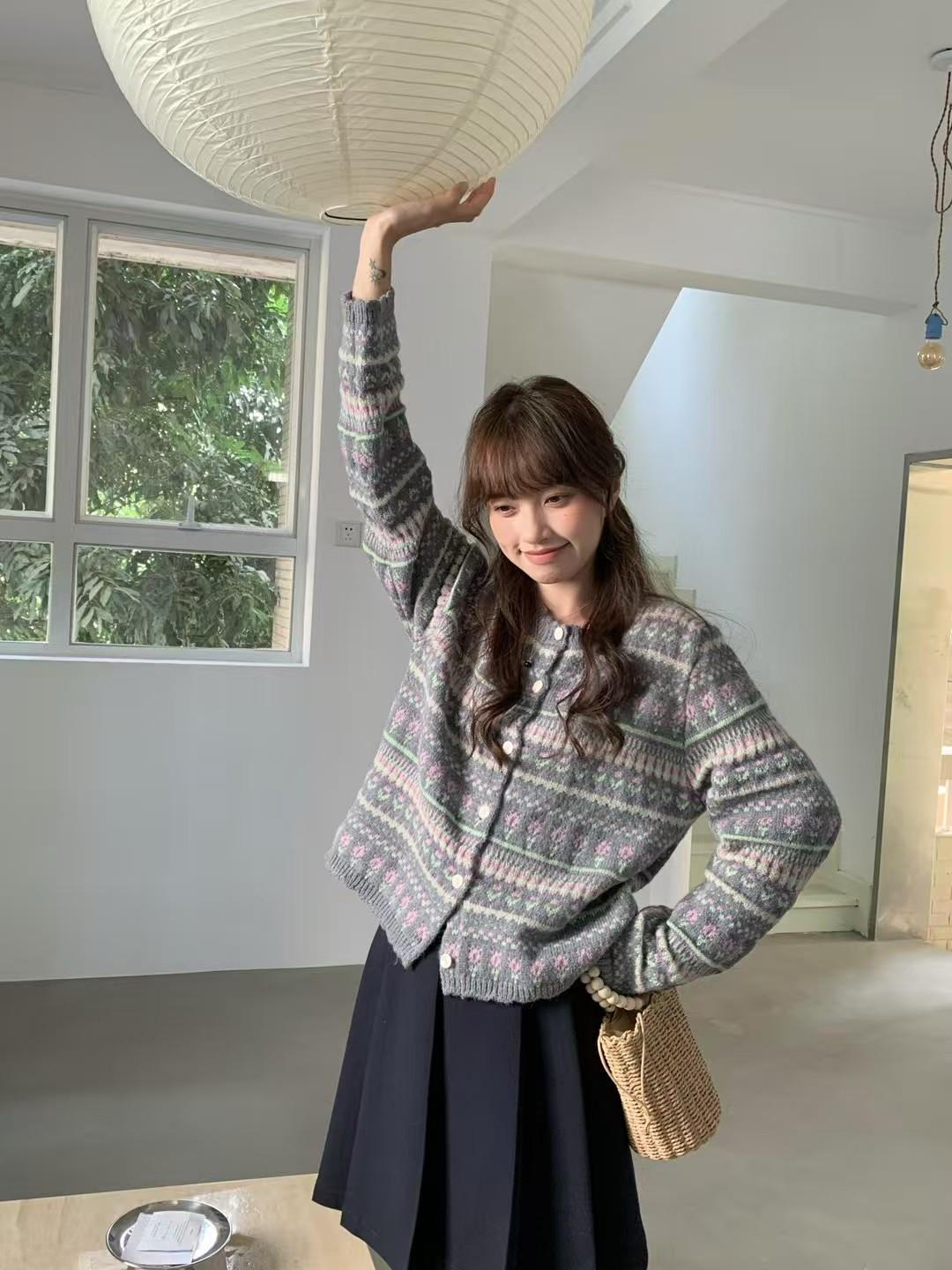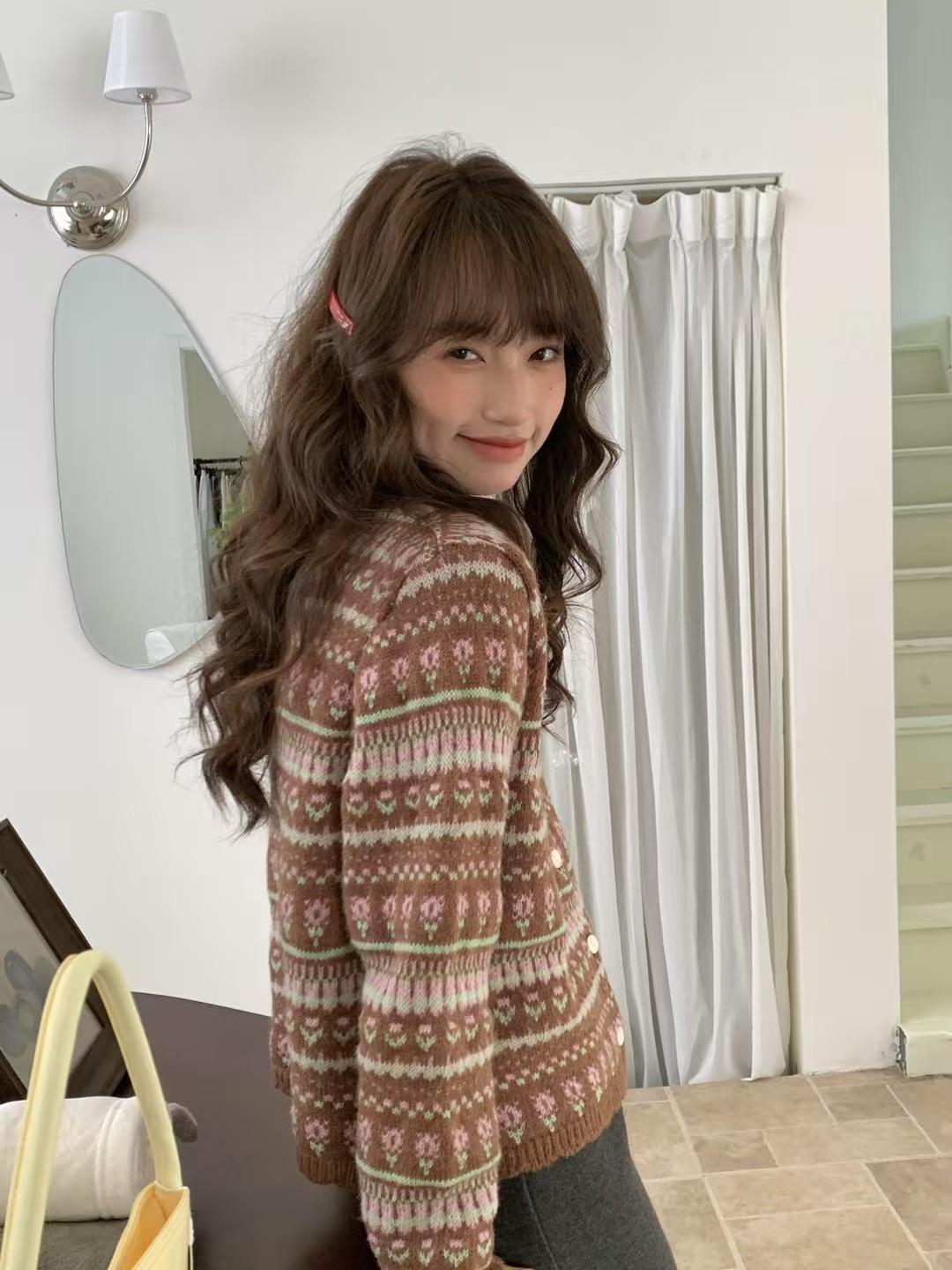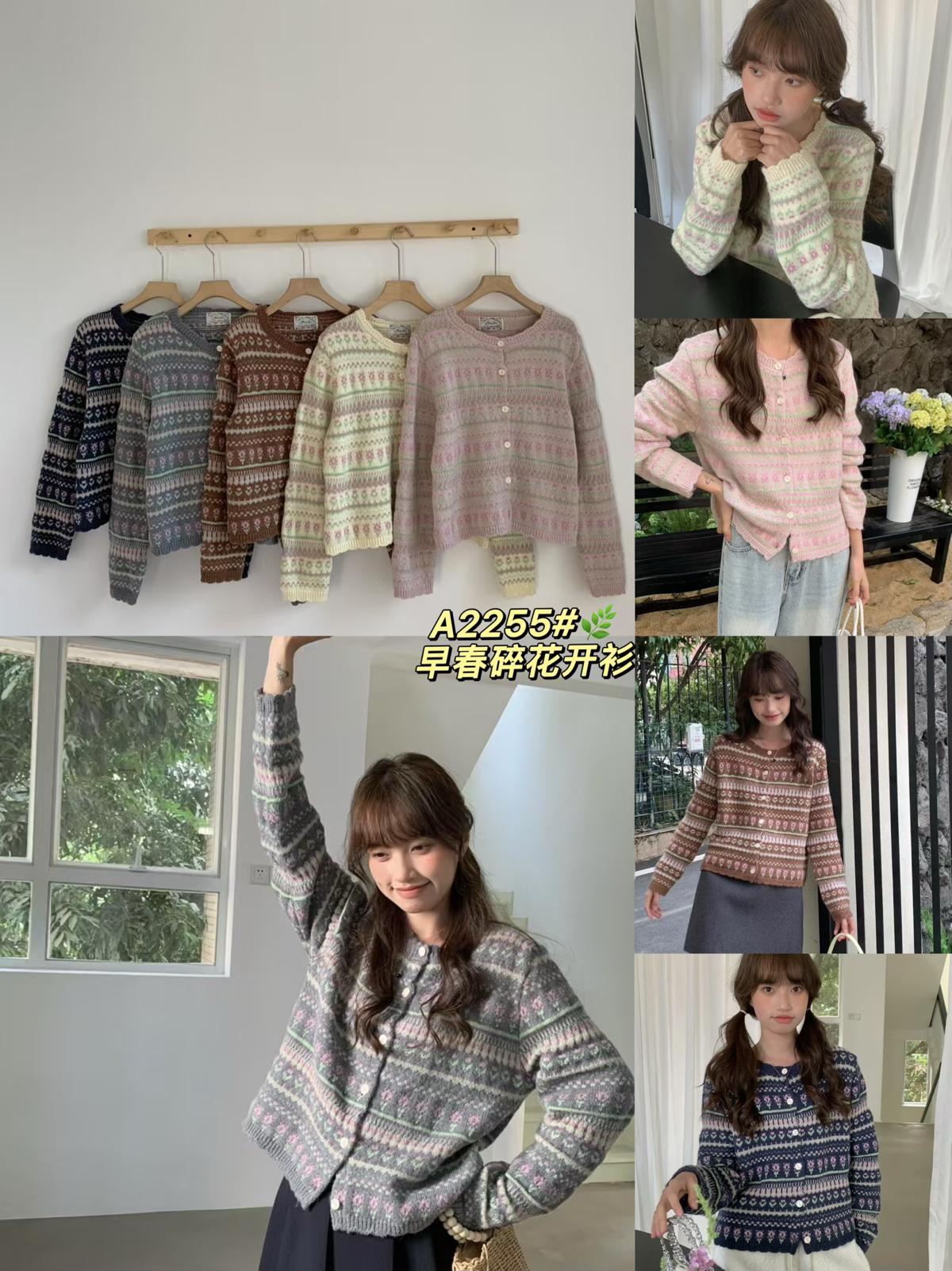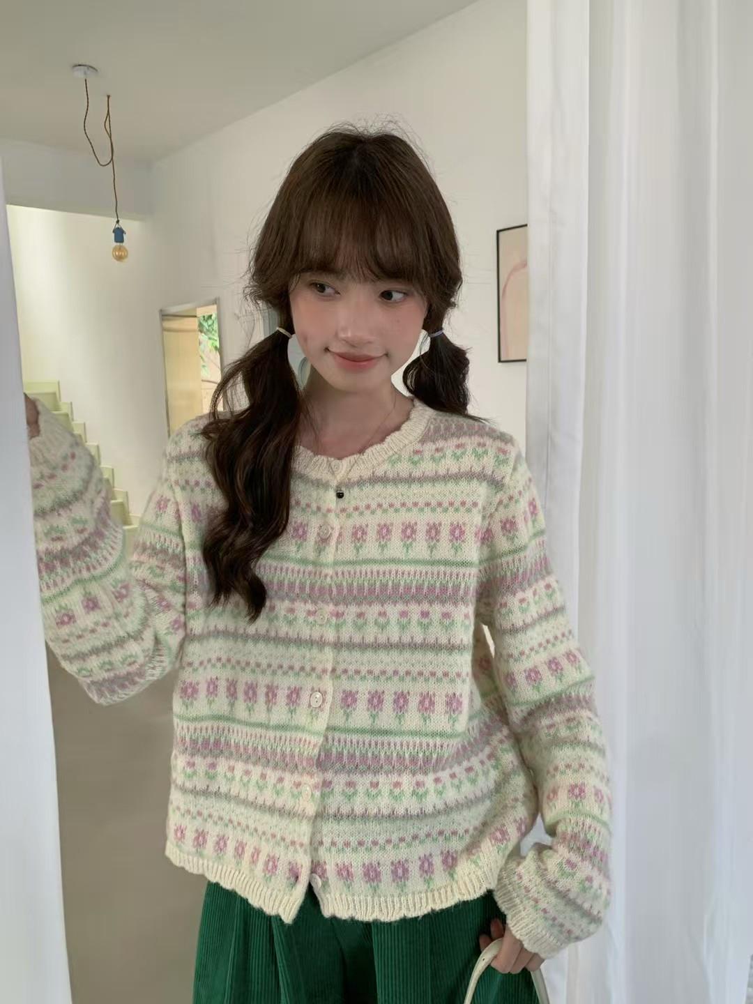 【C8619】韓系休閒寬鬆早春碎花針織開衫(絕美碎花)