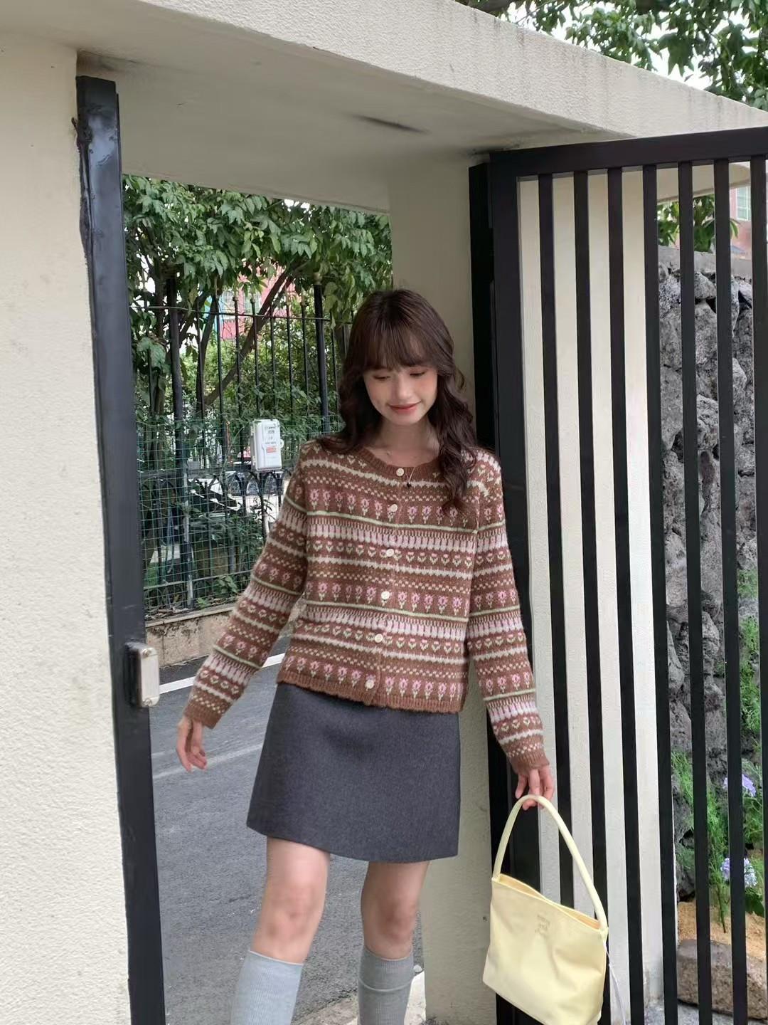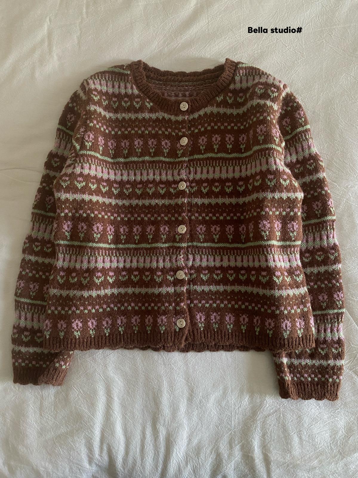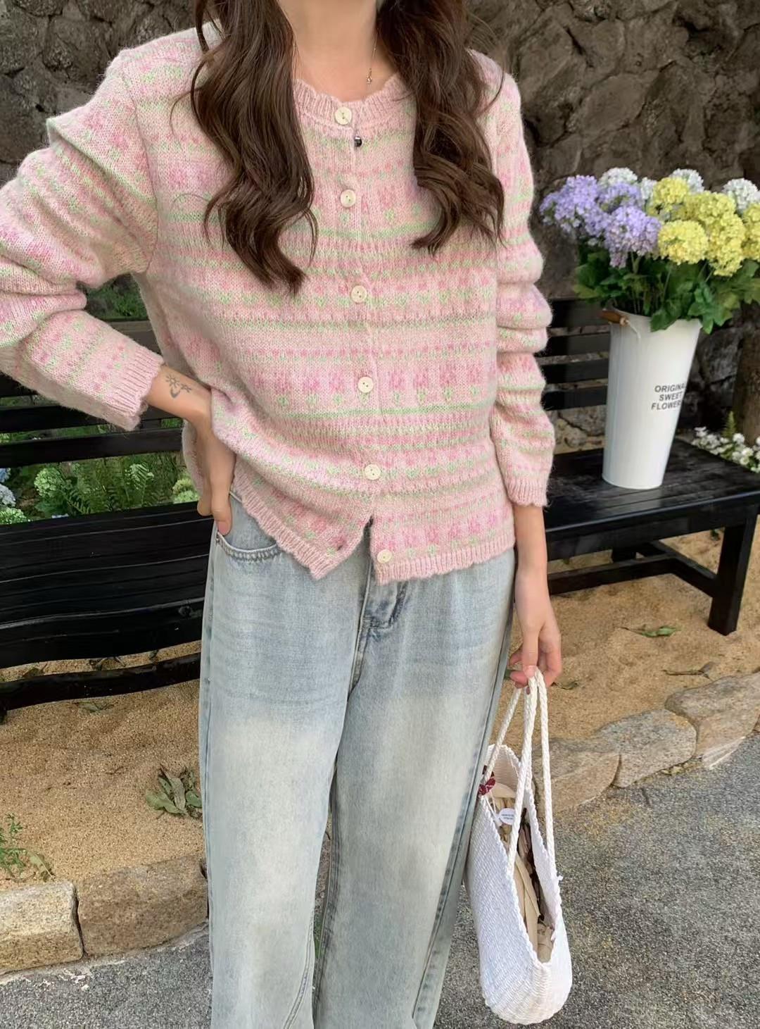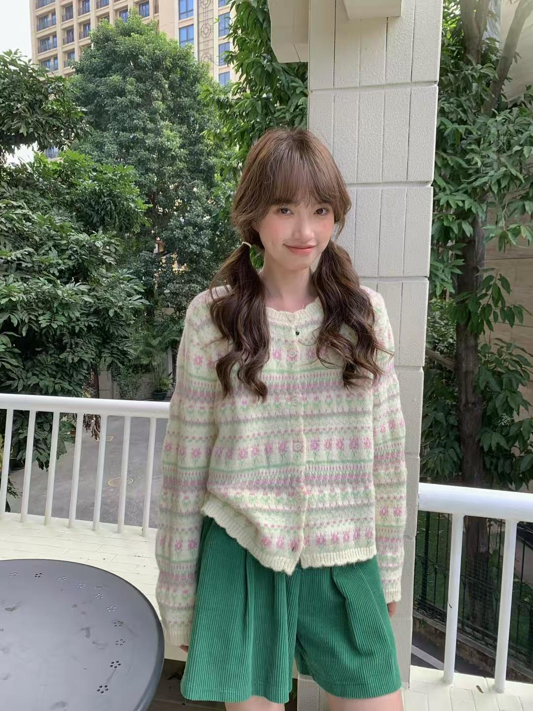 【C8619】韓系休閒寬鬆早春碎花針織開衫(絕美碎花)