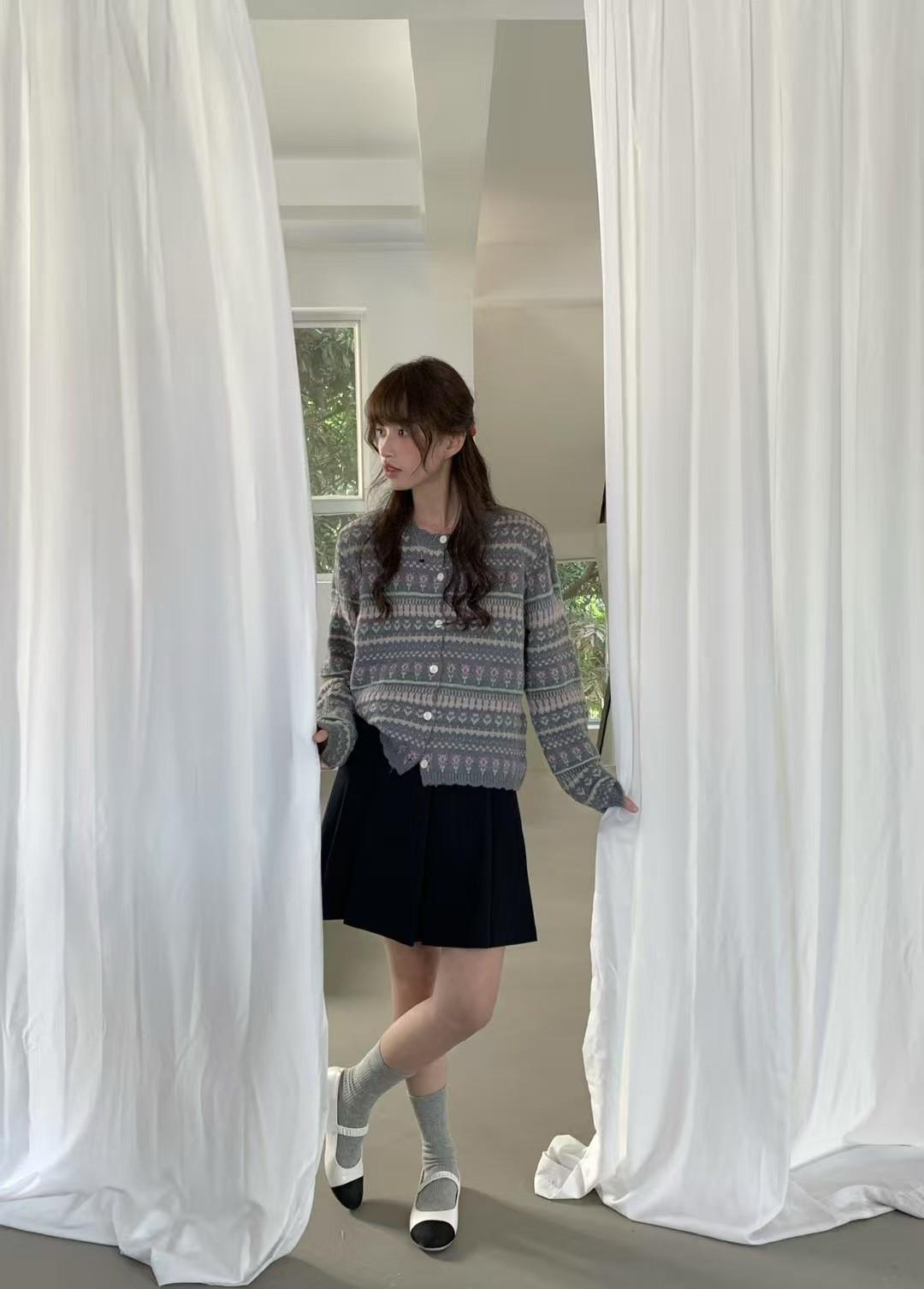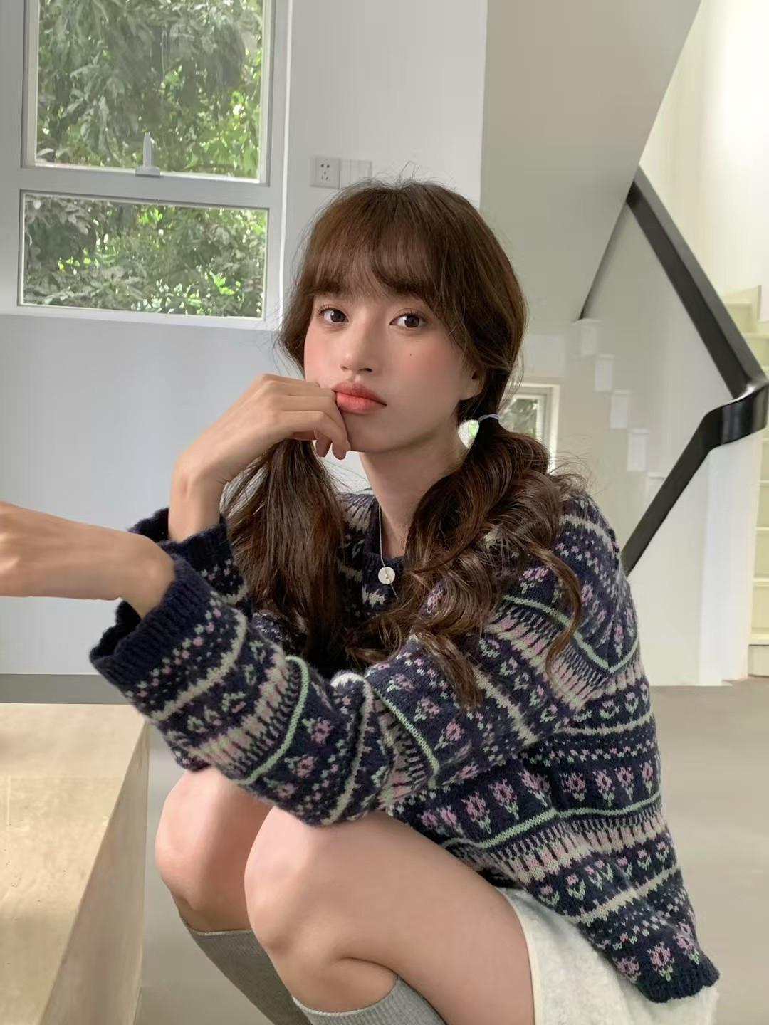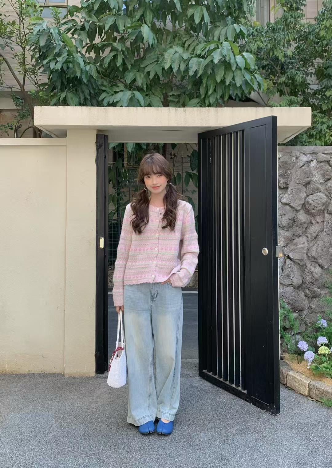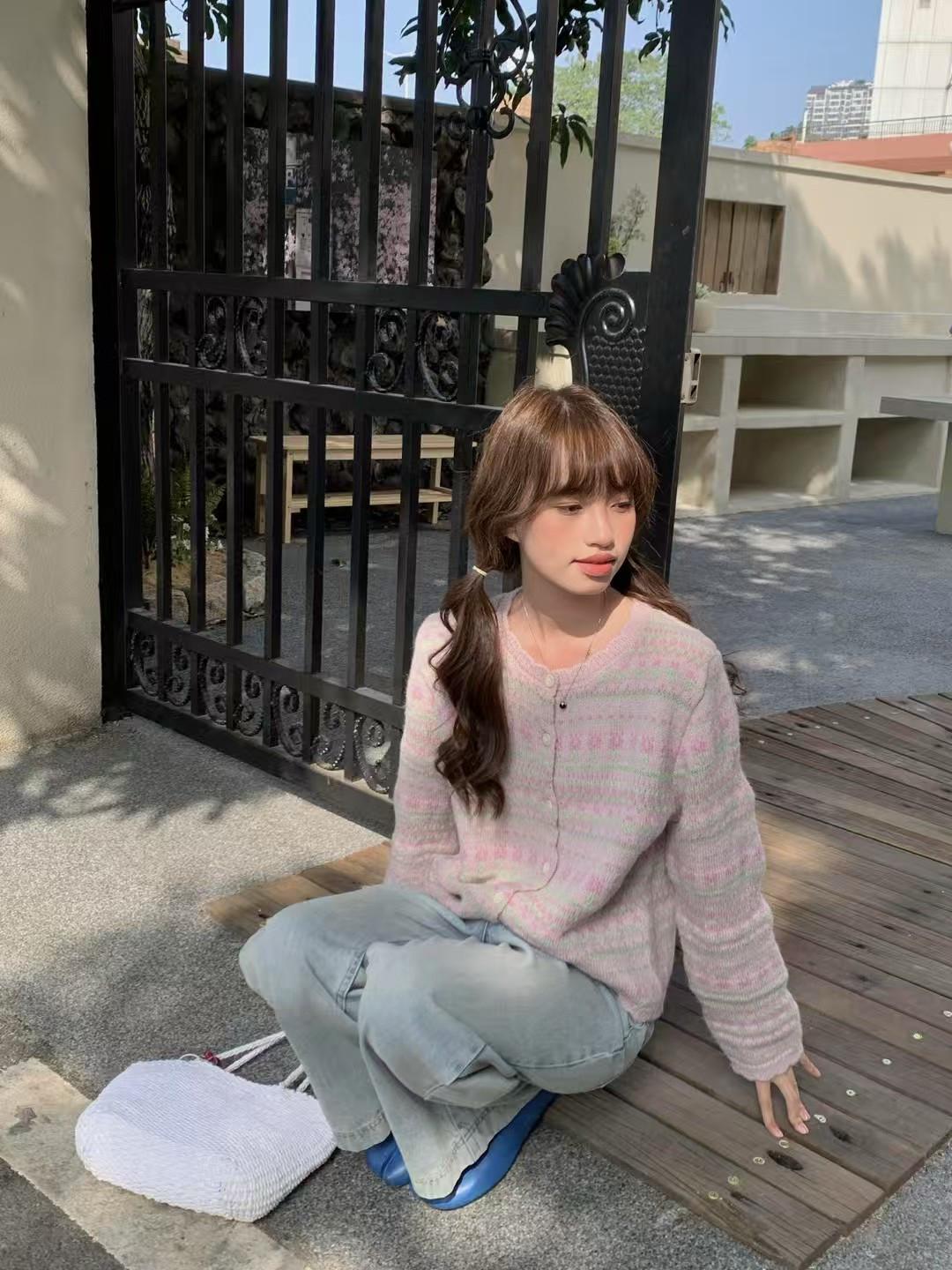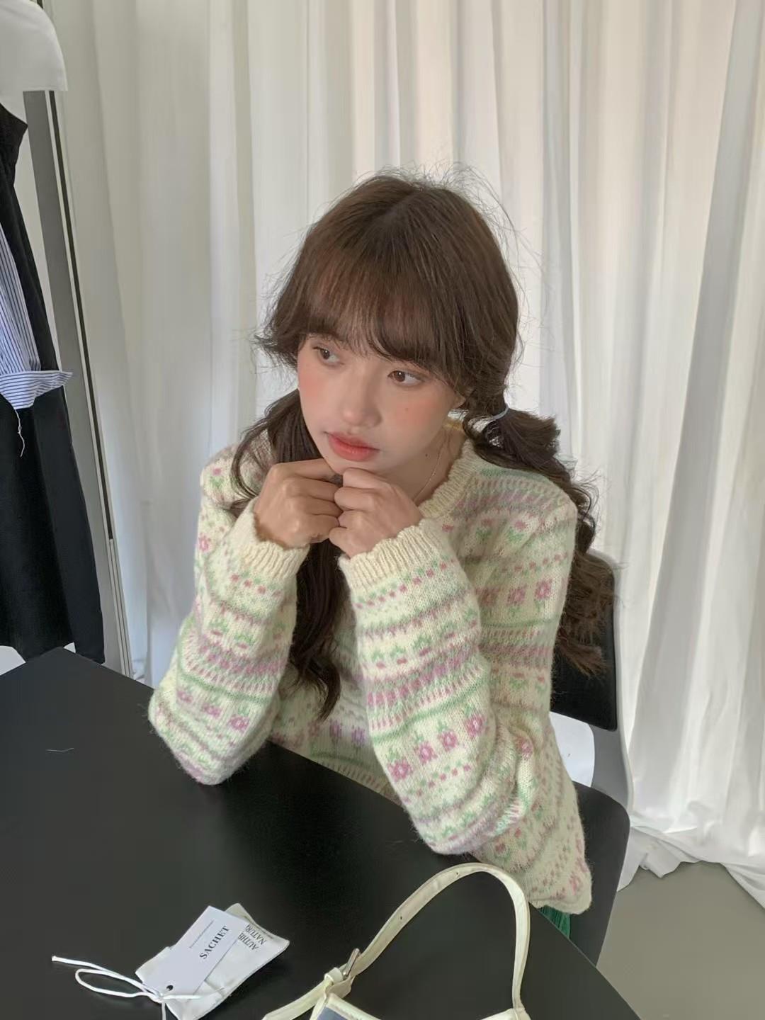 【C8619】韓系休閒寬鬆早春碎花針織開衫(絕美碎花)