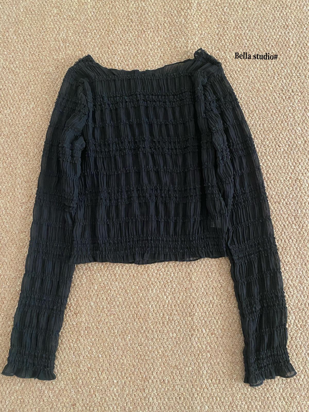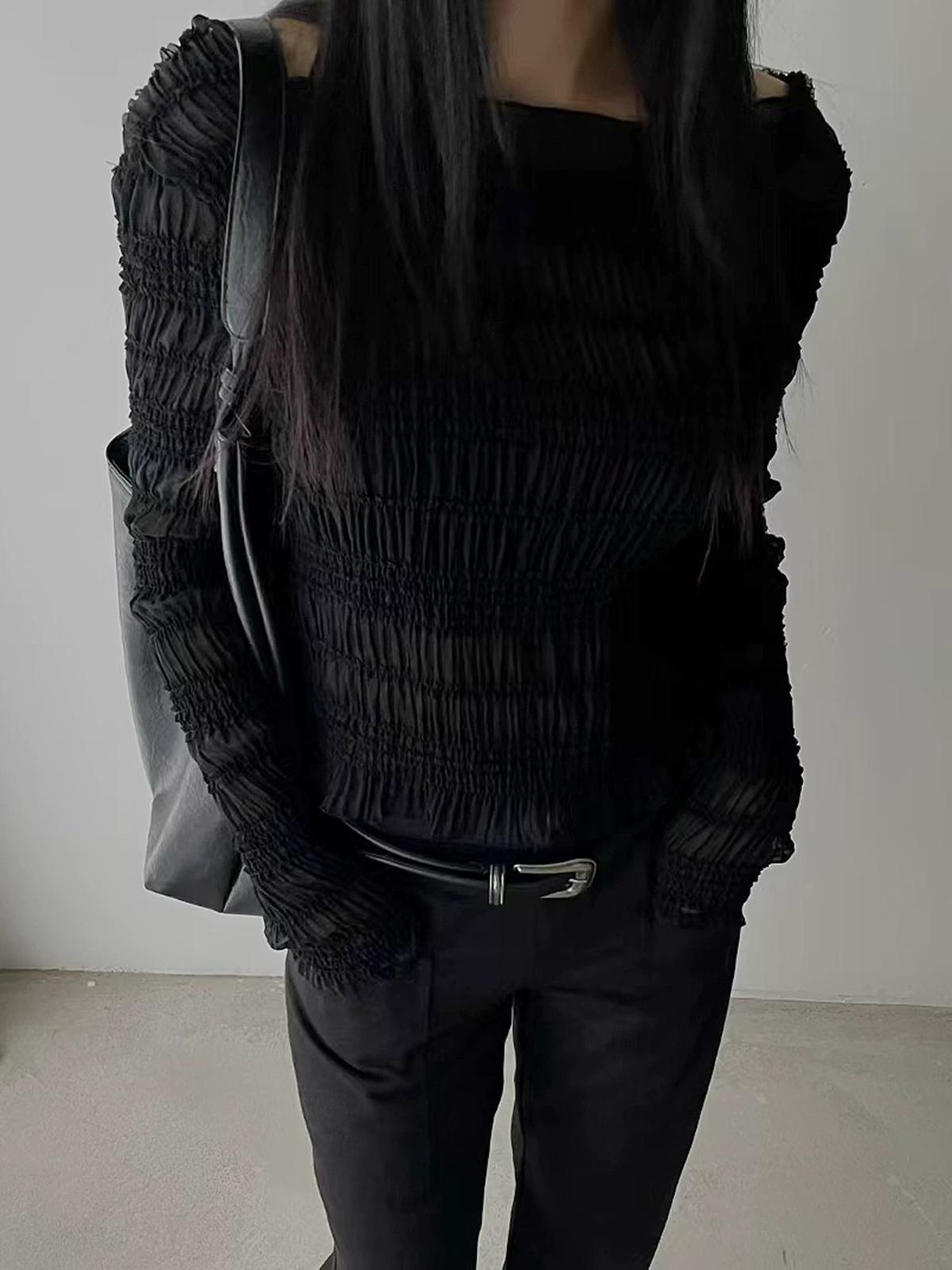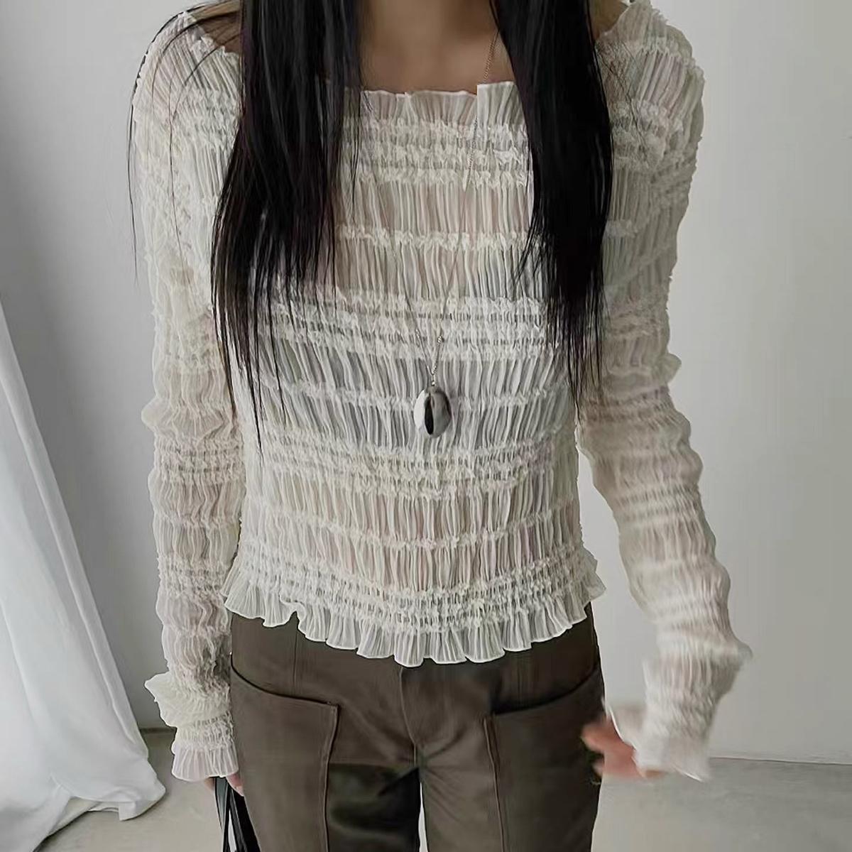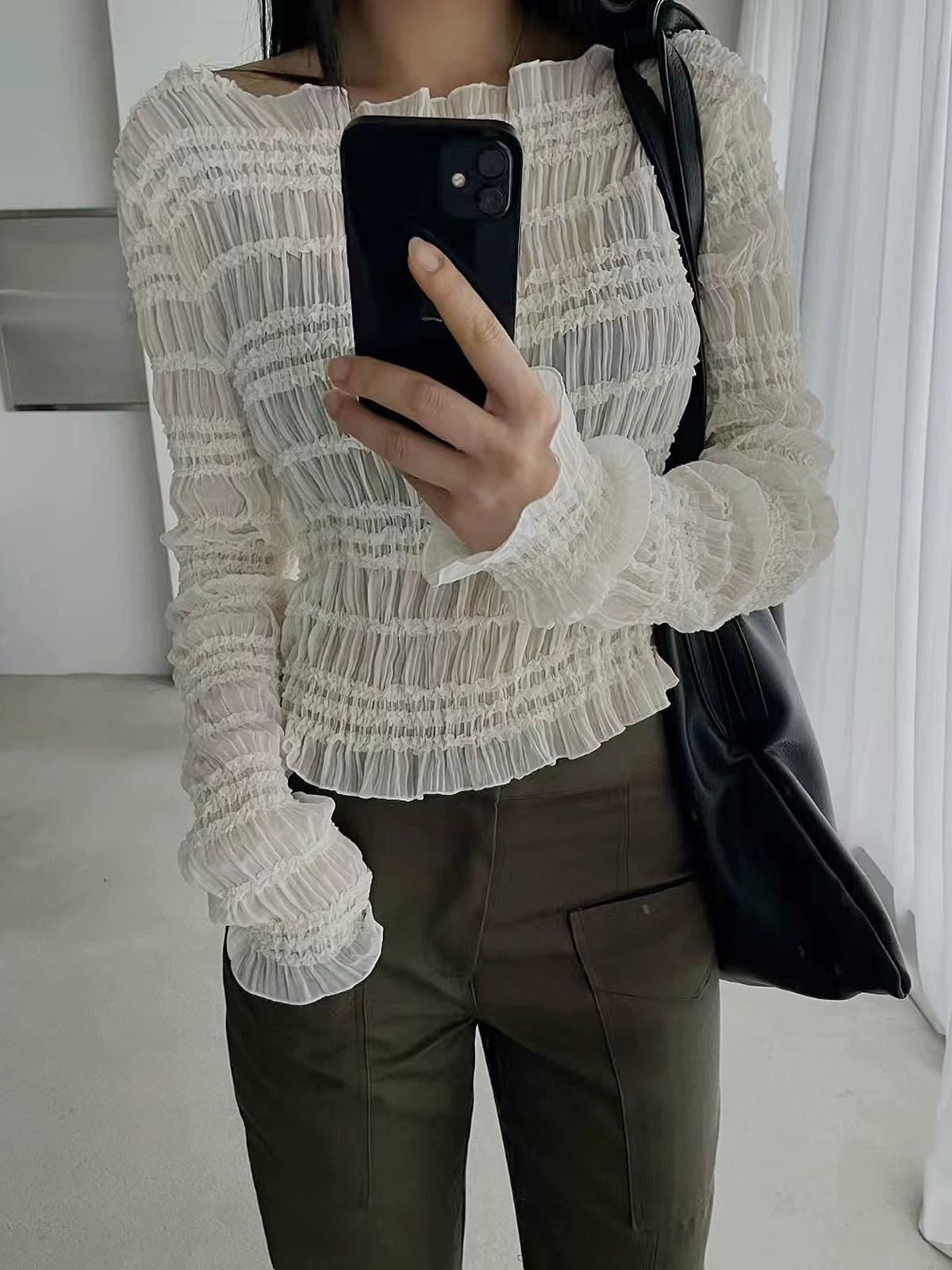 【C8620】韓系休閒寬鬆褶皺木耳邊長袖小衫