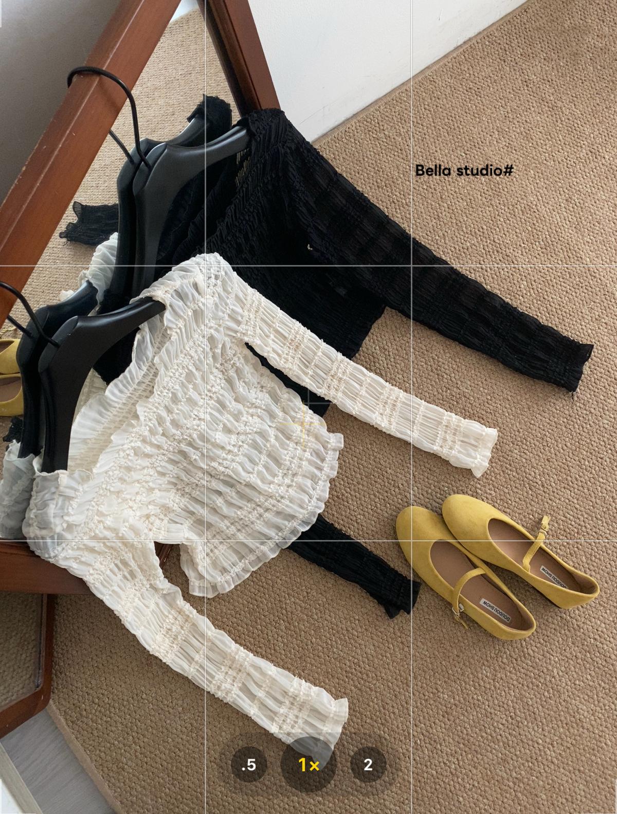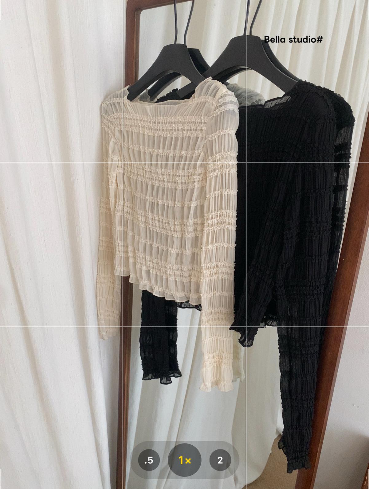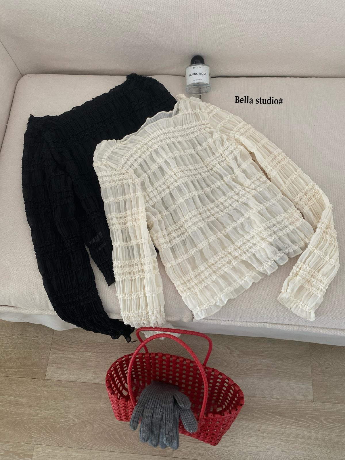 【C8620】韓系休閒寬鬆褶皺木耳邊長袖小衫