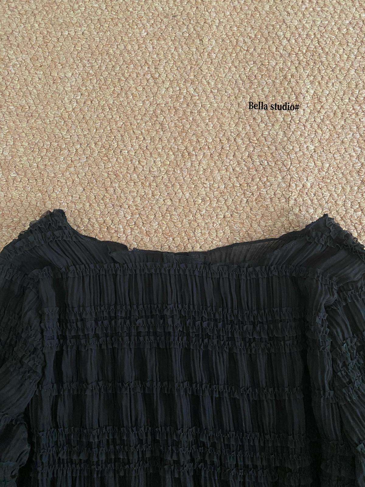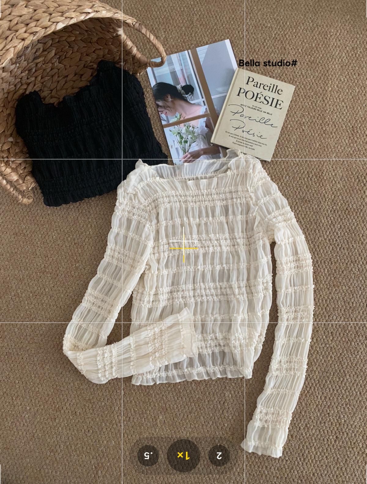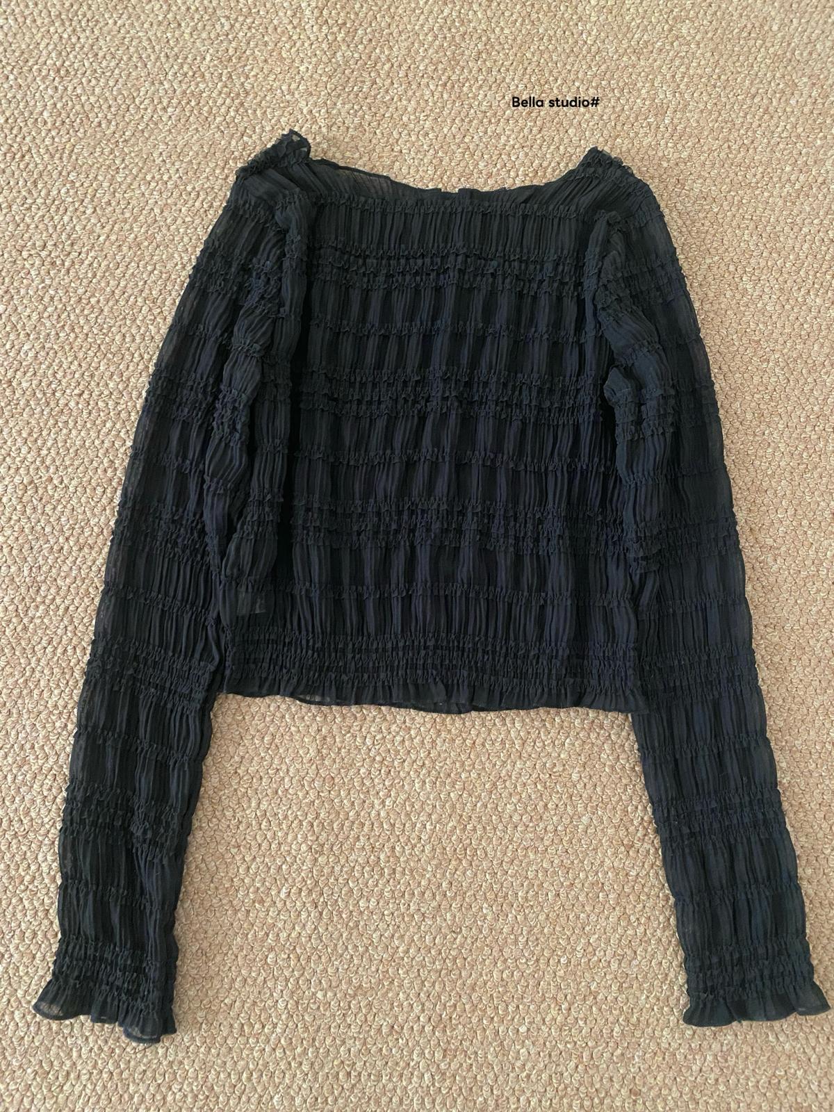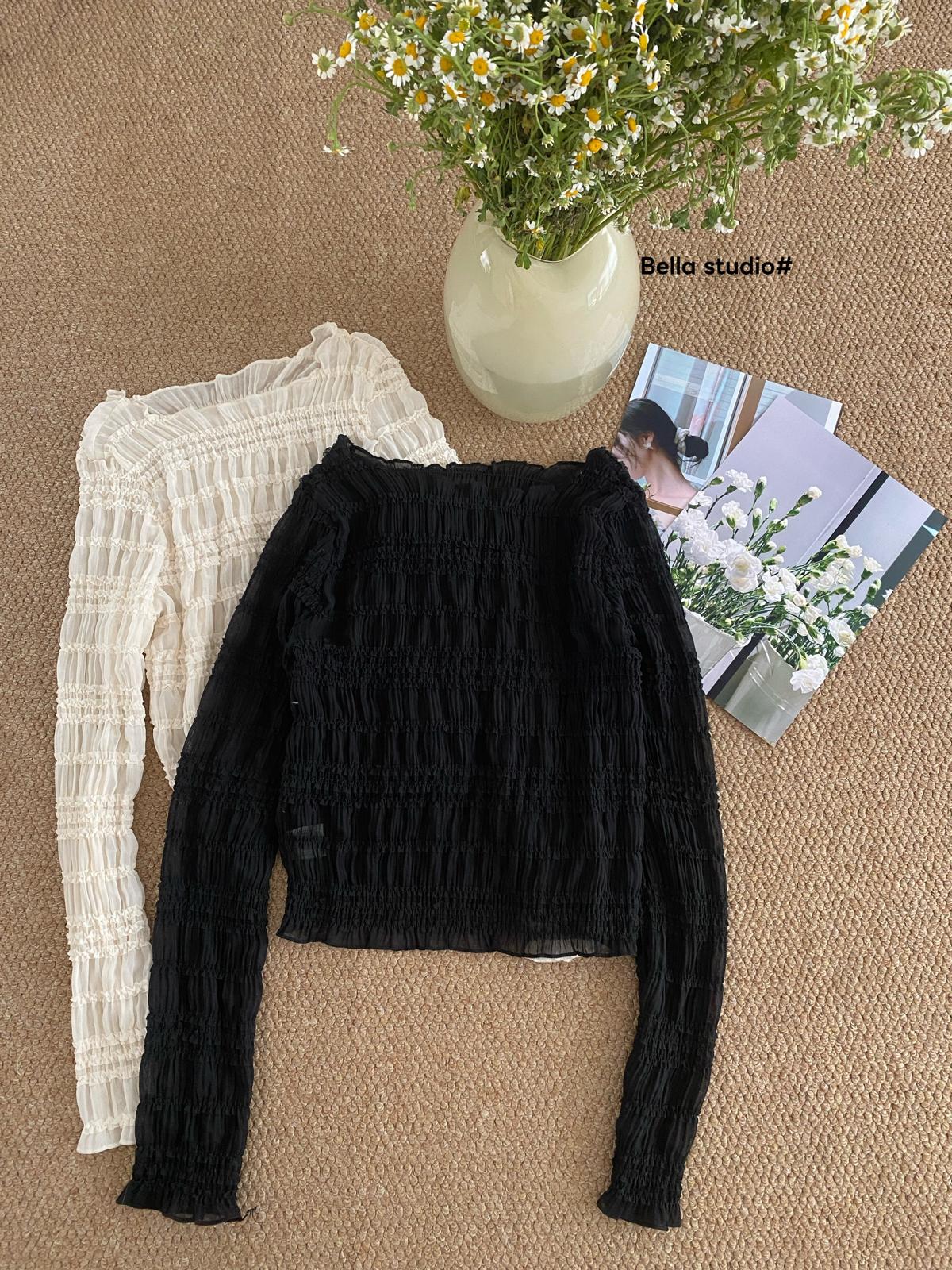 【C8620】韓系休閒寬鬆褶皺木耳邊長袖小衫