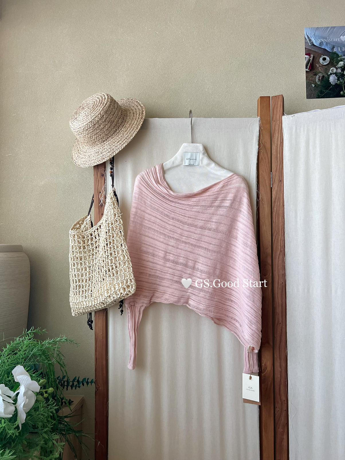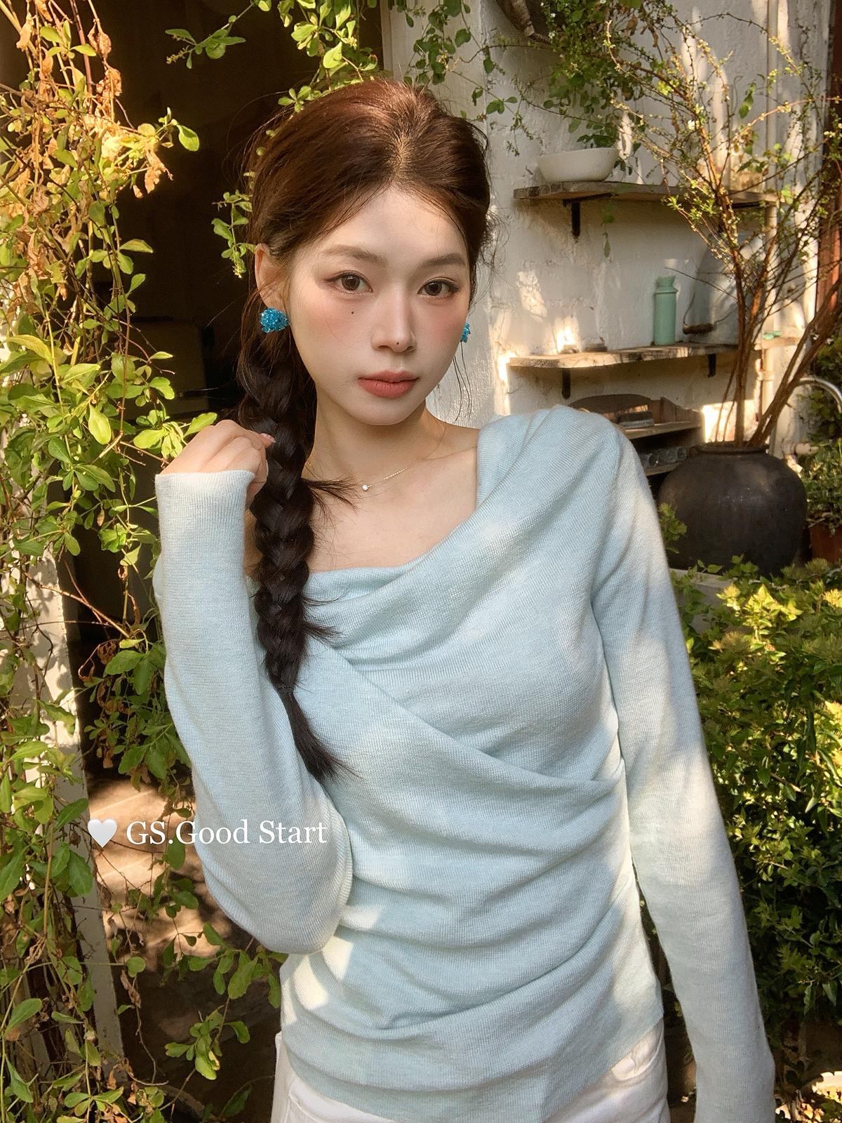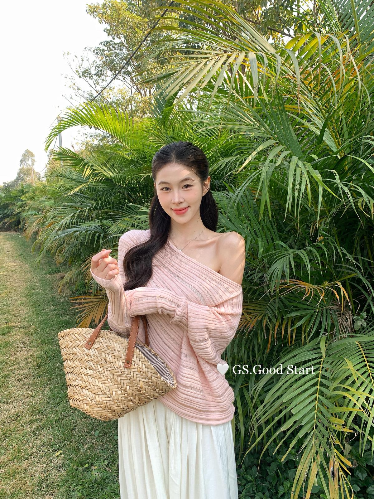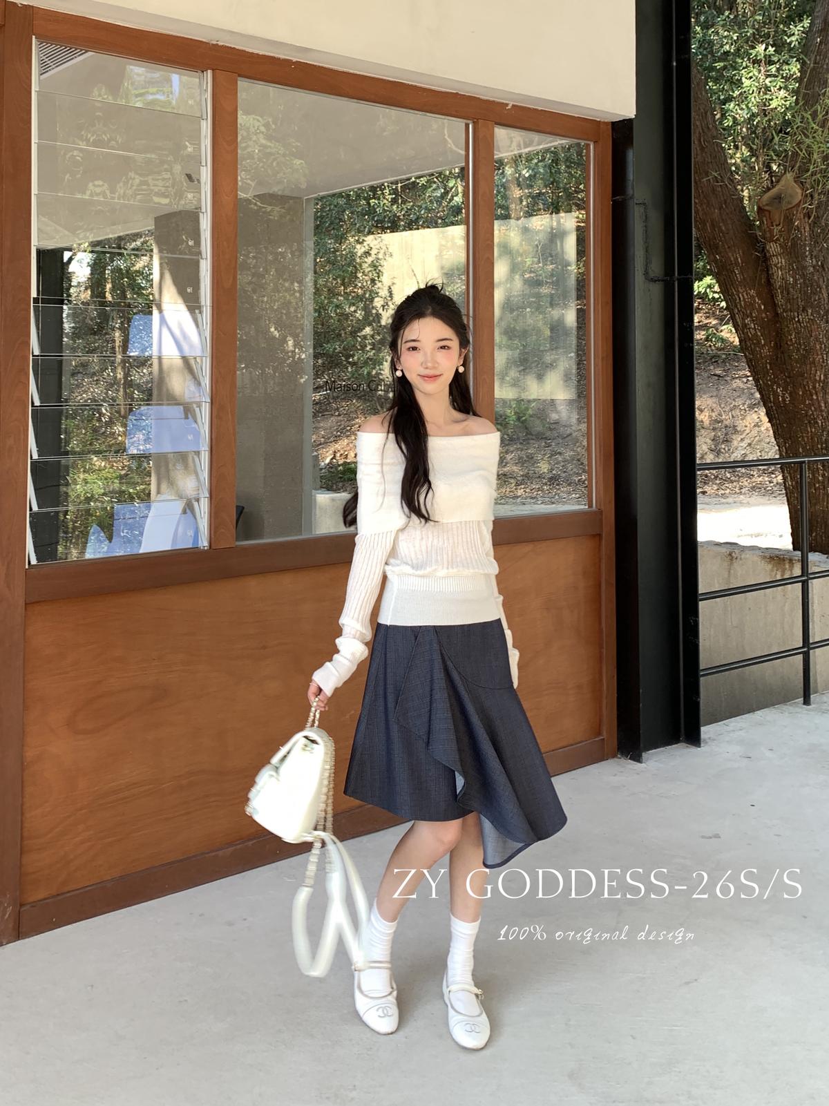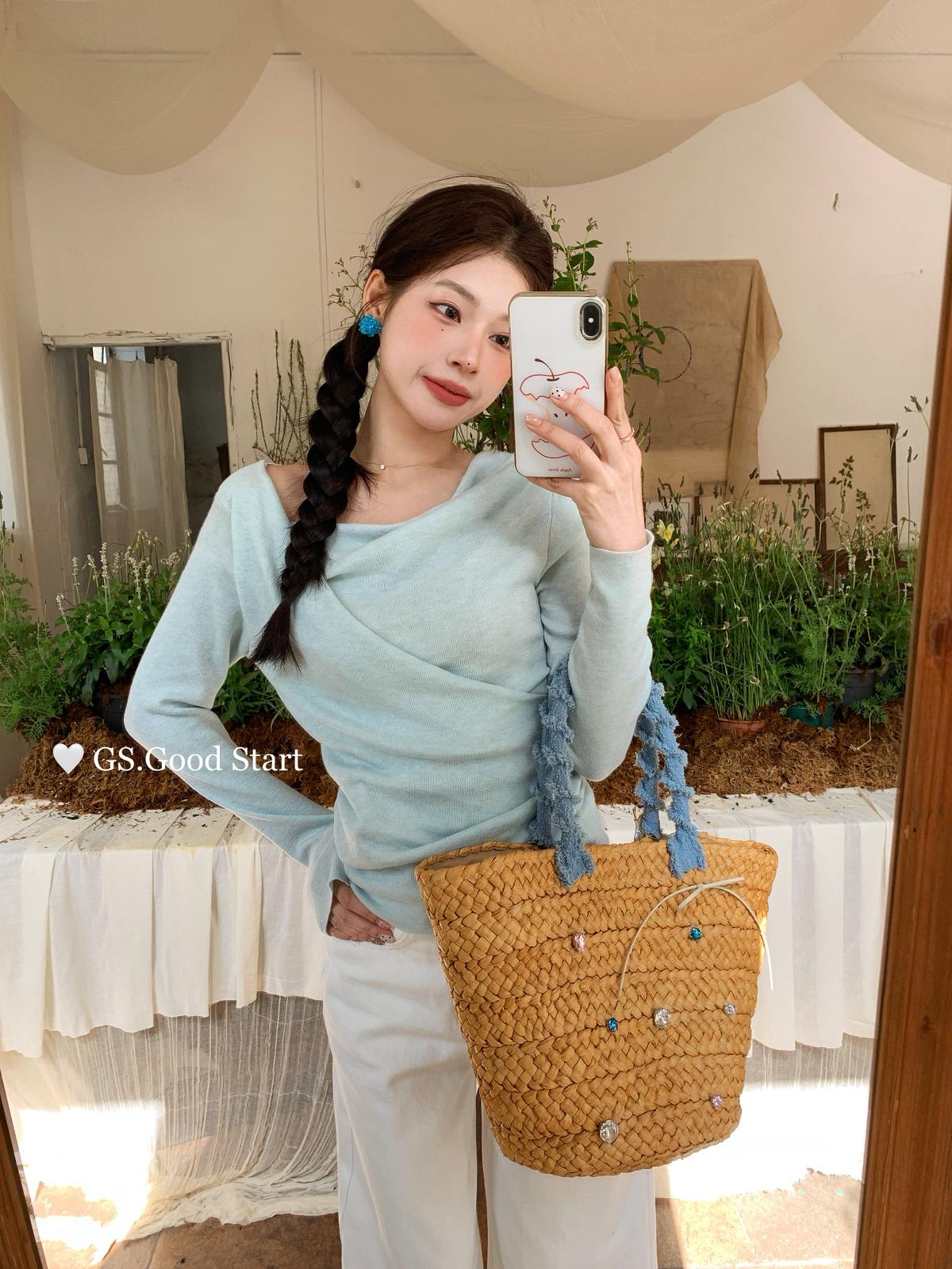 【C8648】爆款來了!釣系姐姐*sha瘋了!春季氣質時髦斜肩不規則針織小衫