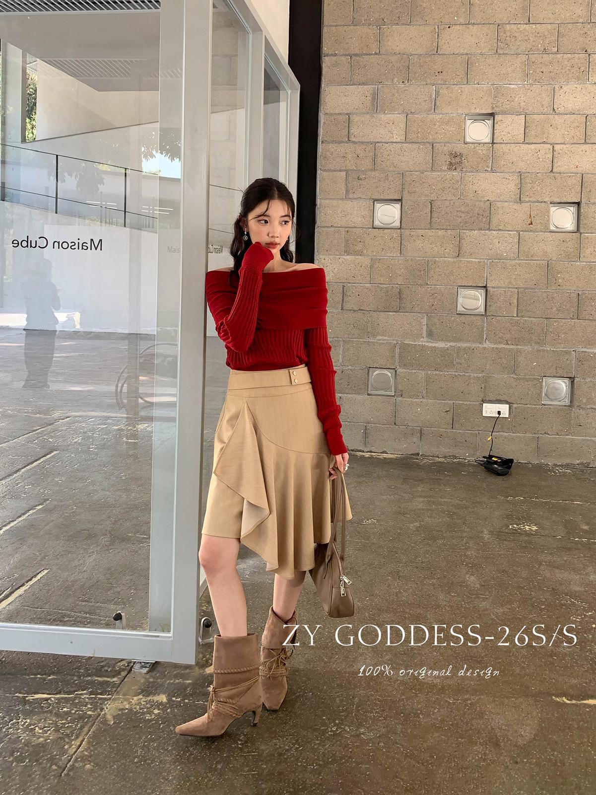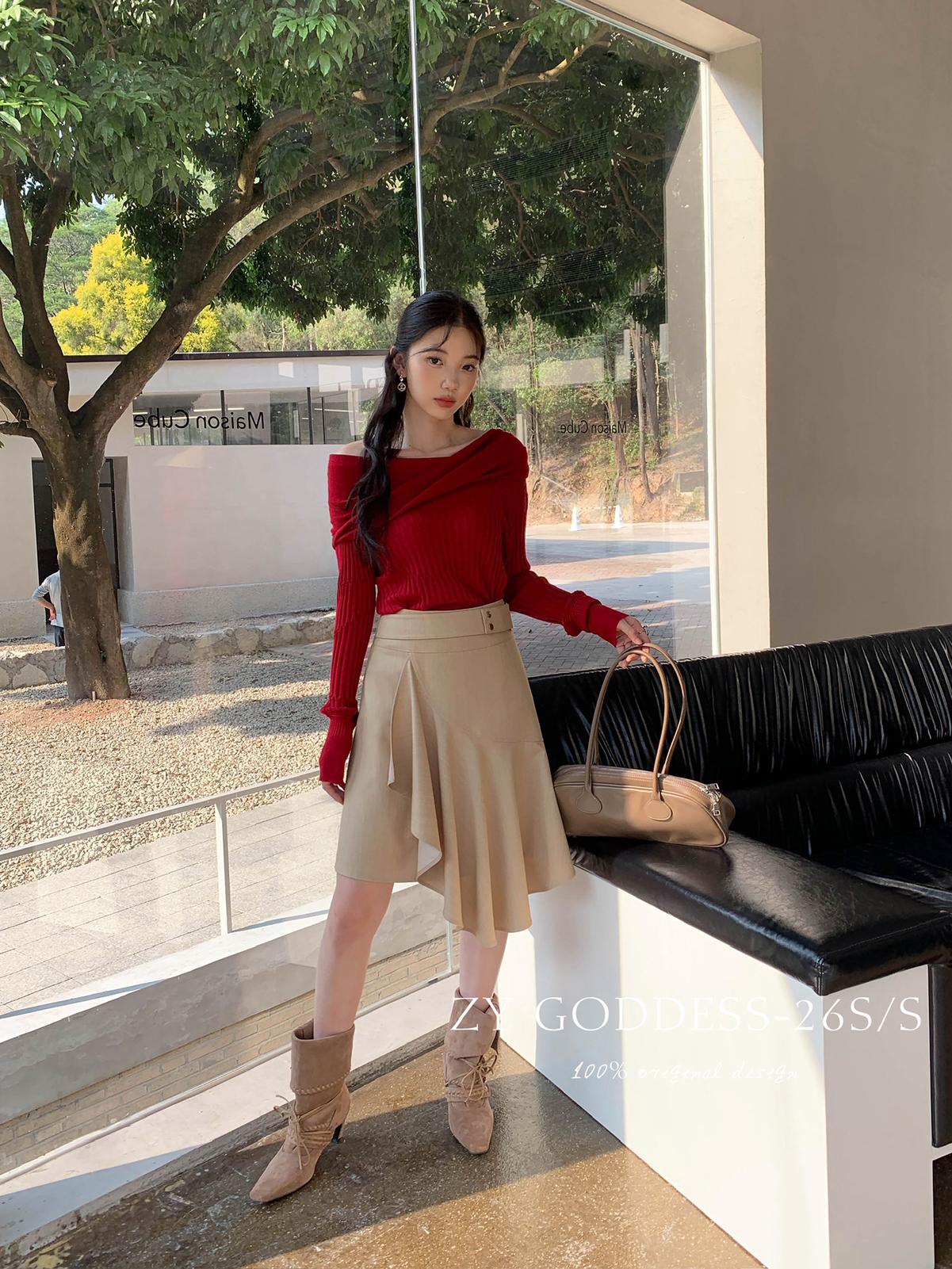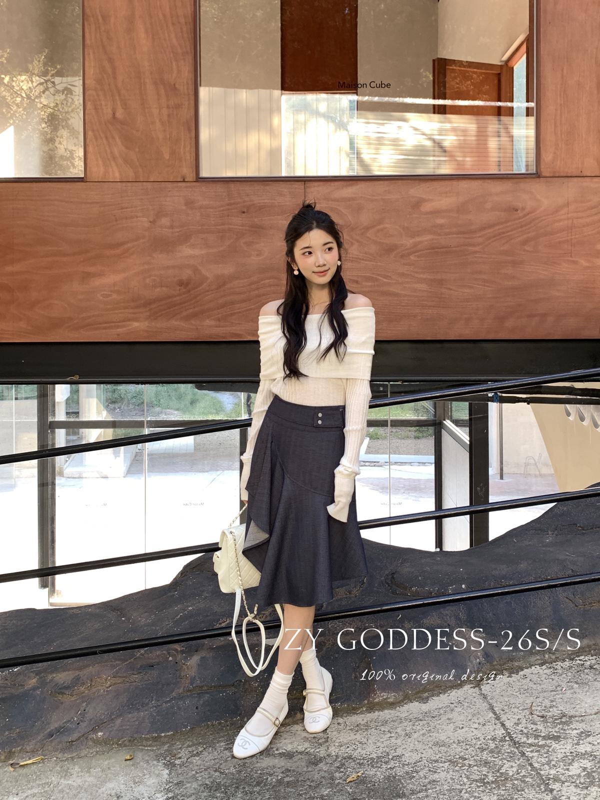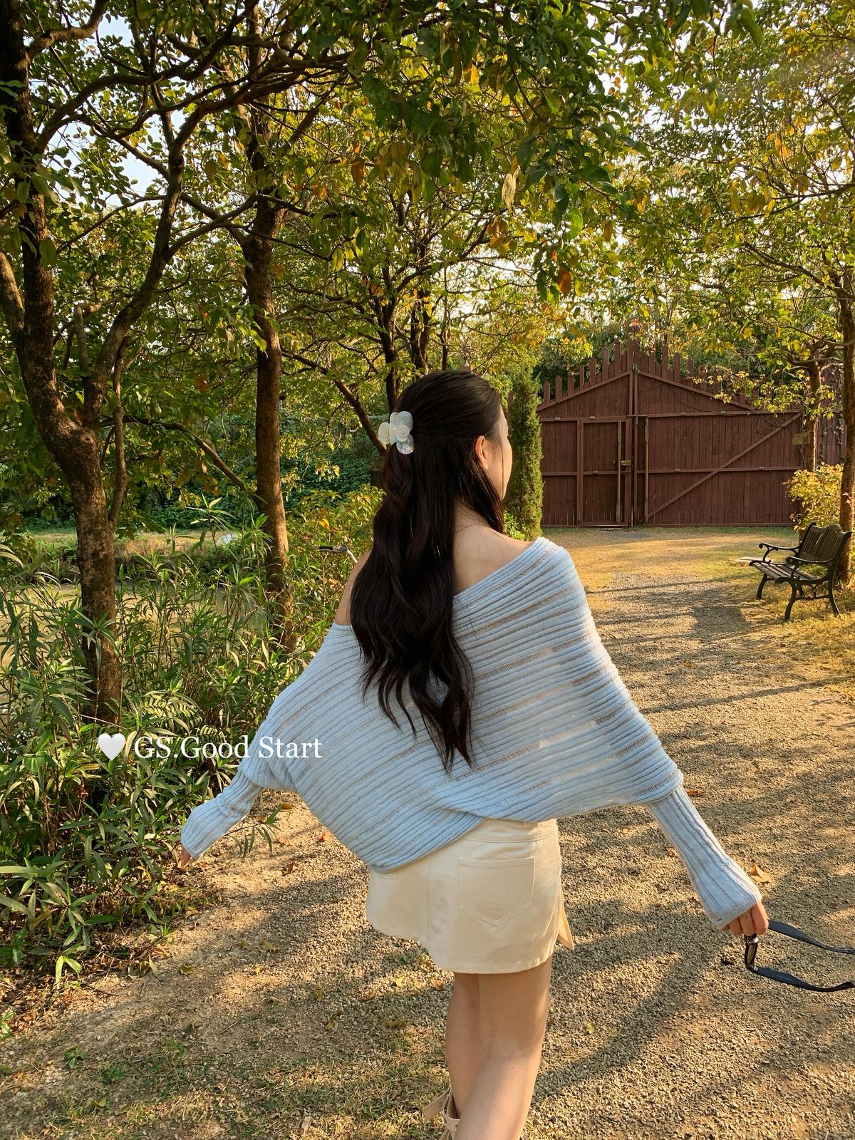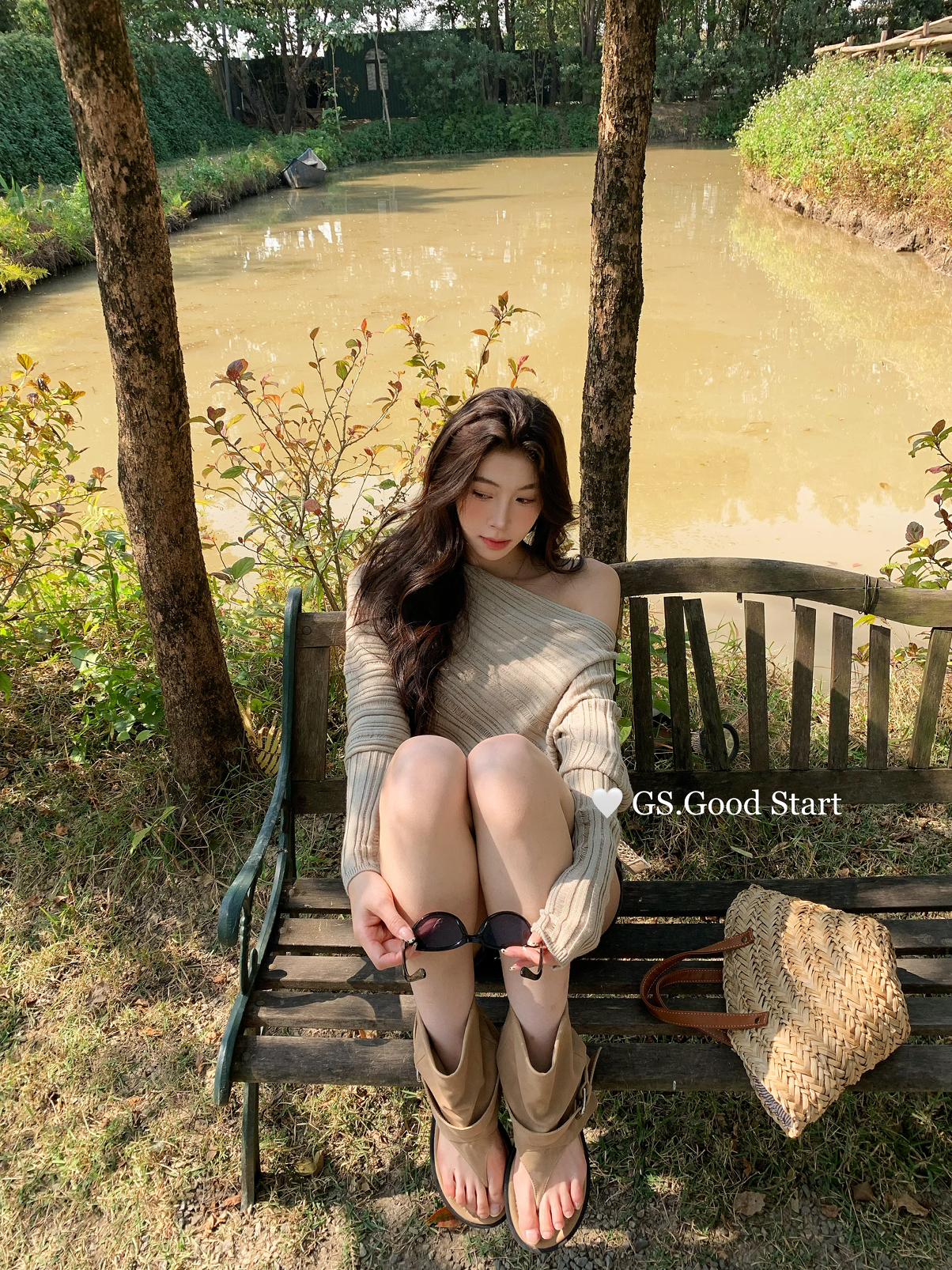 【C8648】爆款來了!釣系姐姐*sha瘋了!春季氣質時髦斜肩不規則針織小衫