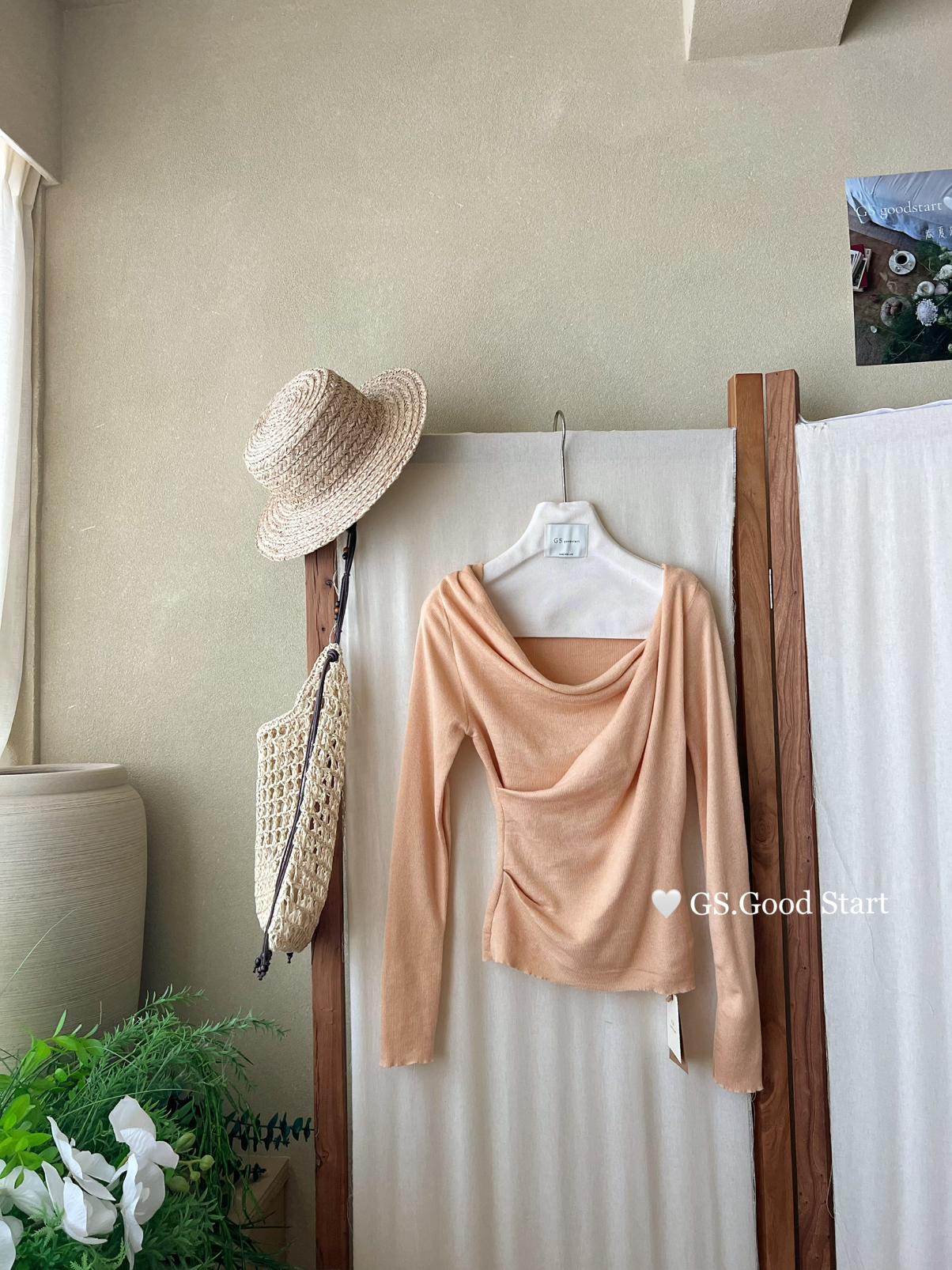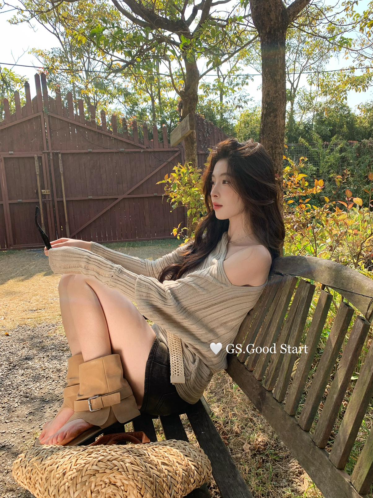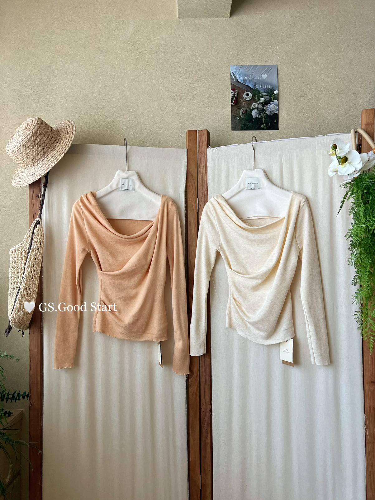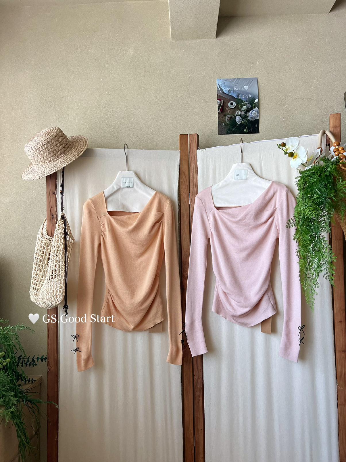 【C8648】爆款來了!釣系姐姐*sha瘋了!春季氣質時髦斜肩不規則針織小衫
