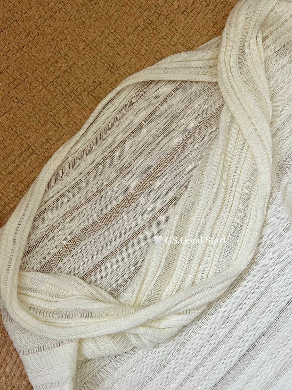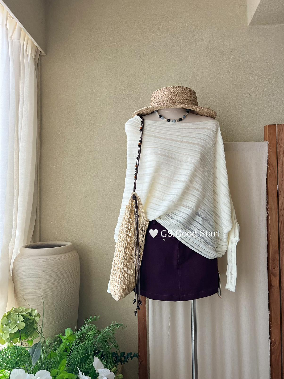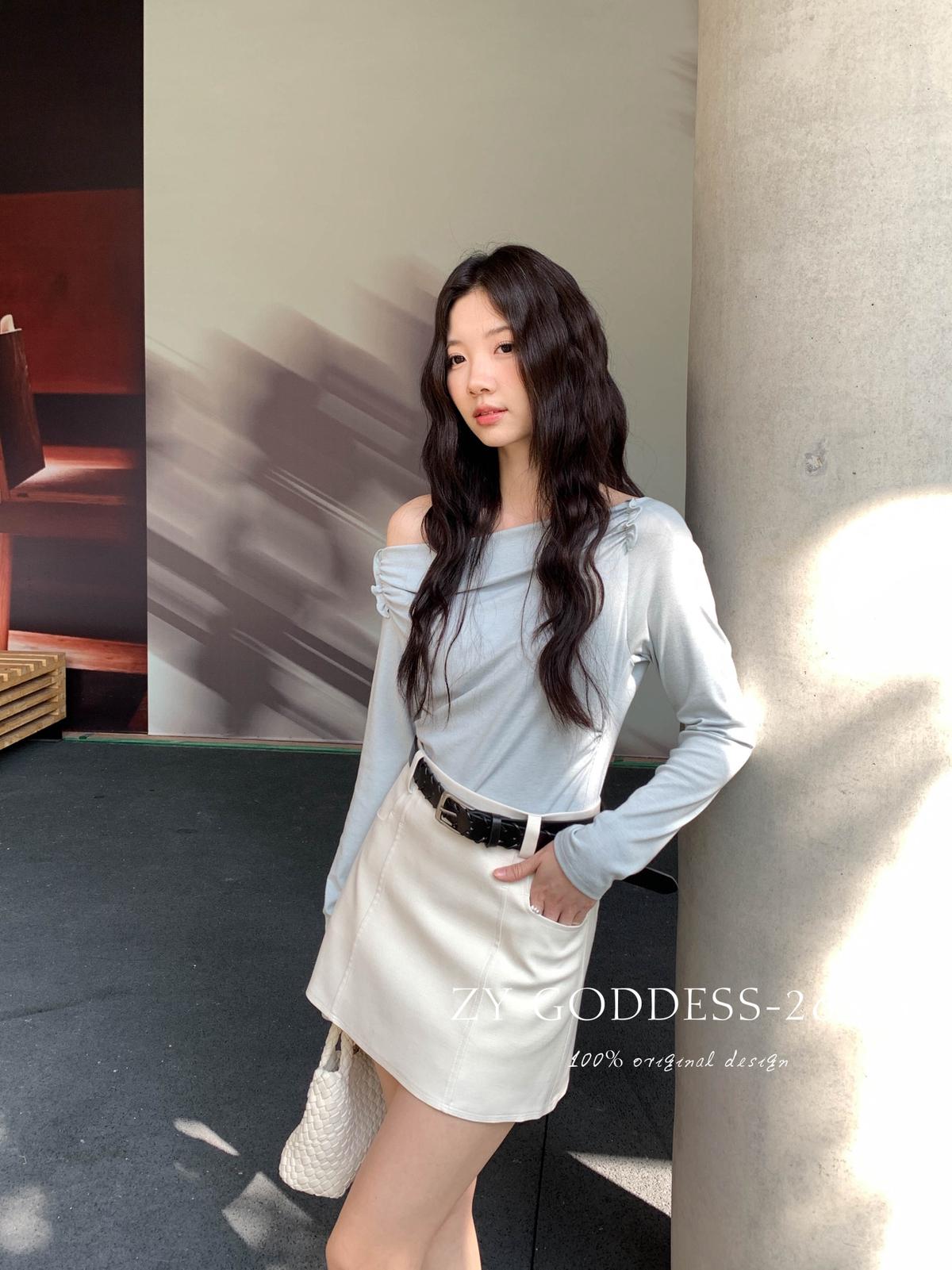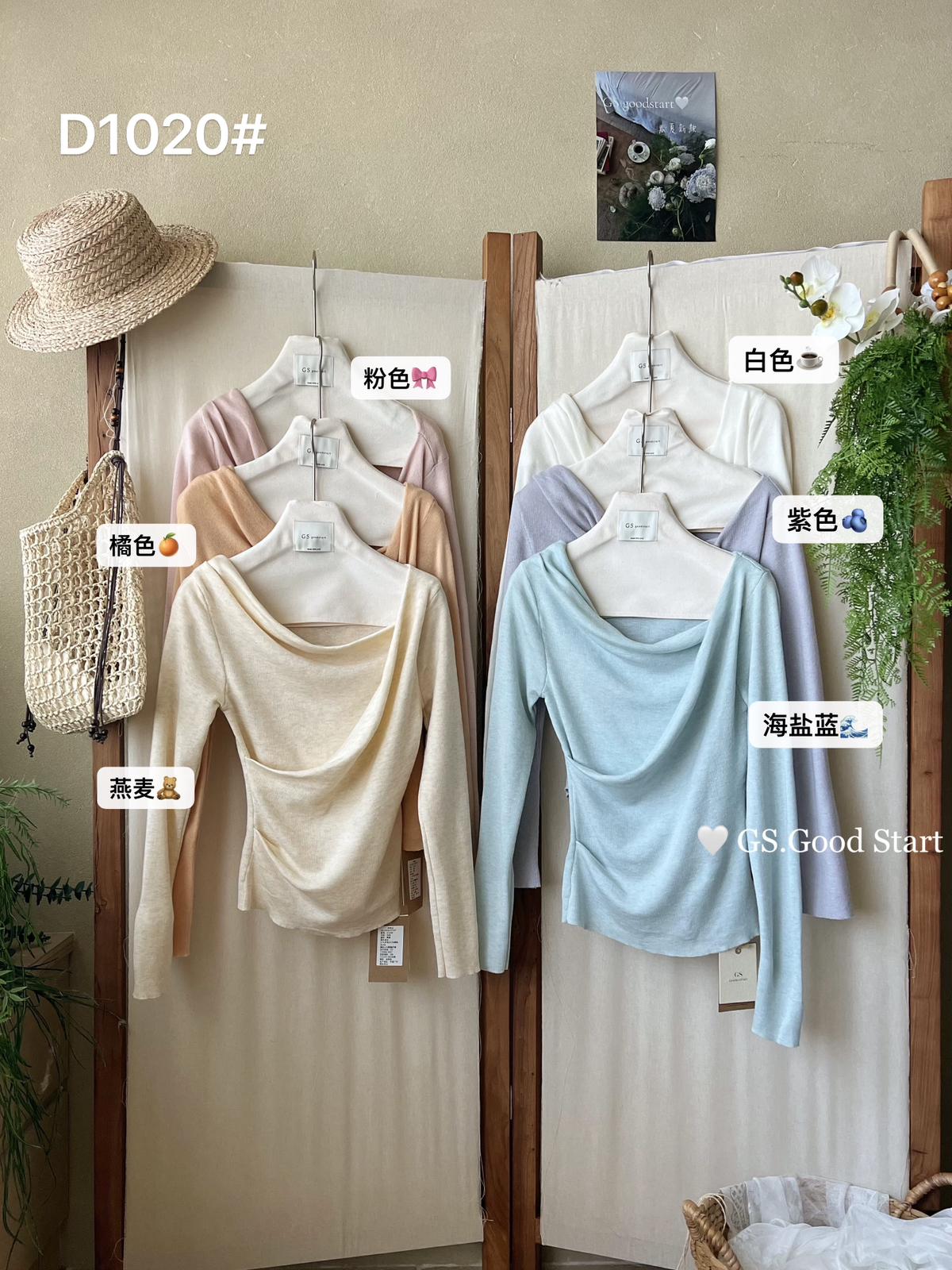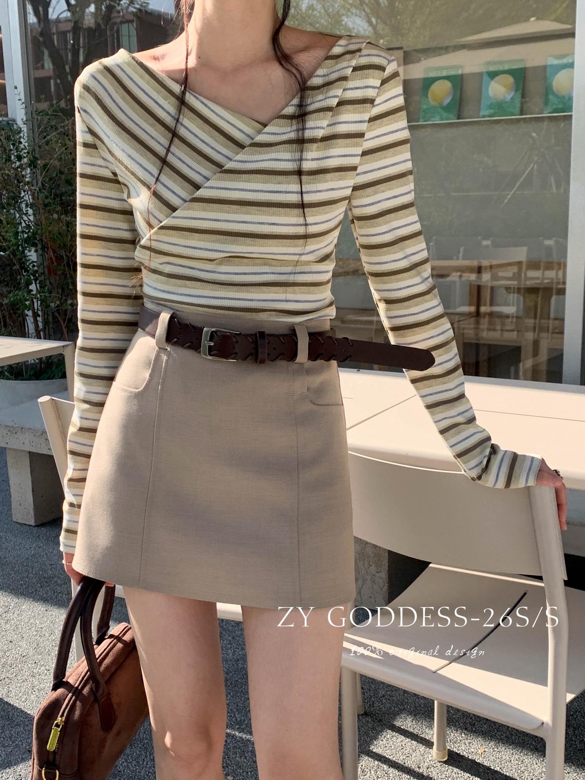 【C8648】爆款來了!釣系姐姐*sha瘋了!春季氣質時髦斜肩不規則針織小衫