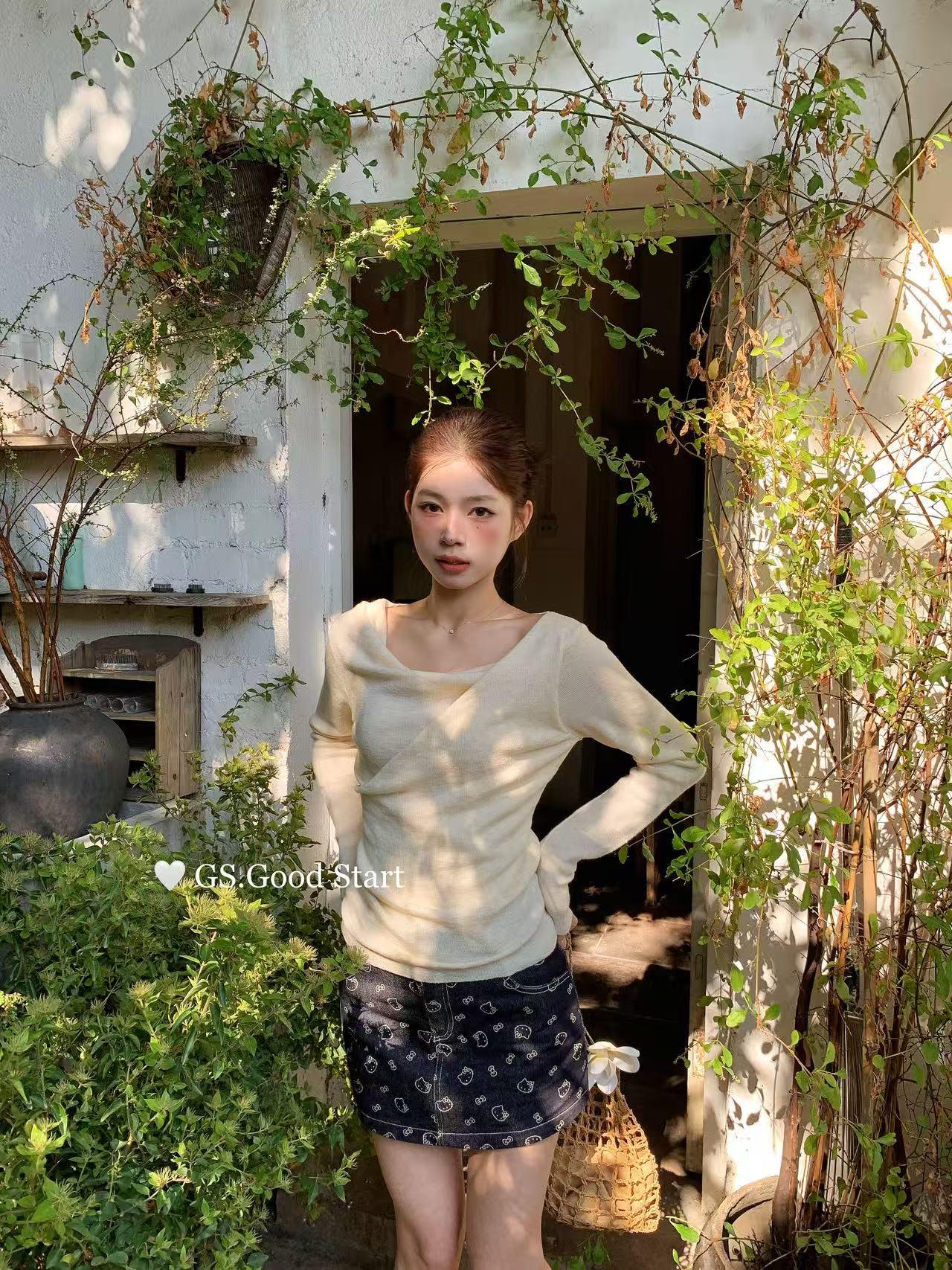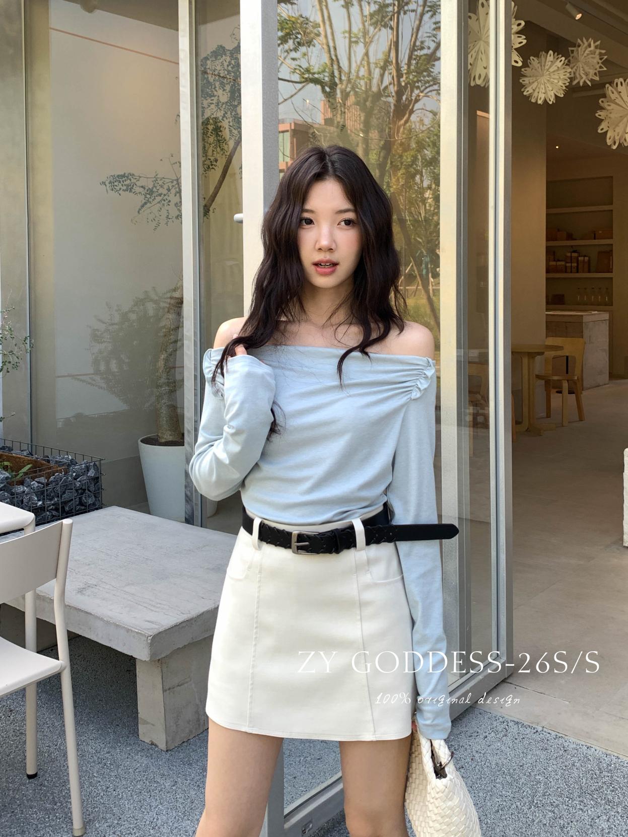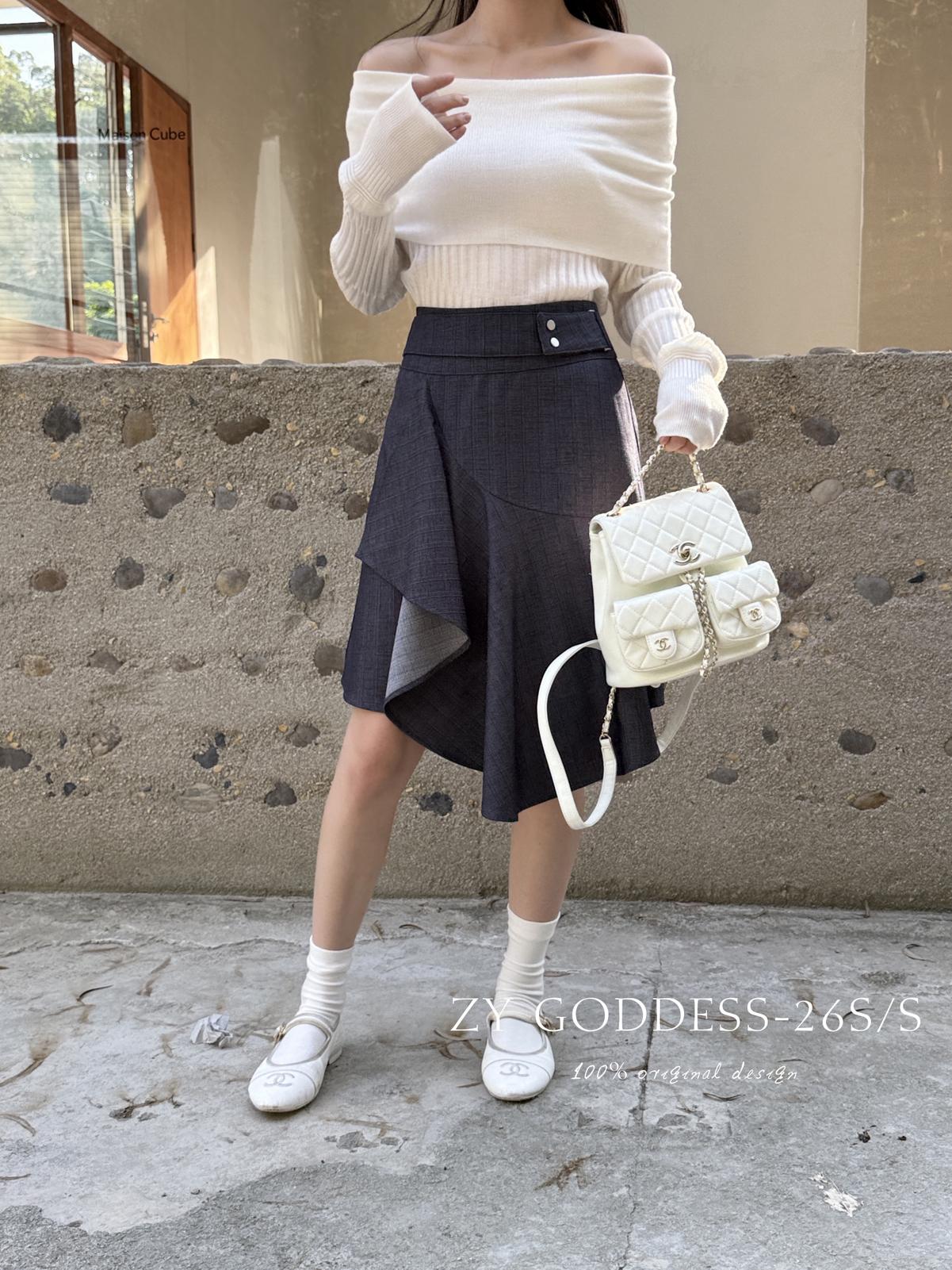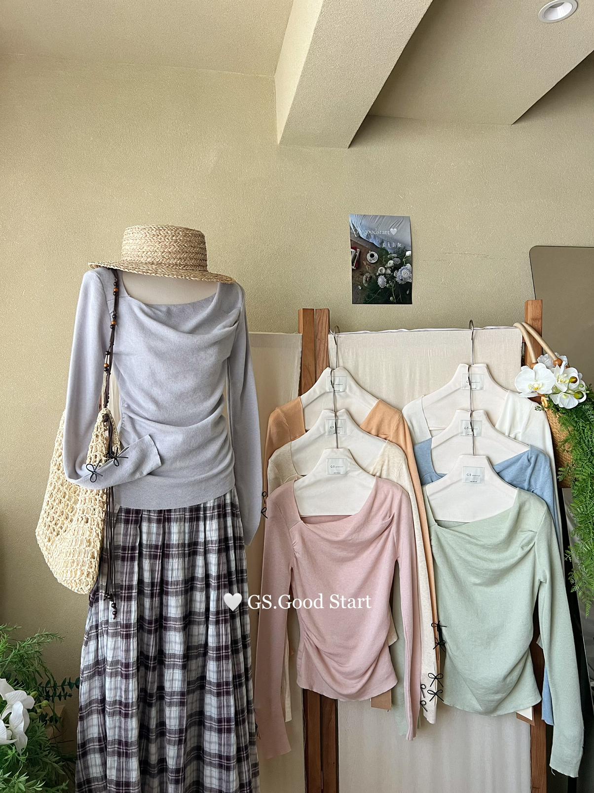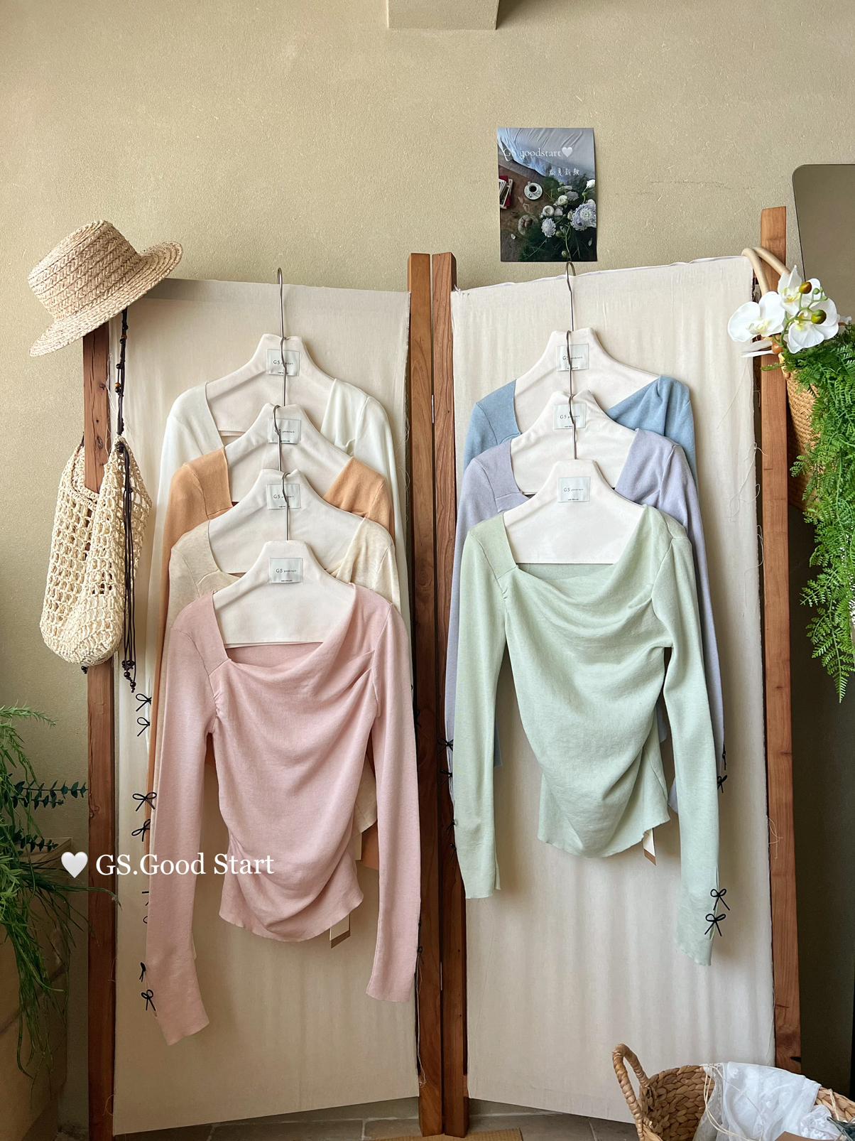 【C8648】爆款來了!釣系姐姐*sha瘋了!春季氣質時髦斜肩不規則針織小衫