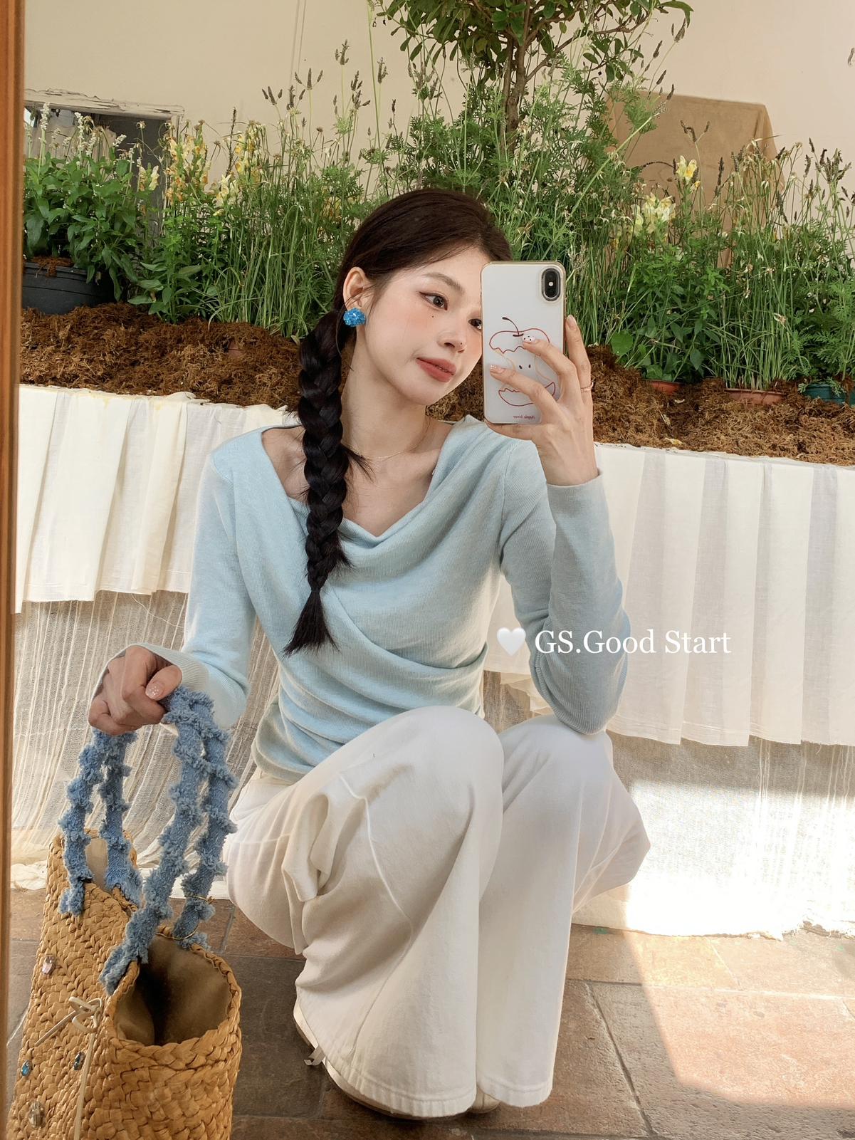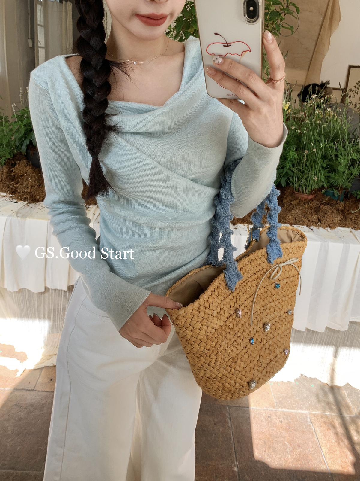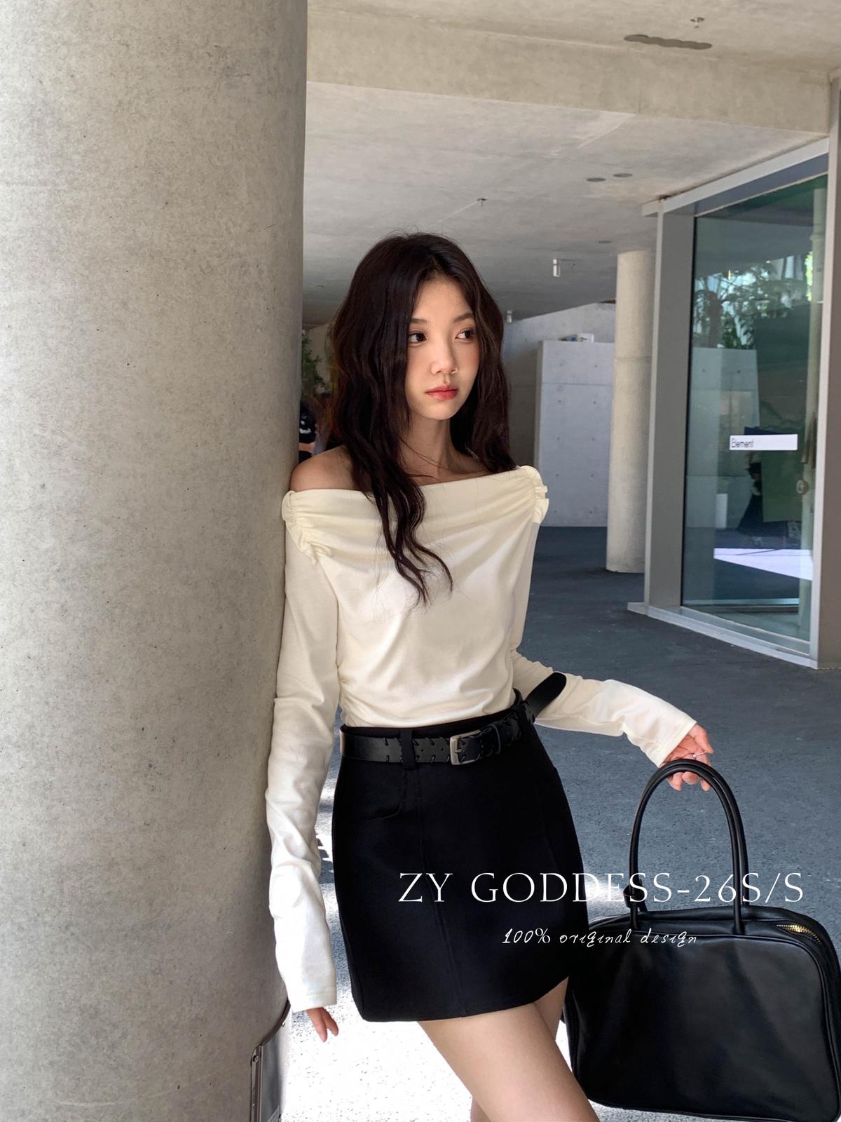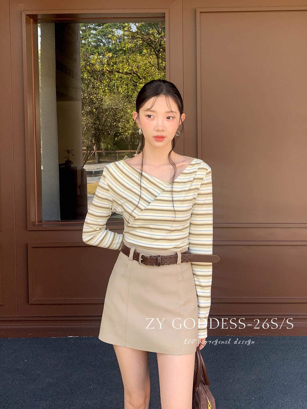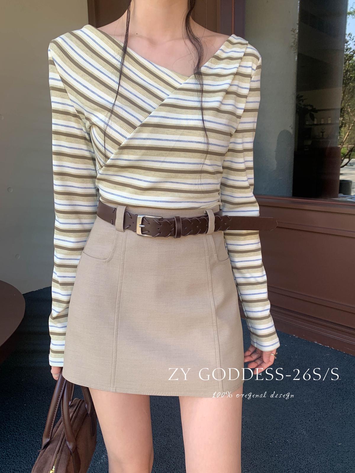 【C8648】爆款來了!釣系姐姐*sha瘋了!春季氣質時髦斜肩不規則針織小衫