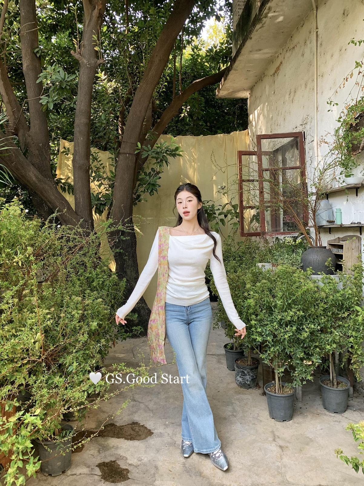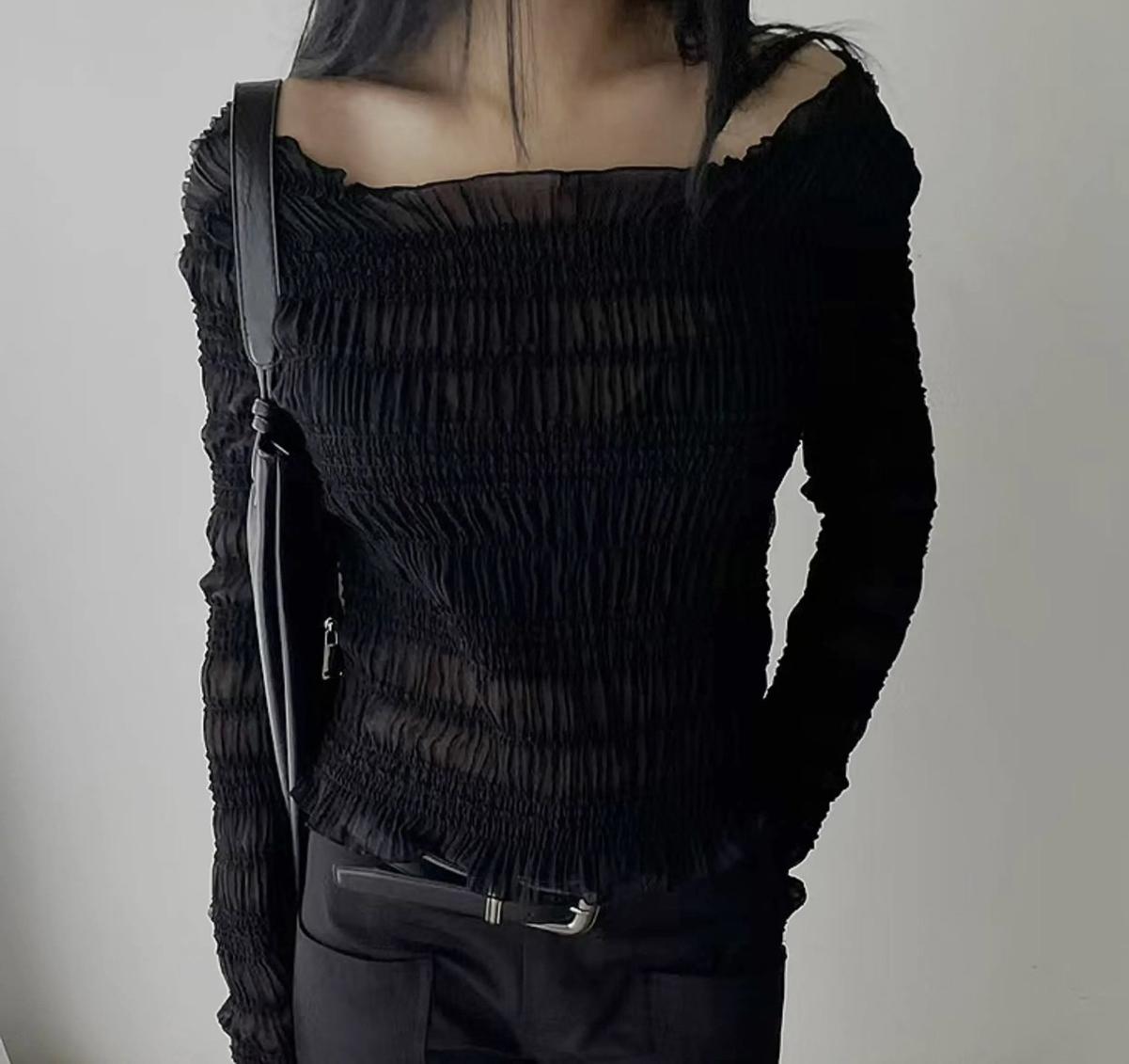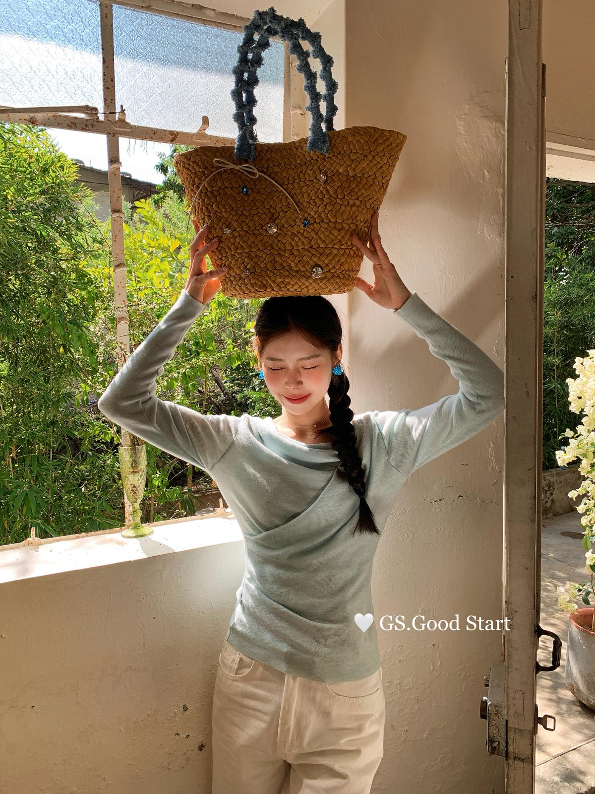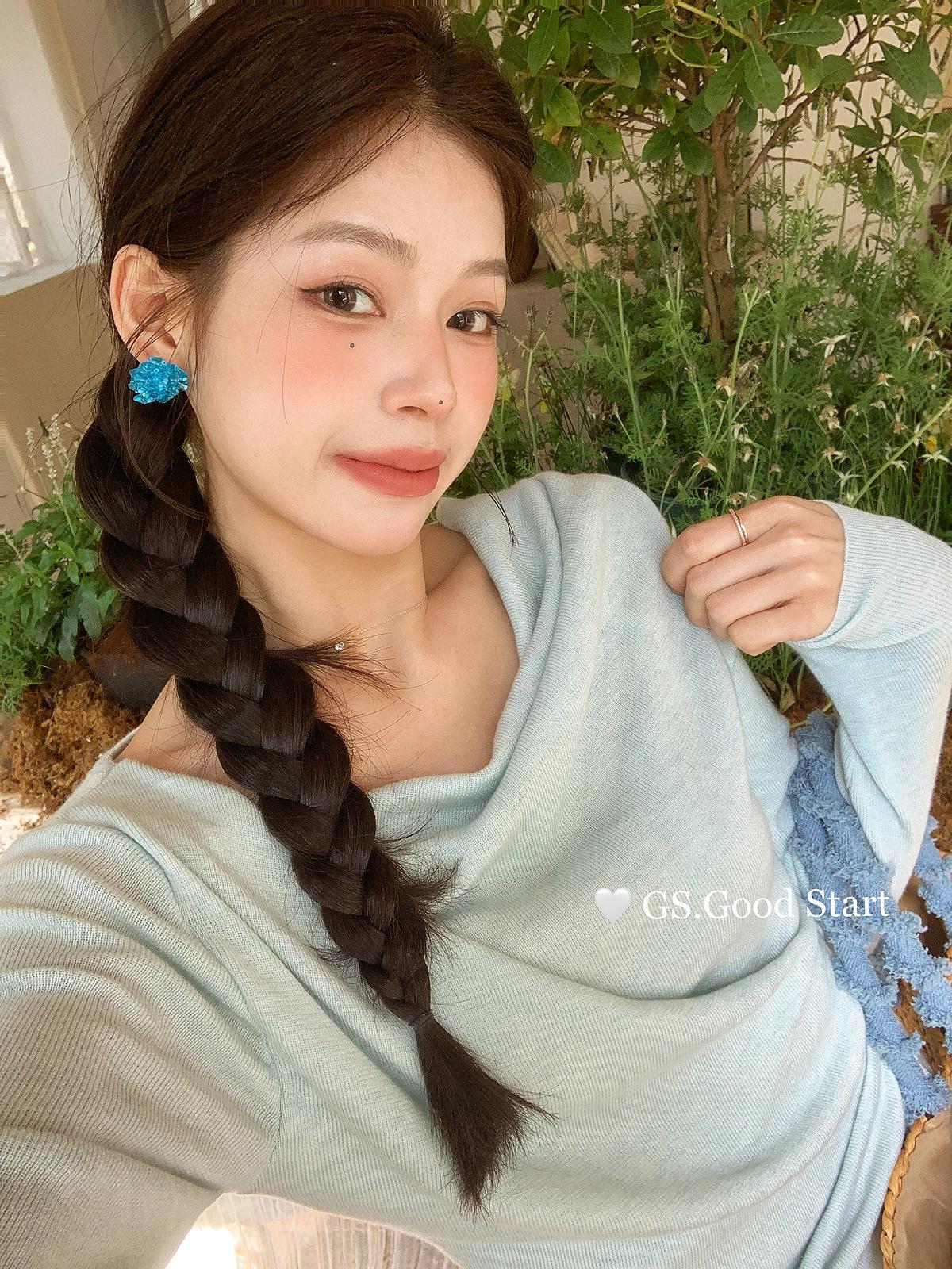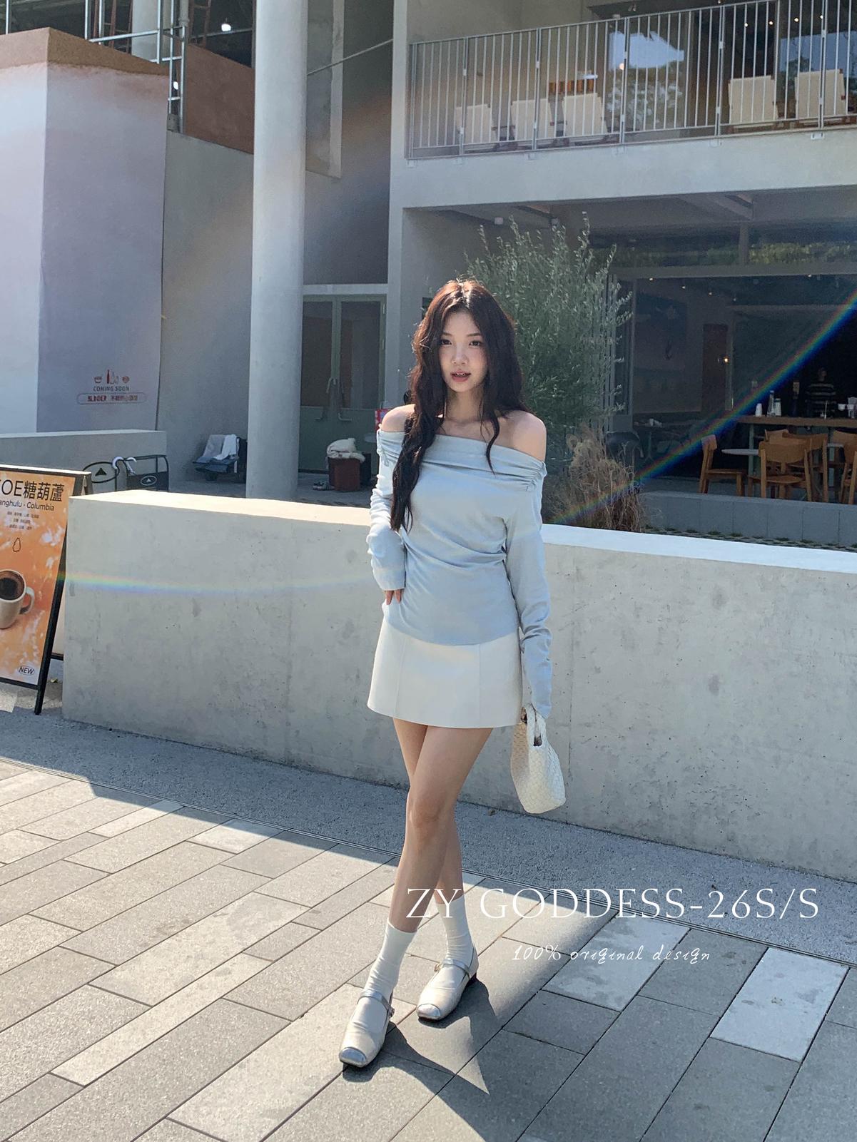 【C8648】爆款來了!釣系姐姐*sha瘋了!春季氣質時髦斜肩不規則針織小衫