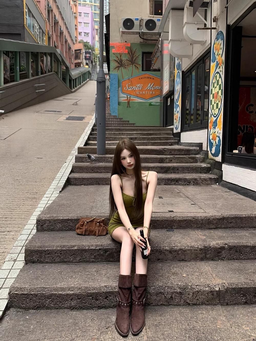 【C8625】早春辣妹純欲度假風自帶胸墊吊帶修身連衣裙