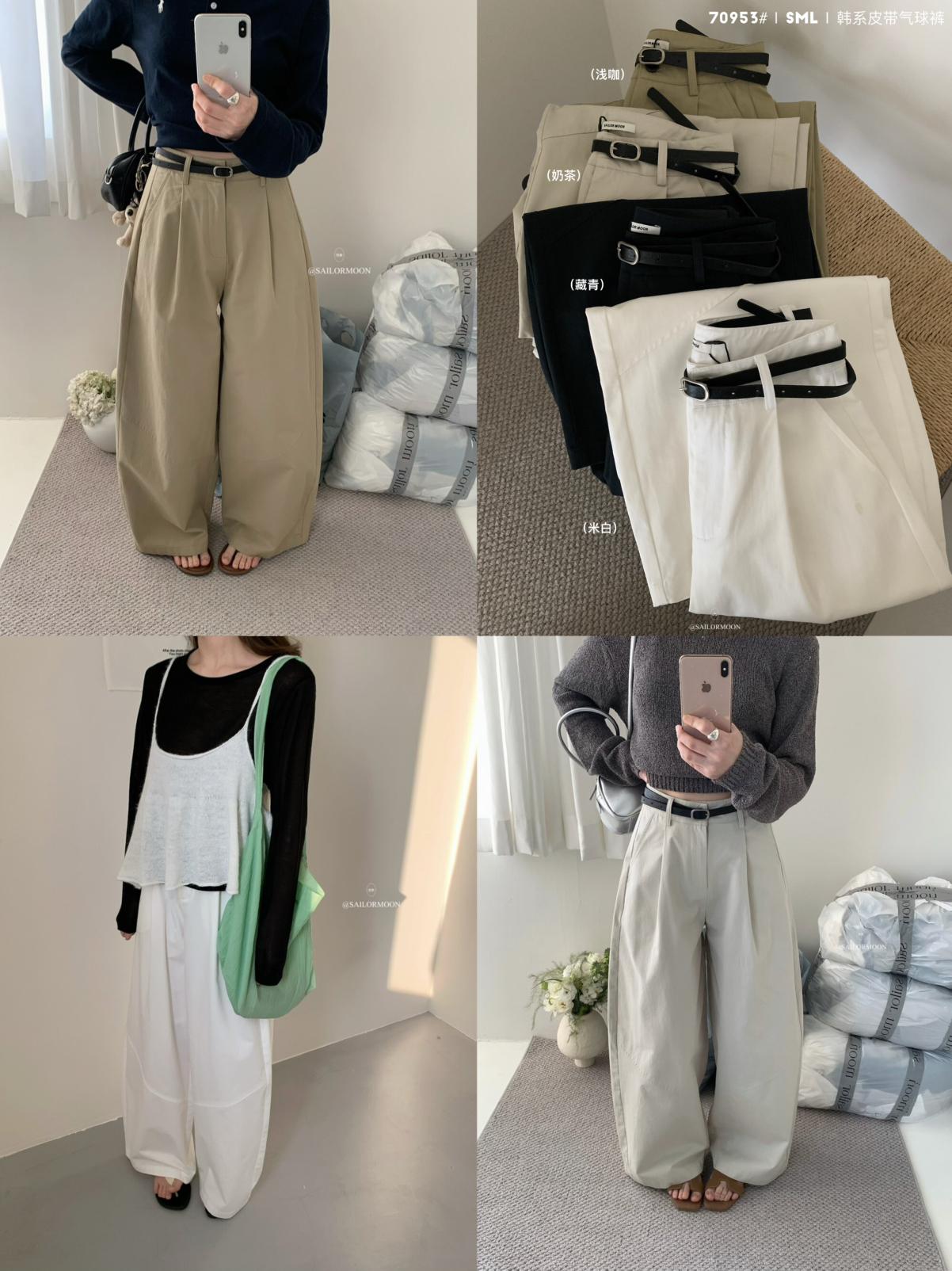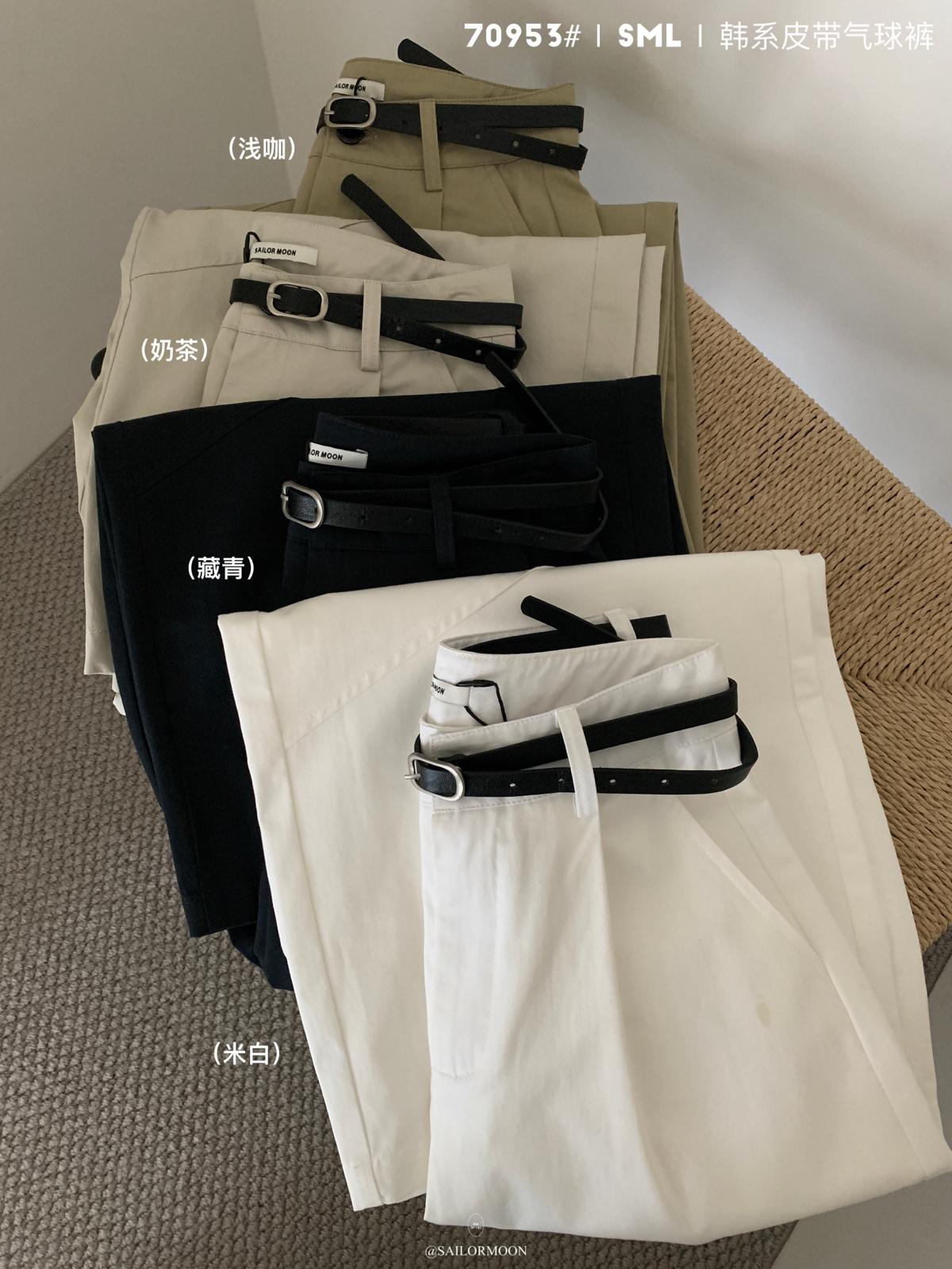 【C8628】韓系皮帶顯瘦百搭氣球褲休閒褲(配腰帶)