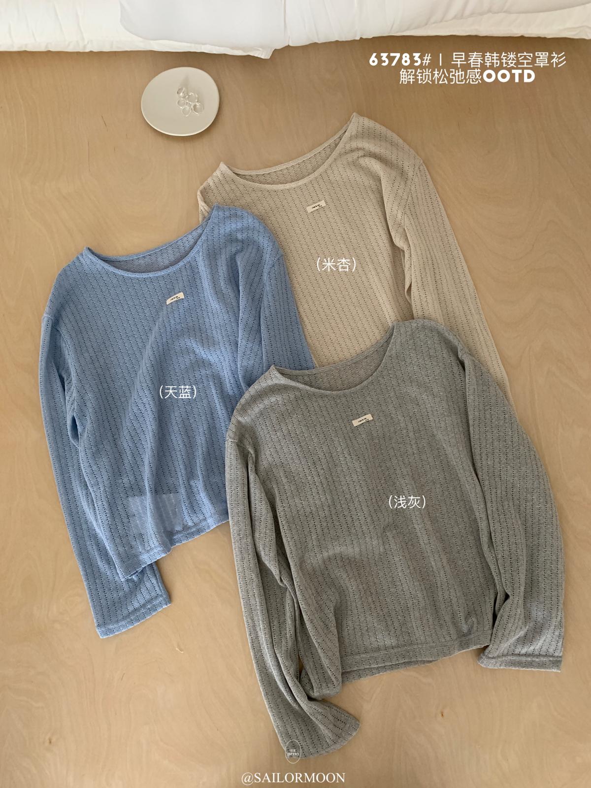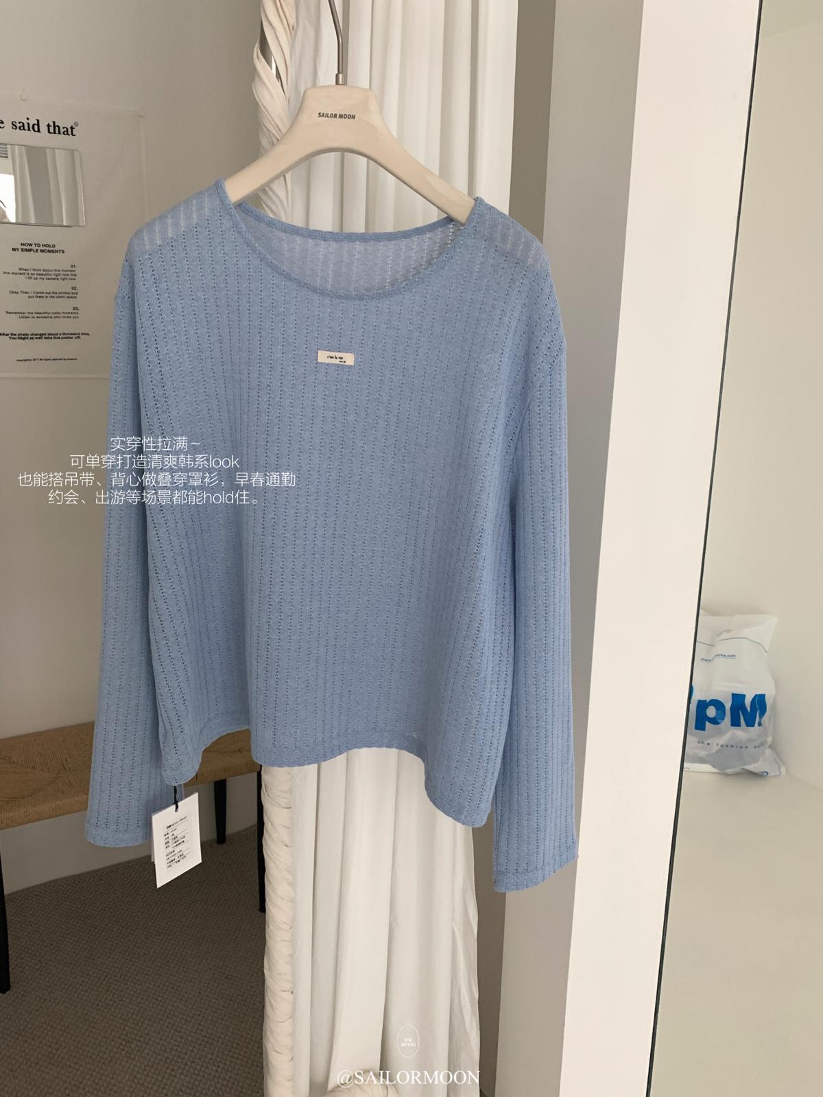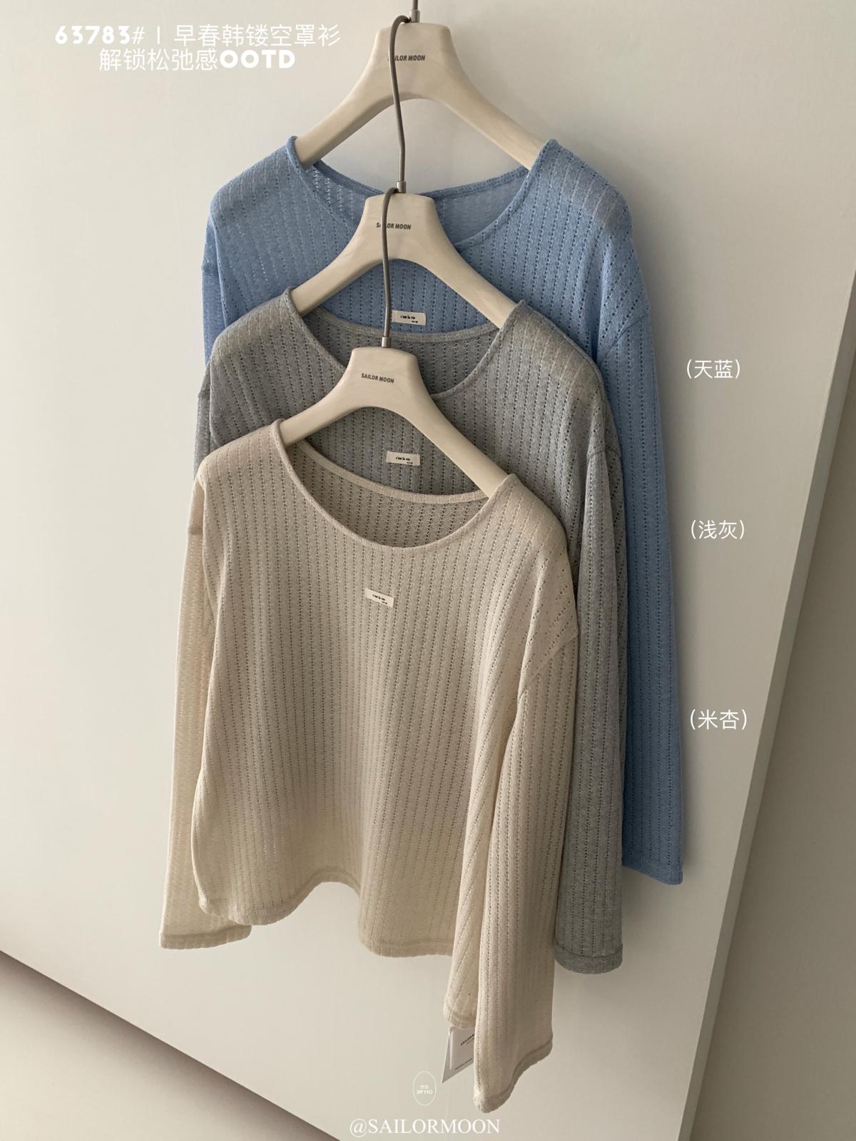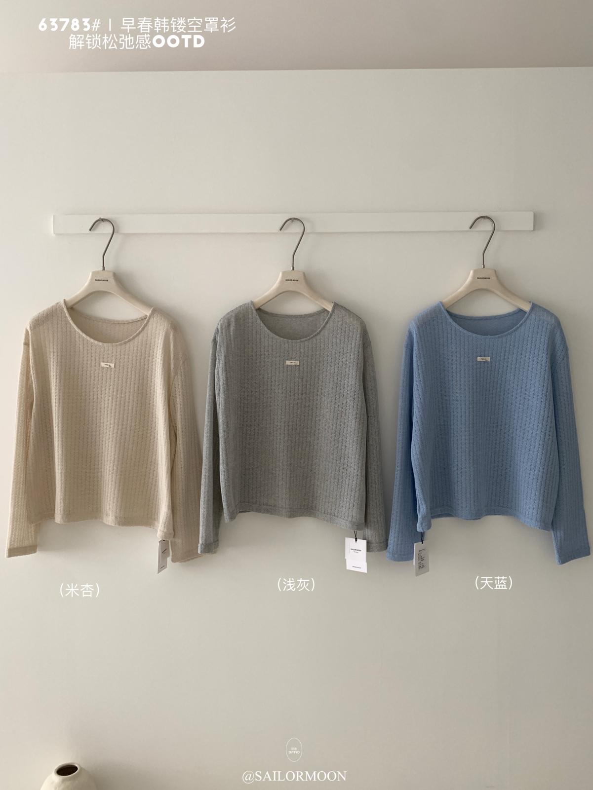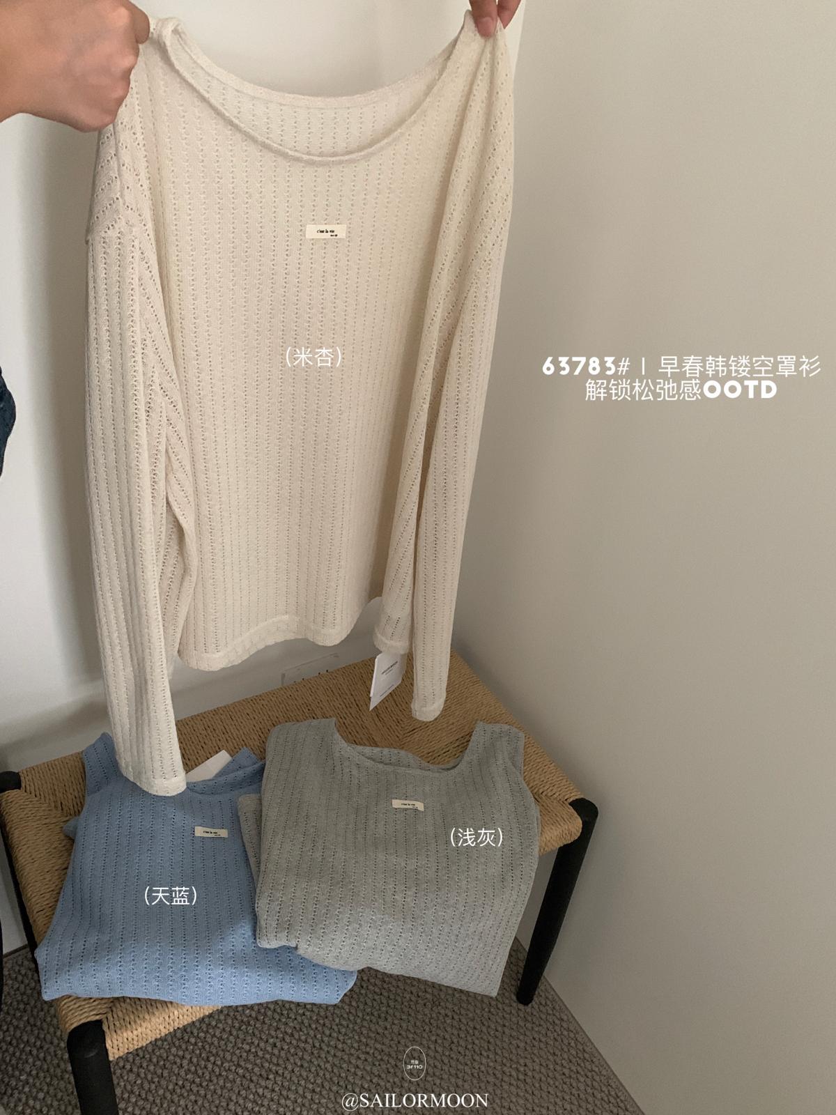 【C8629】韓系鬆弛感鏤空罩衫針織衫