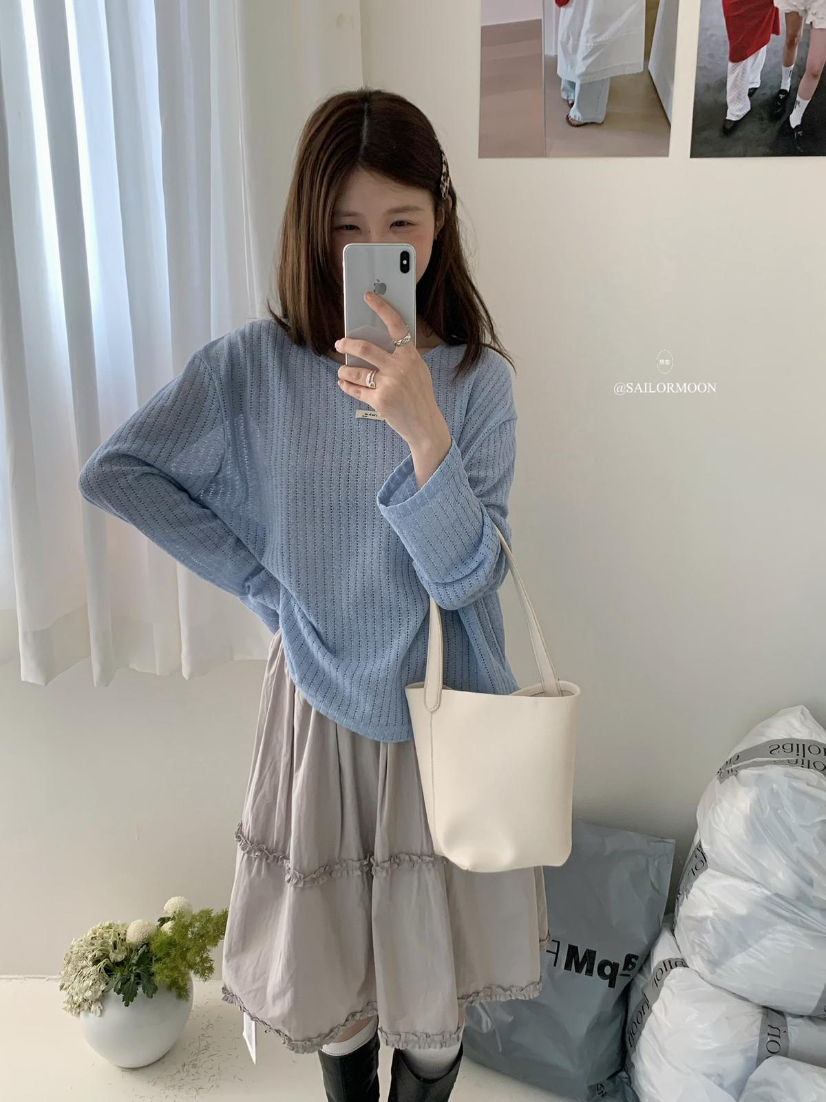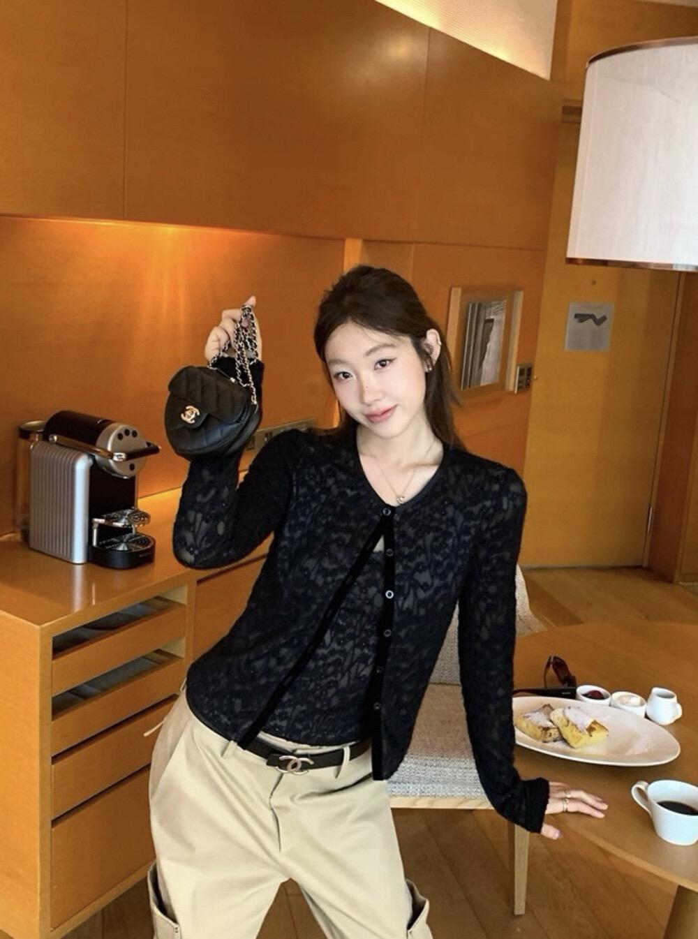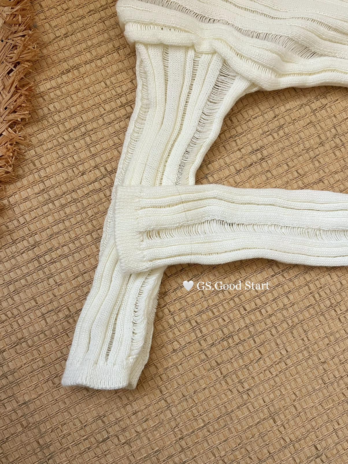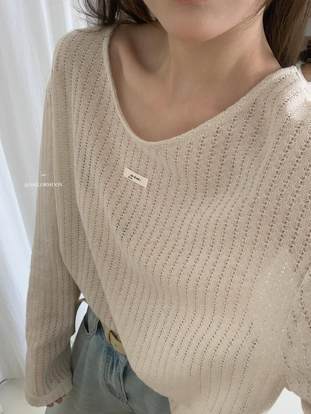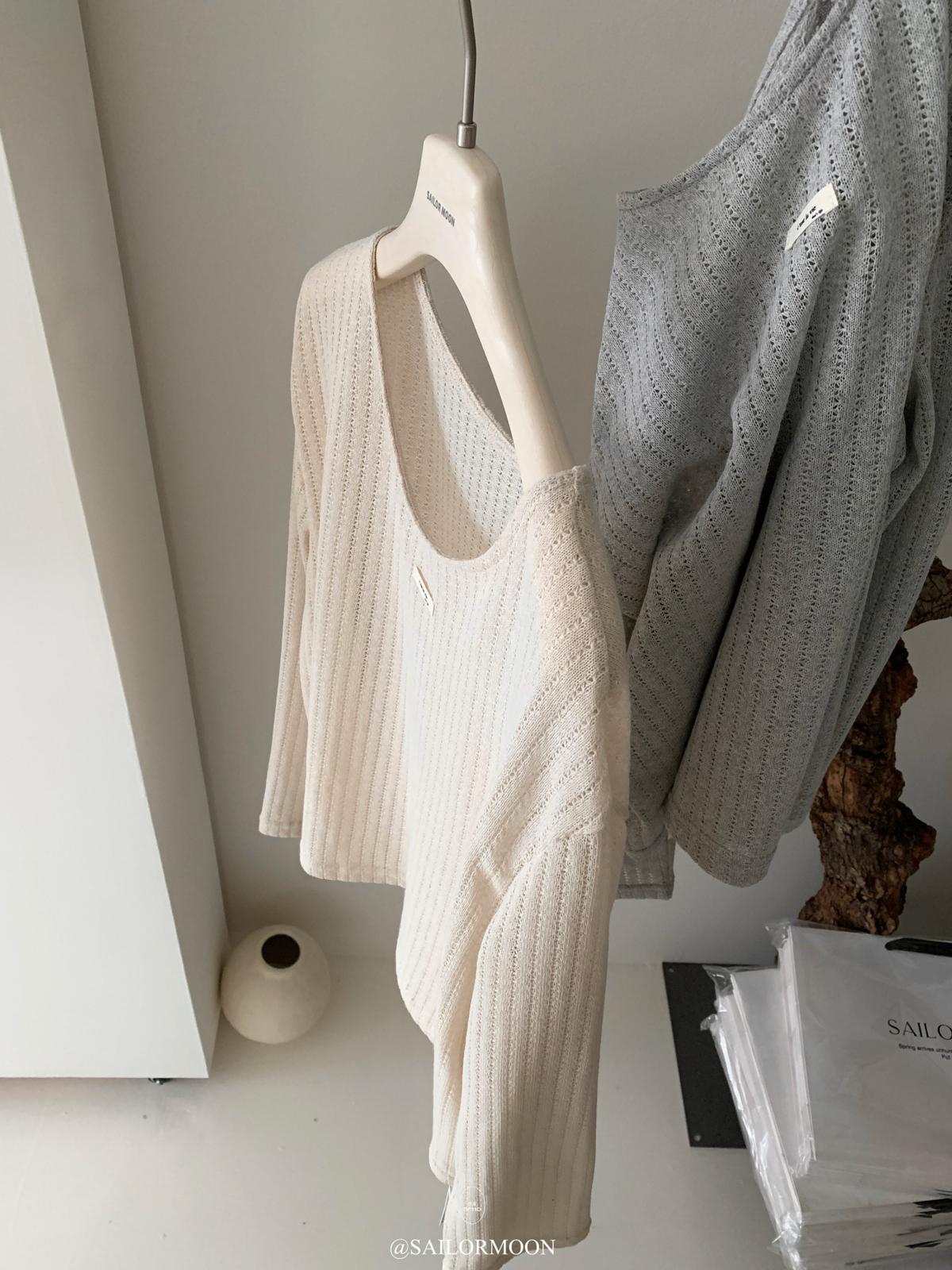 【C8629】韓系鬆弛感鏤空罩衫針織衫